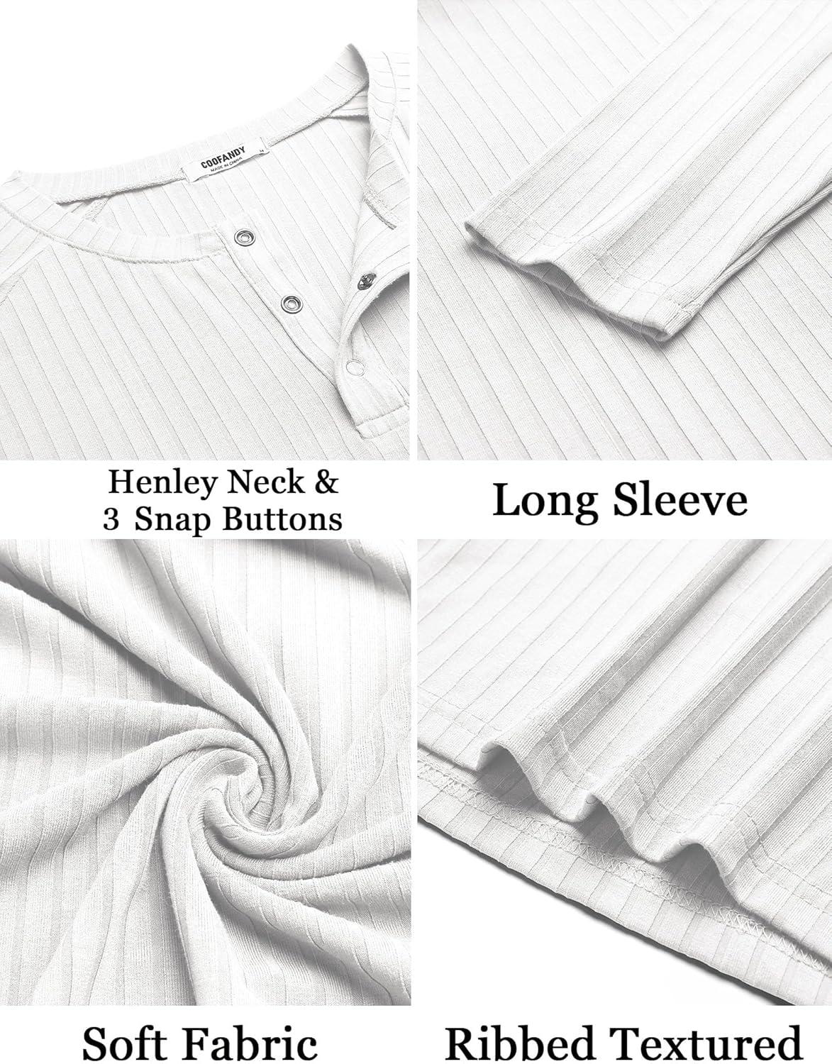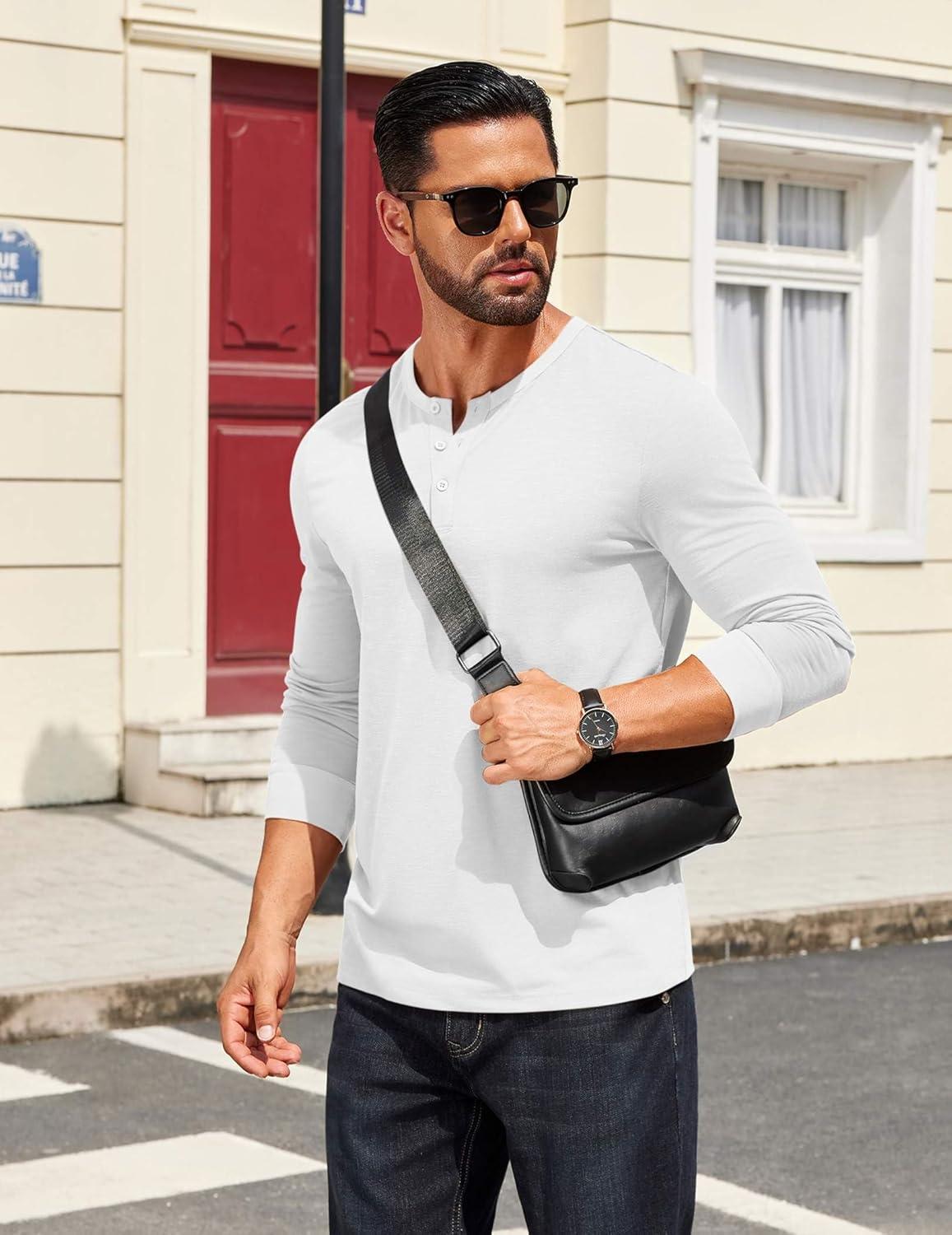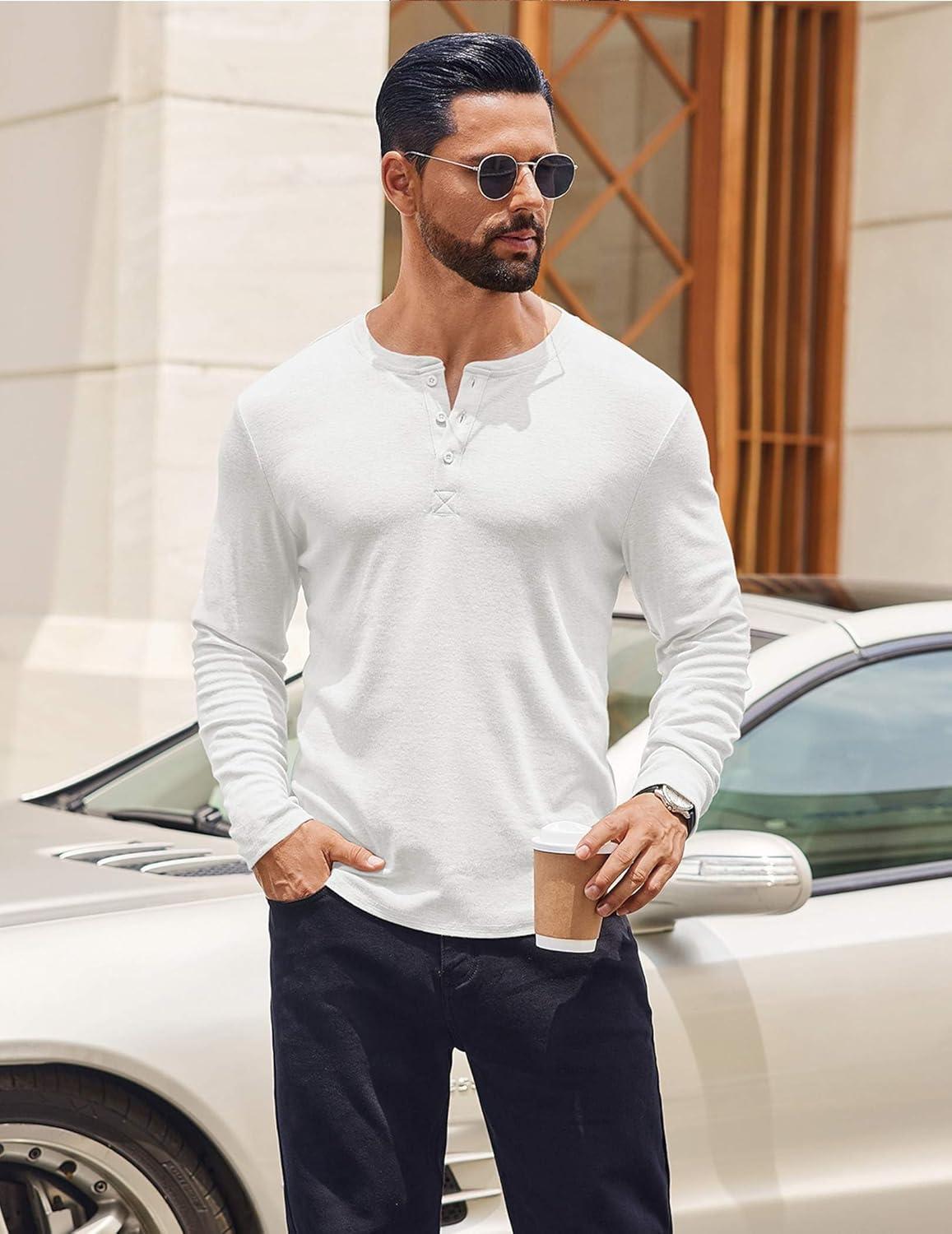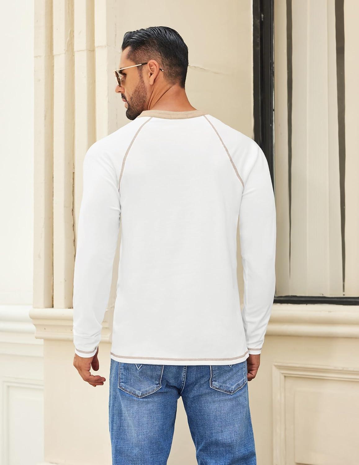 COOFANDY Mens Henley Shirts Long Sleeve T Shirts Casual Lightweight Fashion Button Pullover Tee Shirt(White)
