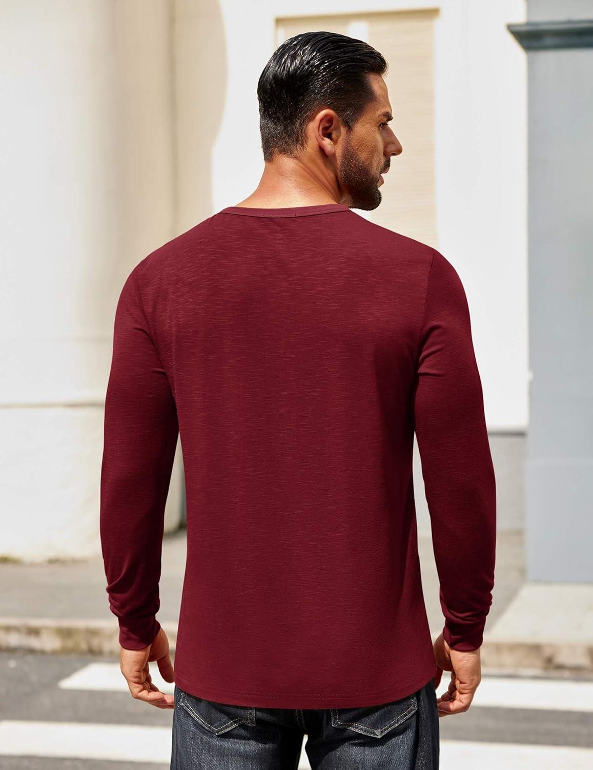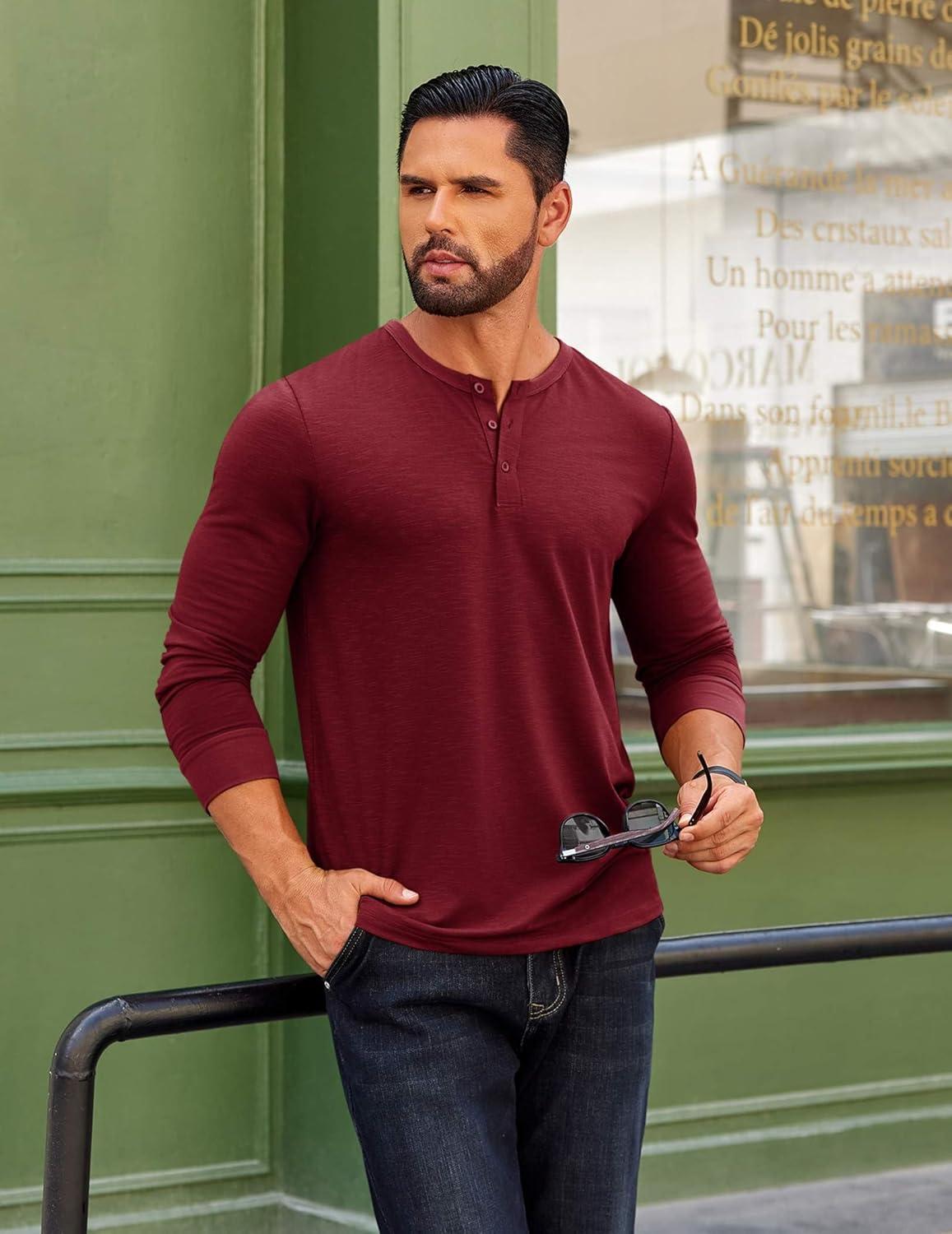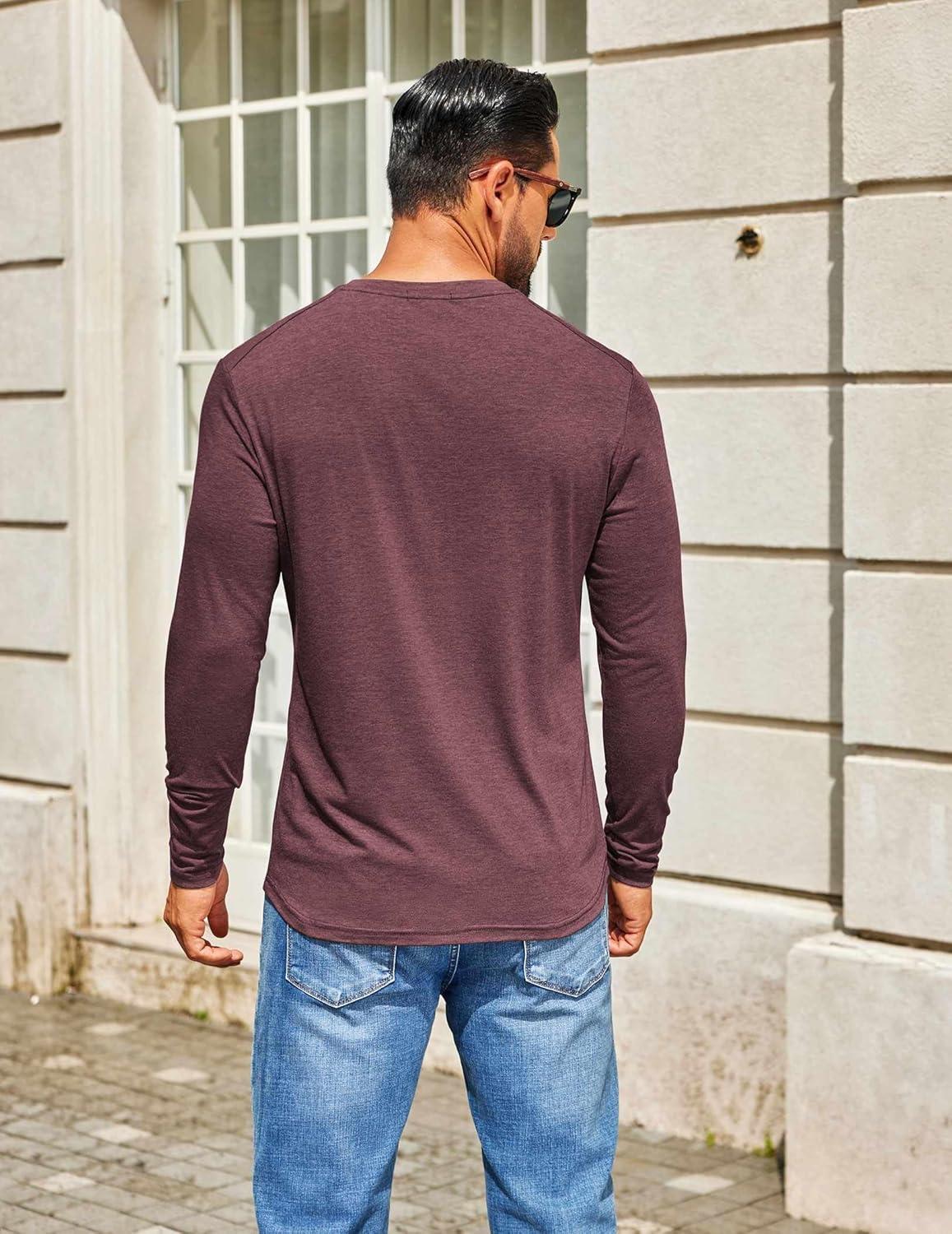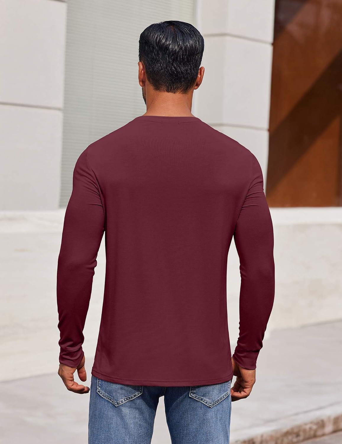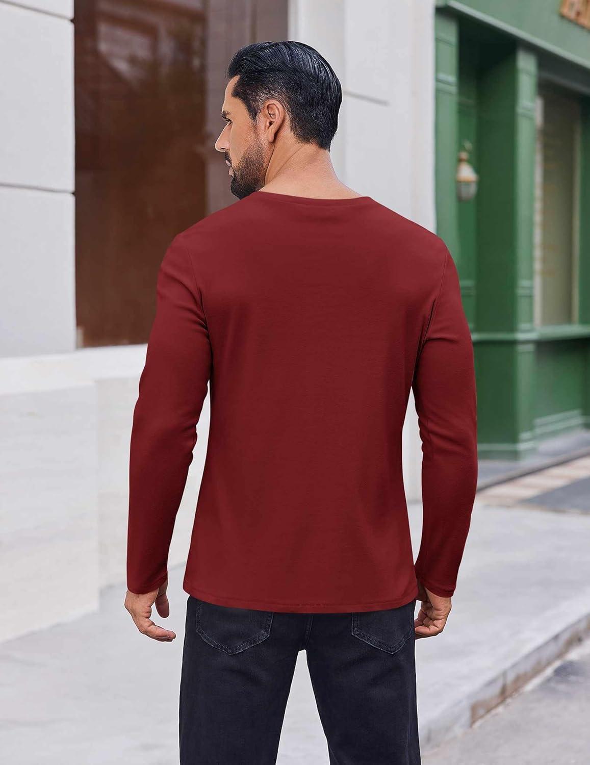 COOFANDY Men’s Long Sleeve Henley Shirts Cotton T-Shirts Casual Pullover Shirt Soft Stretch Basic Tees Fall Tops(Dark Red)
