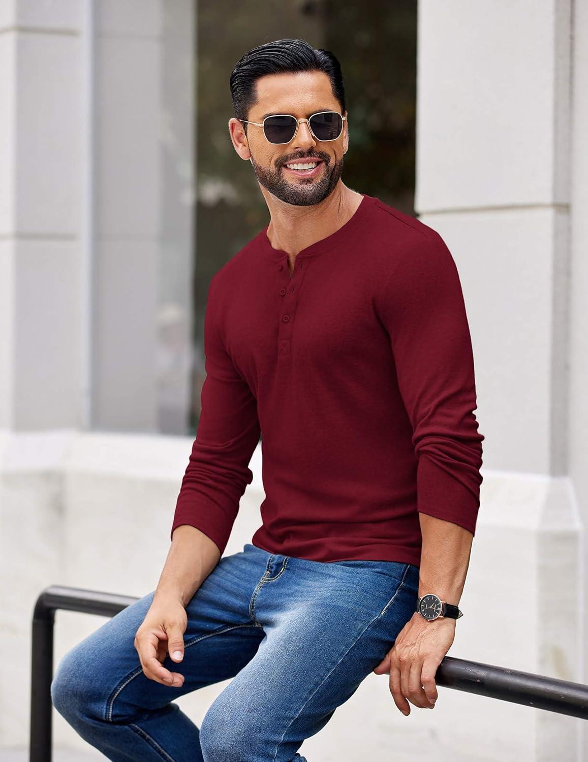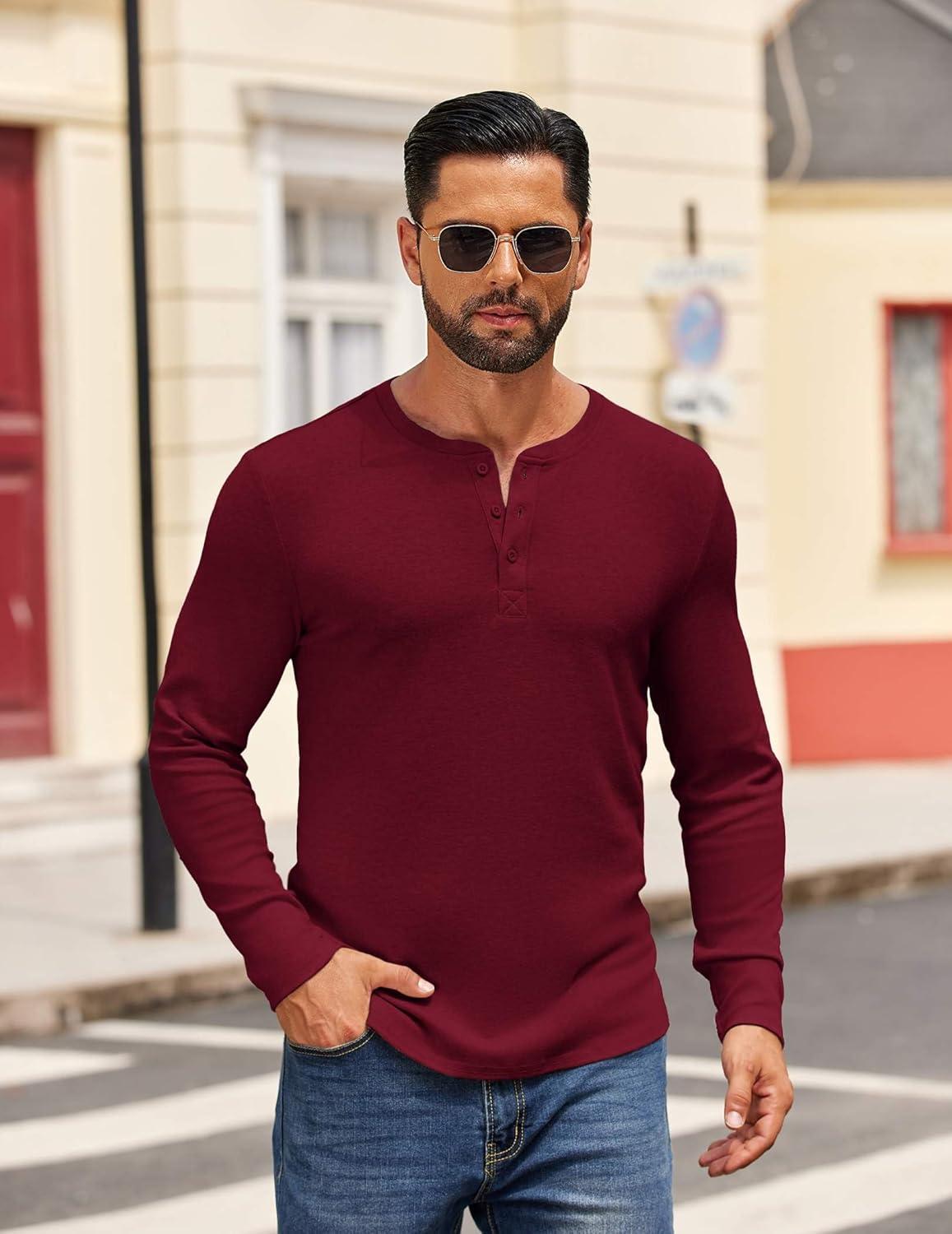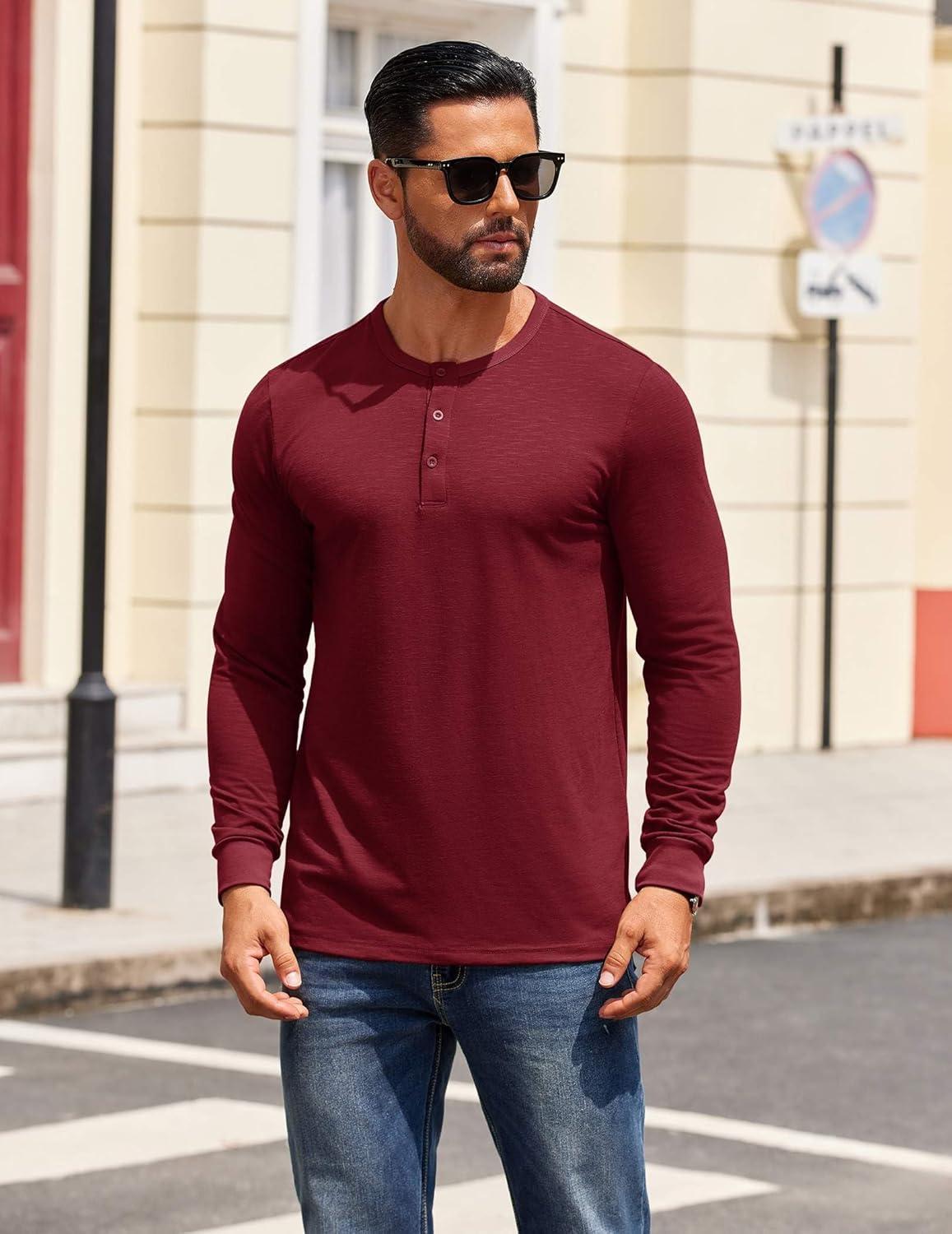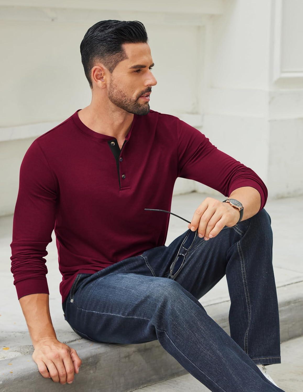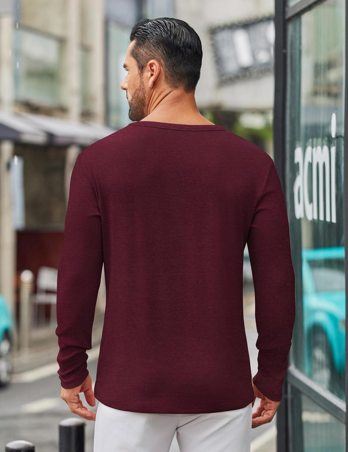 COOFANDY Men’s Long Sleeve Henley Shirts Cotton T-Shirts Casual Pullover Shirt Soft Stretch Basic Tees Fall Tops(Dark Red)