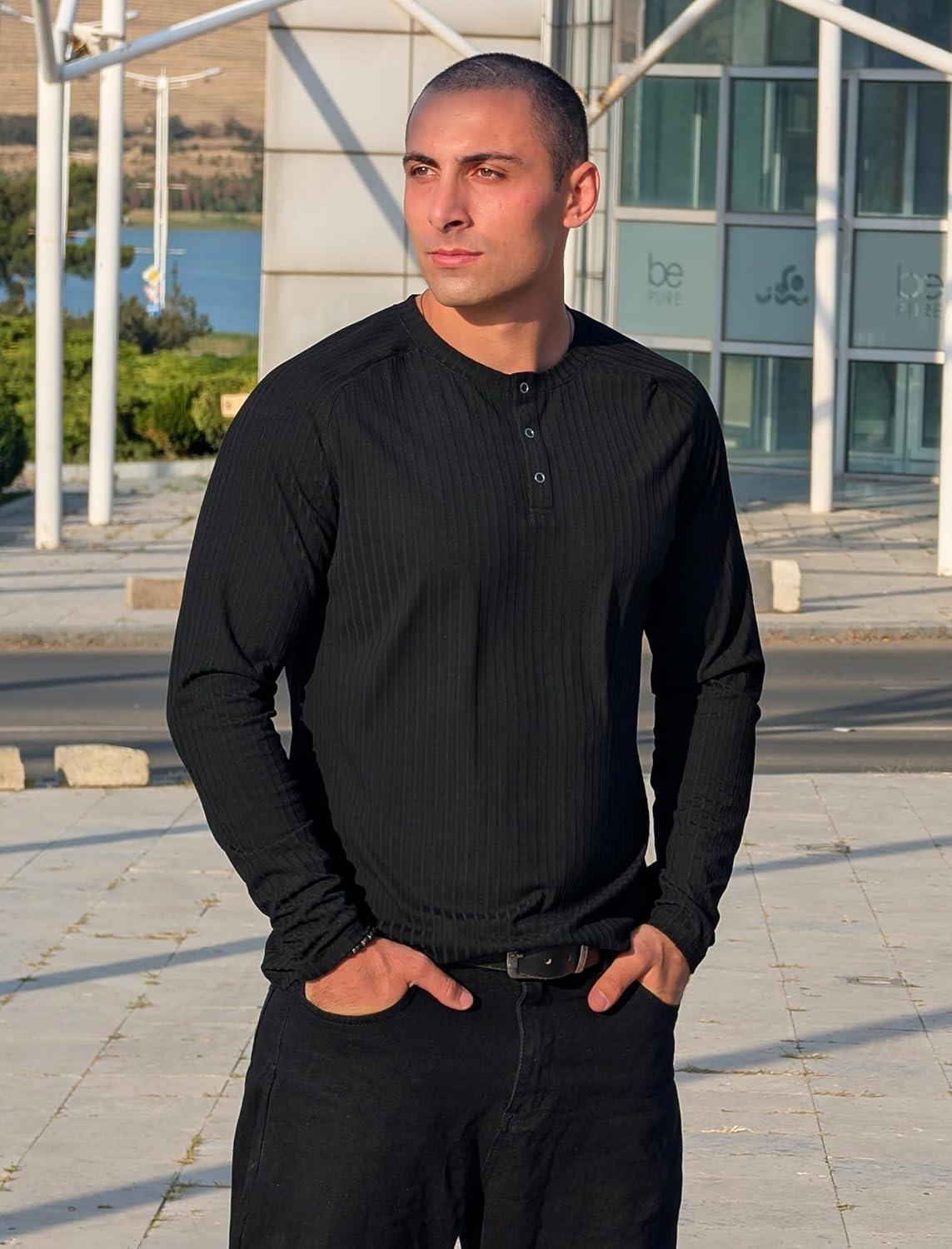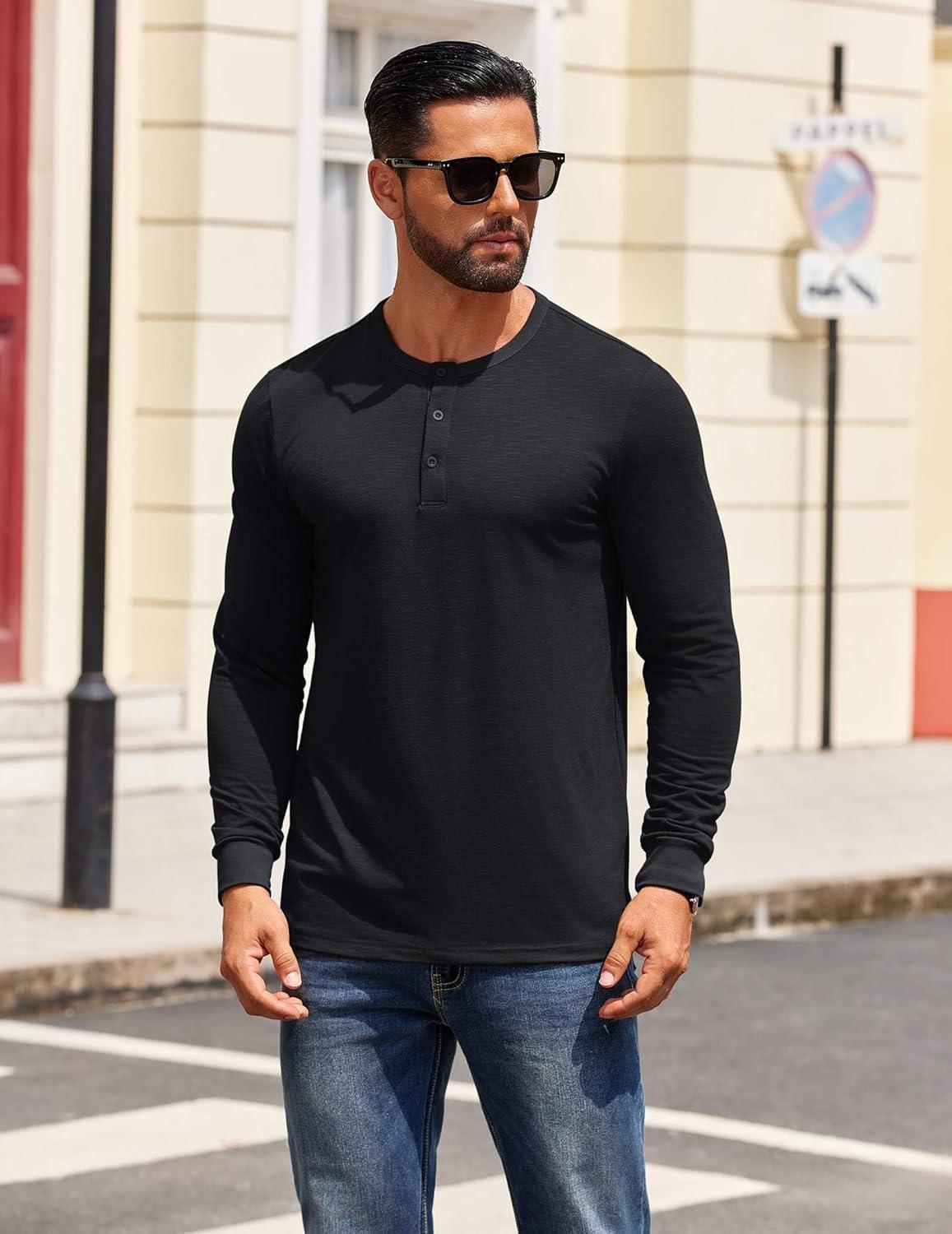 COOFANDY Mens Henley Shirts Long Sleeve T Shirts Casual Lightweight Fashion Button Pullover Tee Shirt(Black)