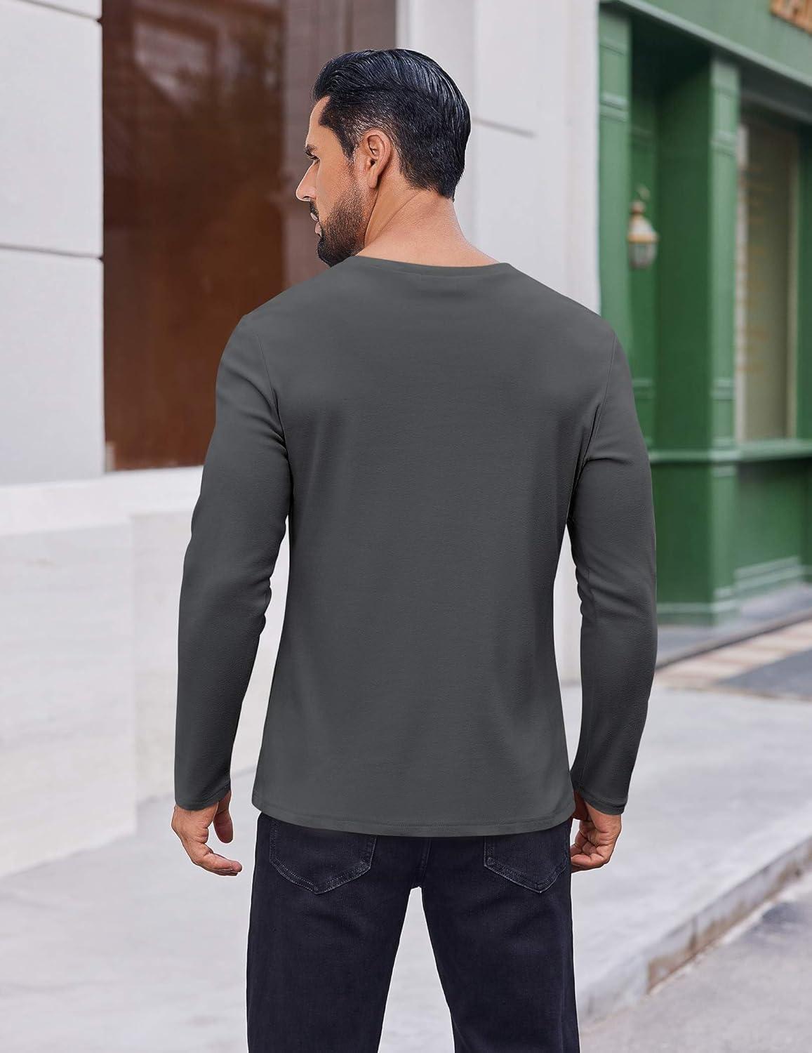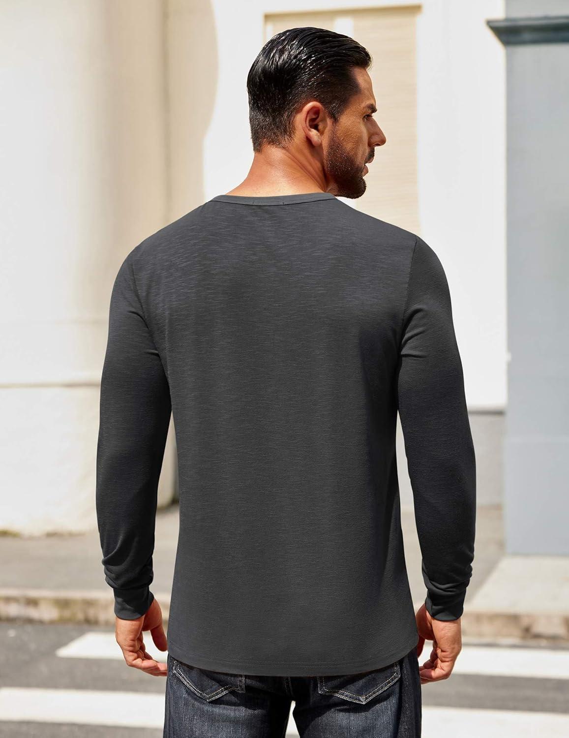 COOFANDY Men’s Long Sleeve Henley Shirts Cotton T-Shirts Casual Pullover Shirt Soft Stretch Basic Tees Fall Tops(Dark Grey)