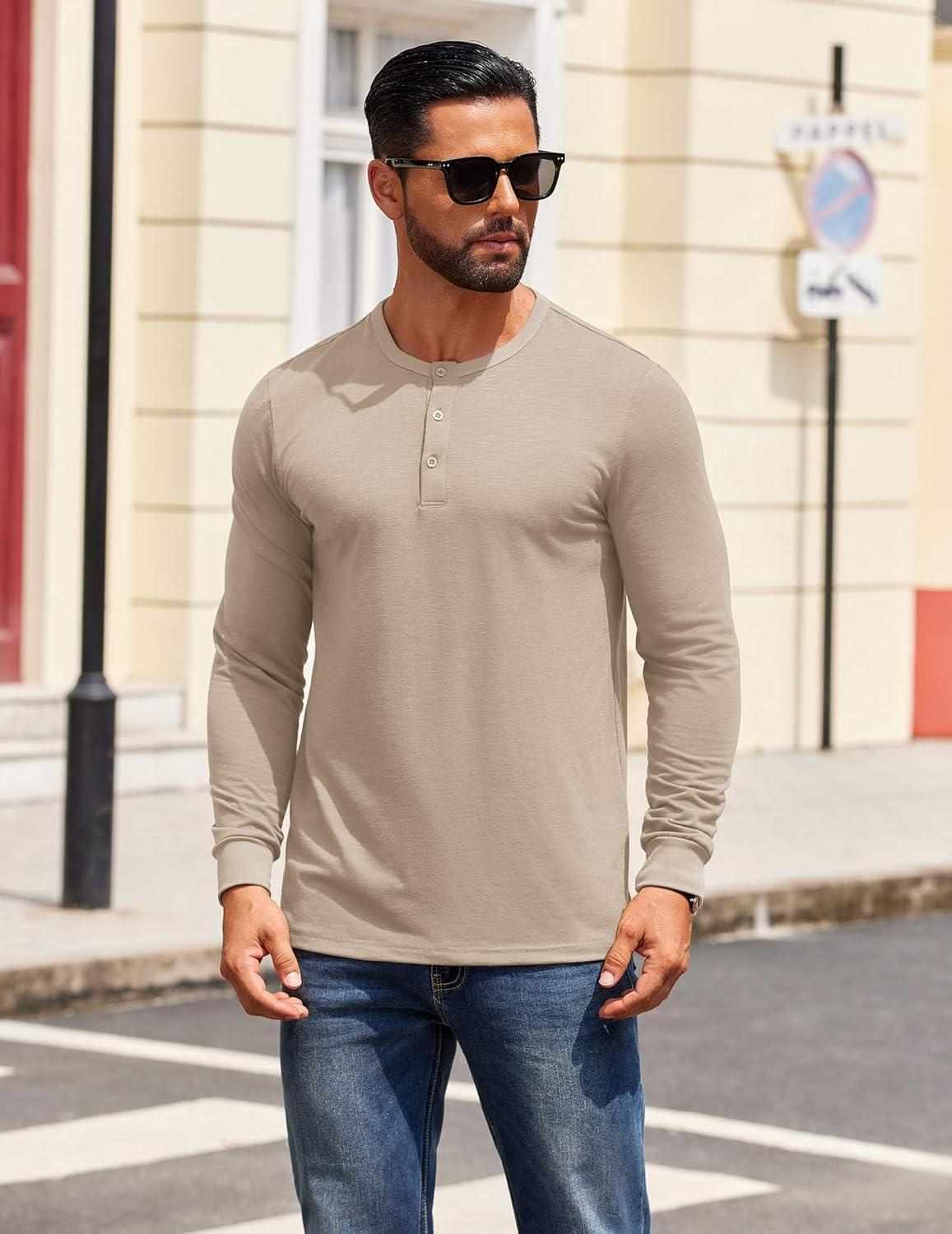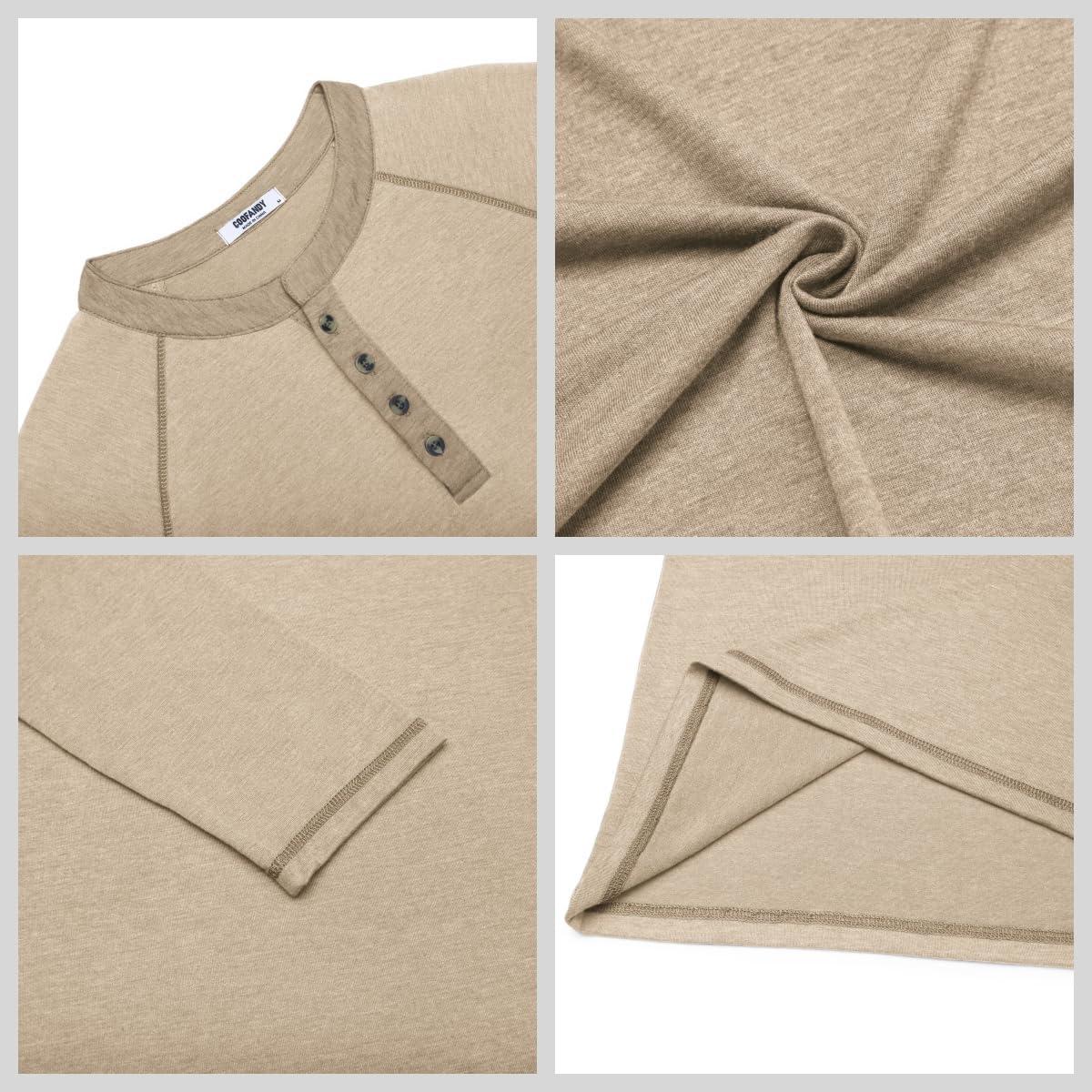 COOFANDY Men’s Long Sleeve Henley Shirts Cotton T-Shirts Casual Pullover Shirt Soft Stretch Basic Tees Fall Tops(Khaki)