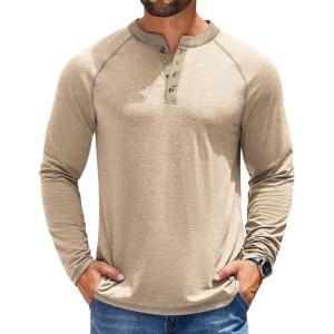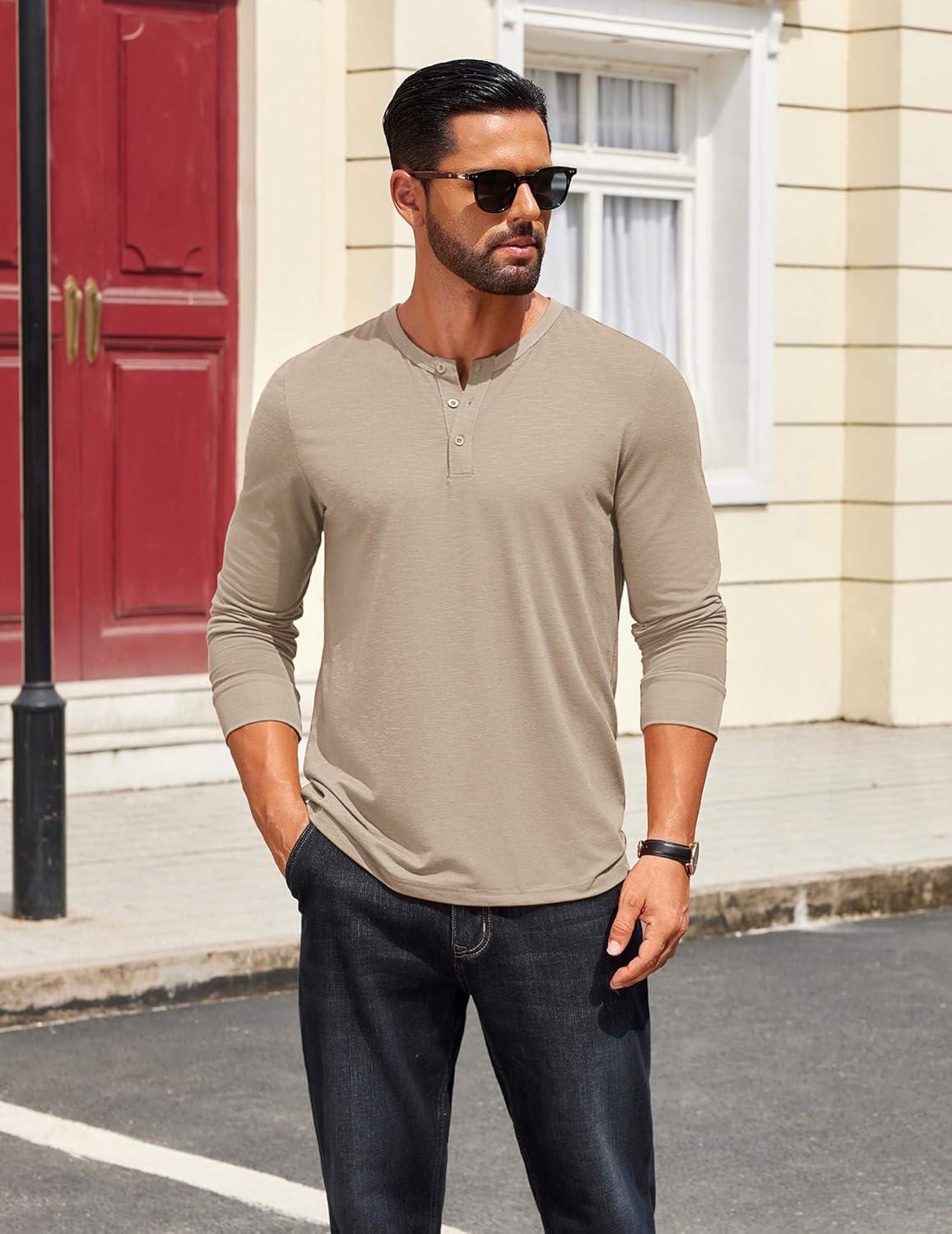 COOFANDY Men’s Henley Shirts Long Sleeve T-Shirt Lightweight Fashion Casual Pullover Tee Shirt(Khaki)