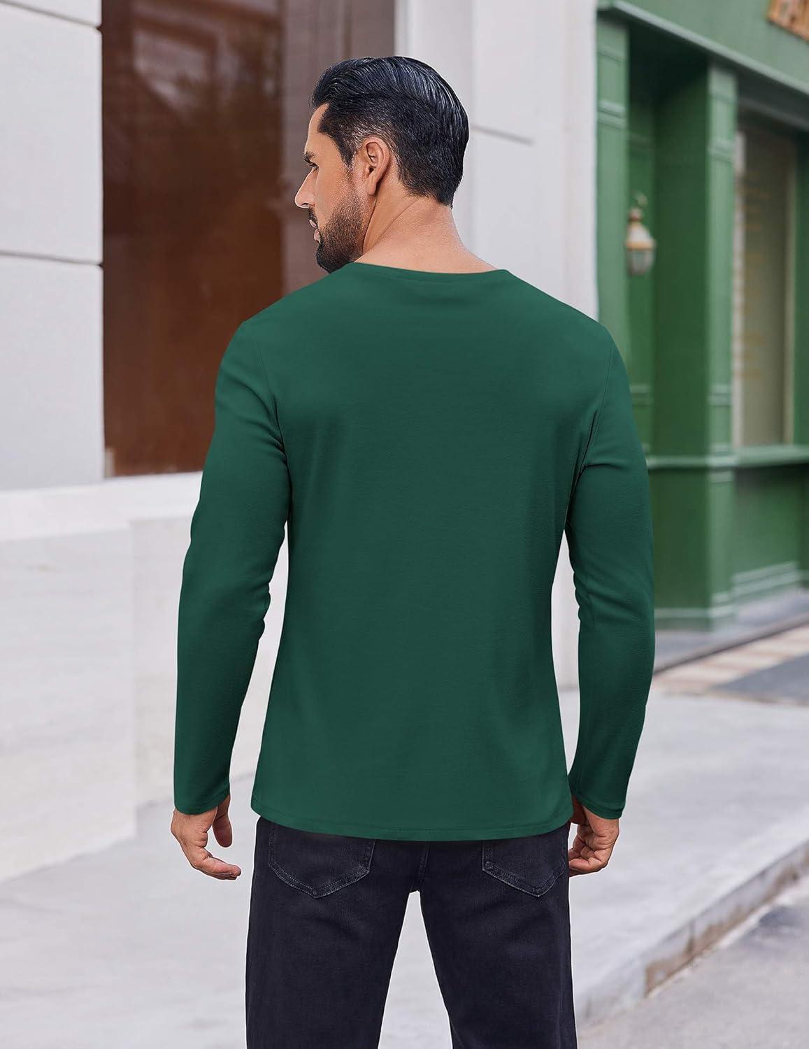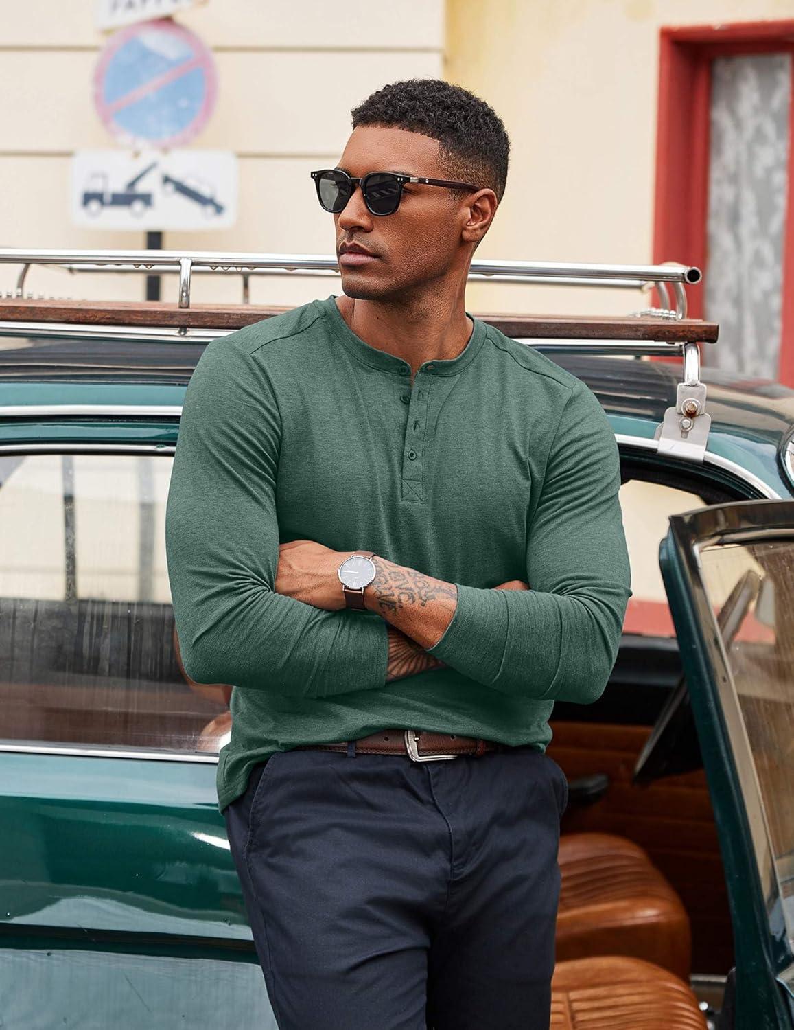COOFANDY Men’s Henley Shirts Long Sleeve T-Shirt Lightweight Fashion Casual Pullover Tee Shirt(Green)