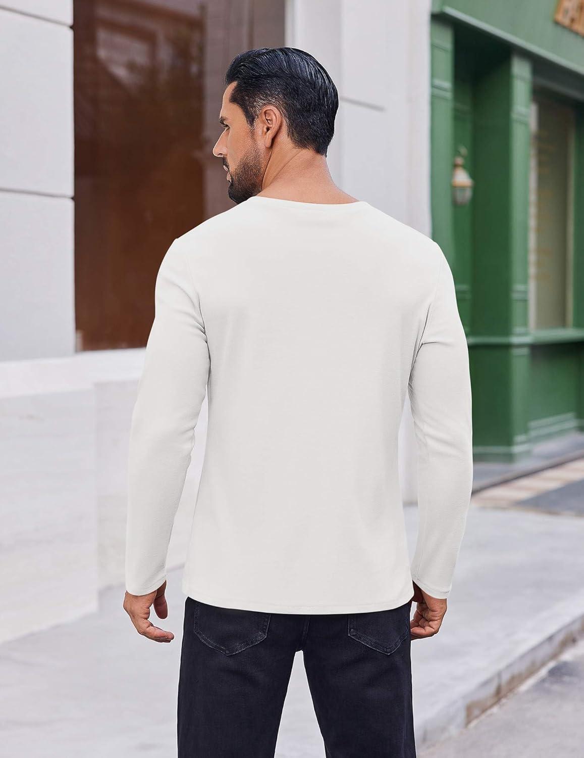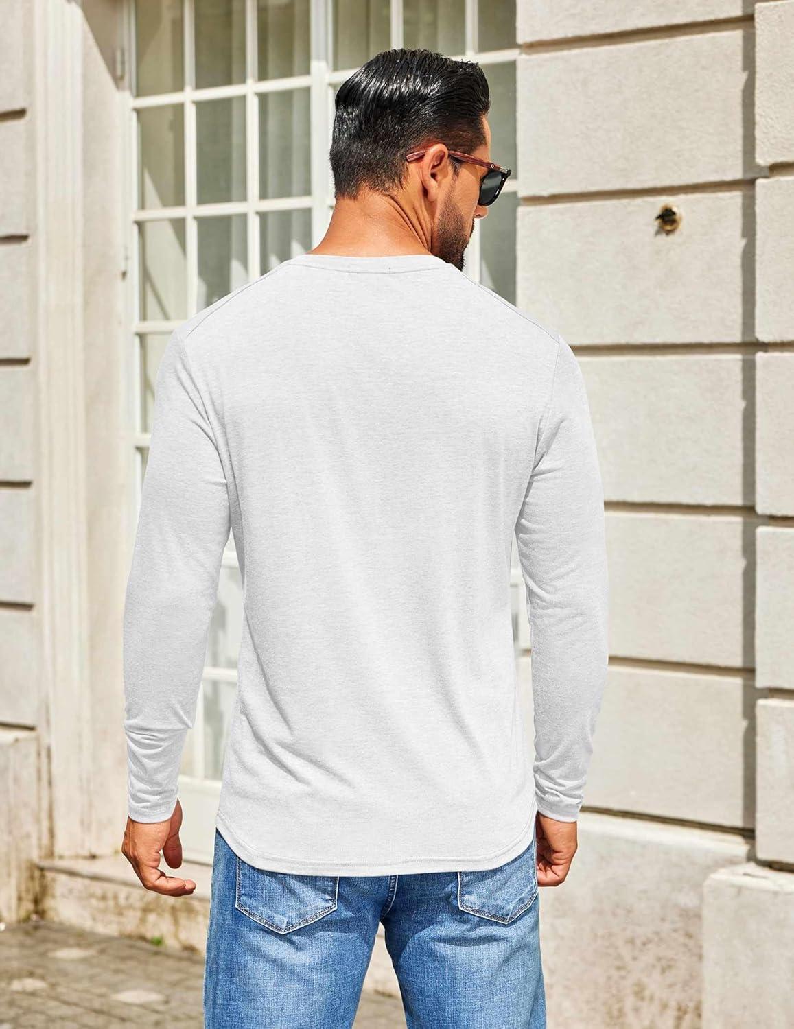 COOFANDY Men’s Long Sleeve Henley Shirts Cotton T-Shirts Casual Pullover Shirt Soft Stretch Basic Tees Fall Tops(White)