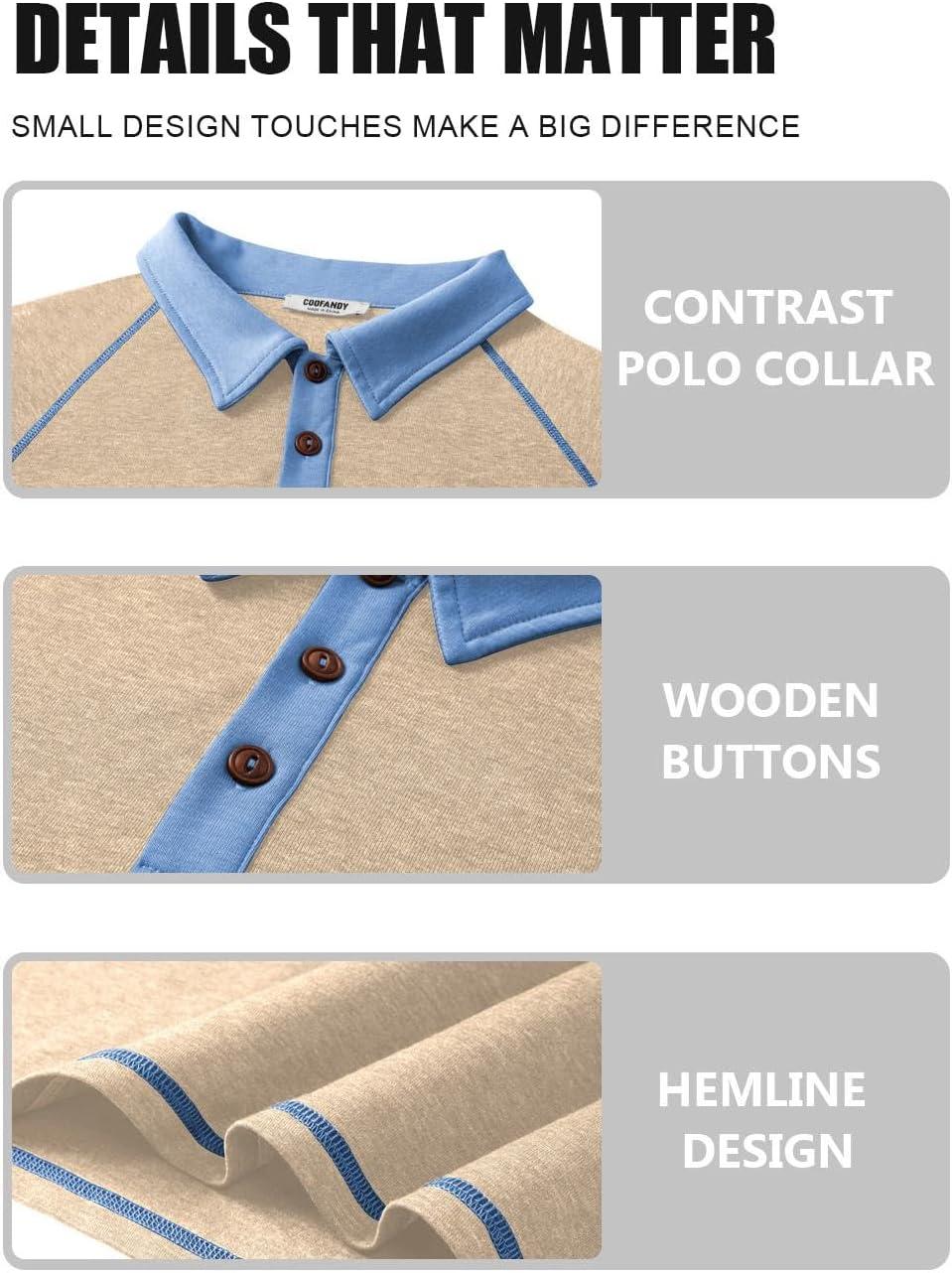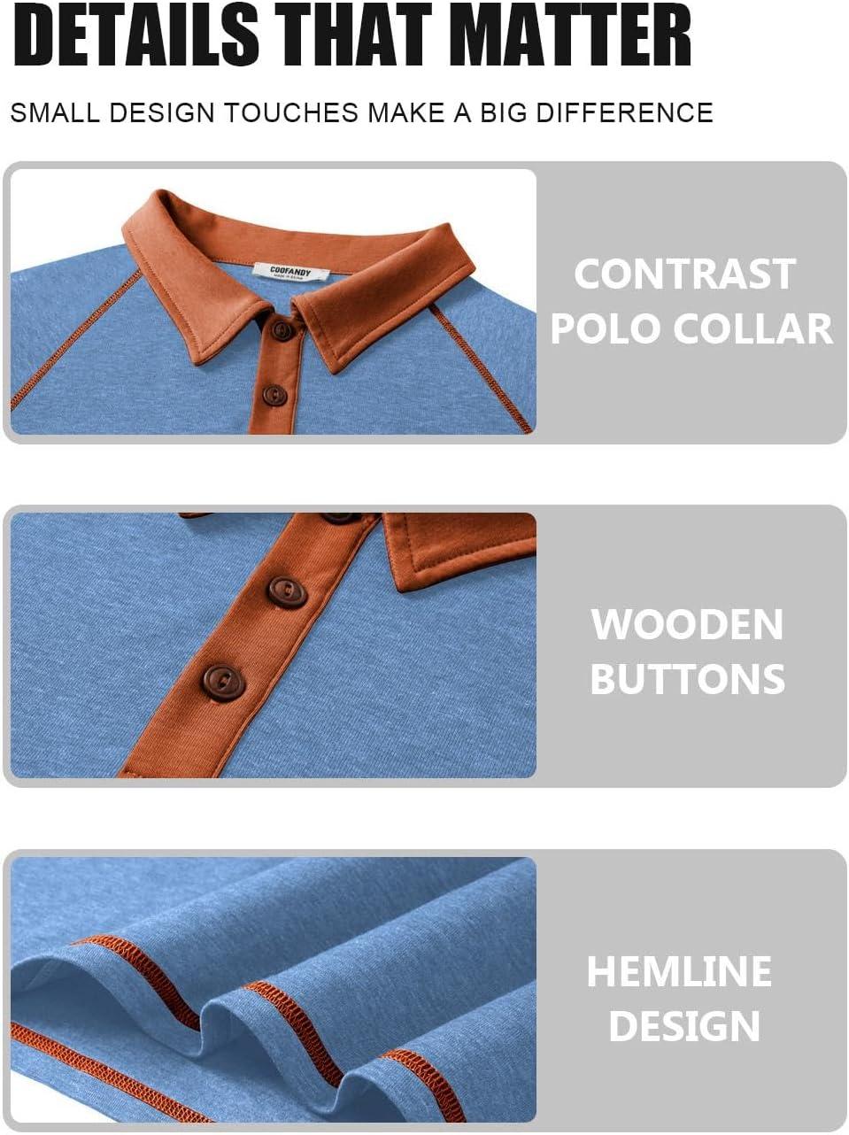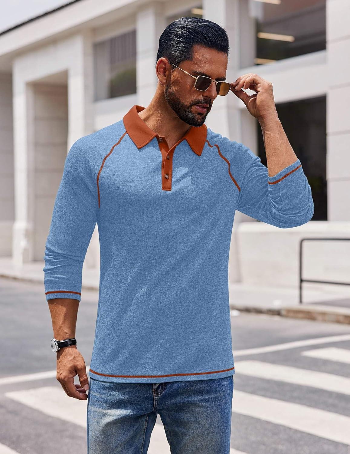 COOFANDY Mens Long Sleeve Polo Shirts Casual Button Collared Shirts Raglan Golf T Shirt(Blue)