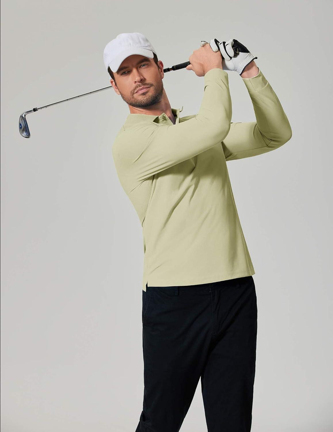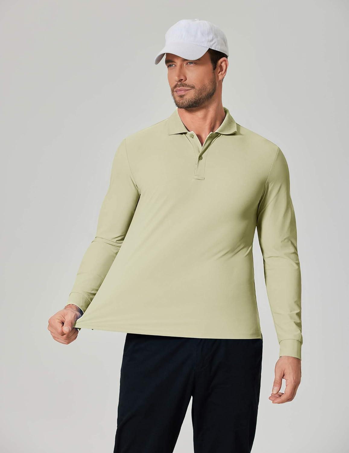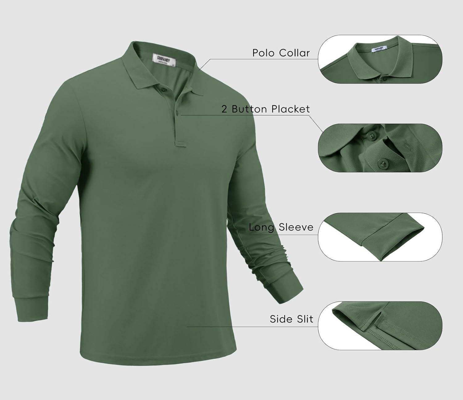 COOFANDY Men’s Long Sleeve Polo Shirts Moisture Wicking Golf Shirts Lightweight Athletic Collared Shirt(Army Green)