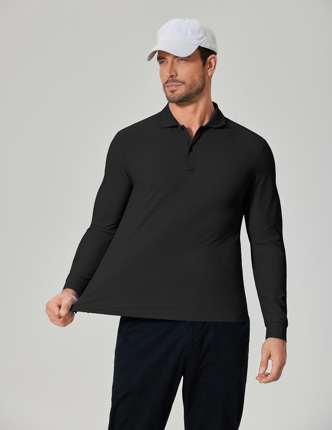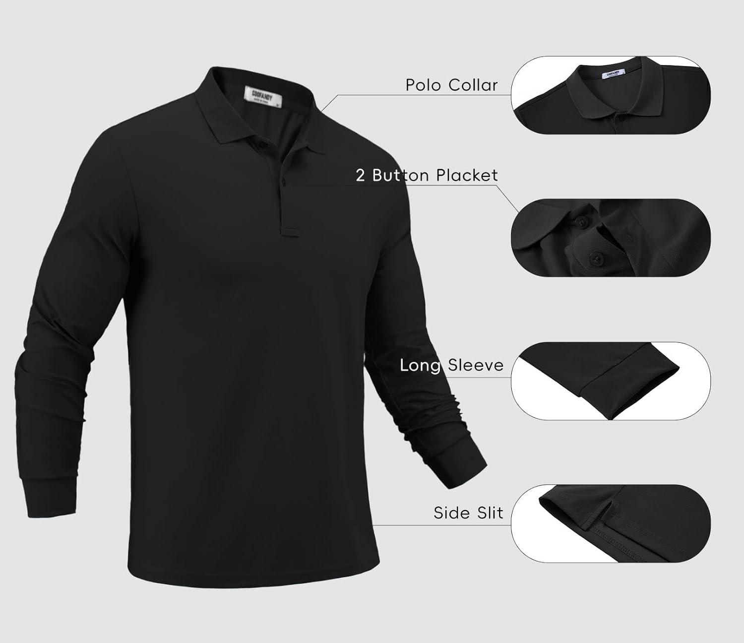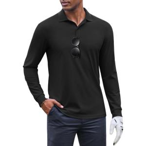 COOFANDY Men’s Long Sleeve Polo Shirts Moisture Wicking Golf Shirts Lightweight Athletic Collared Shirt(Black)