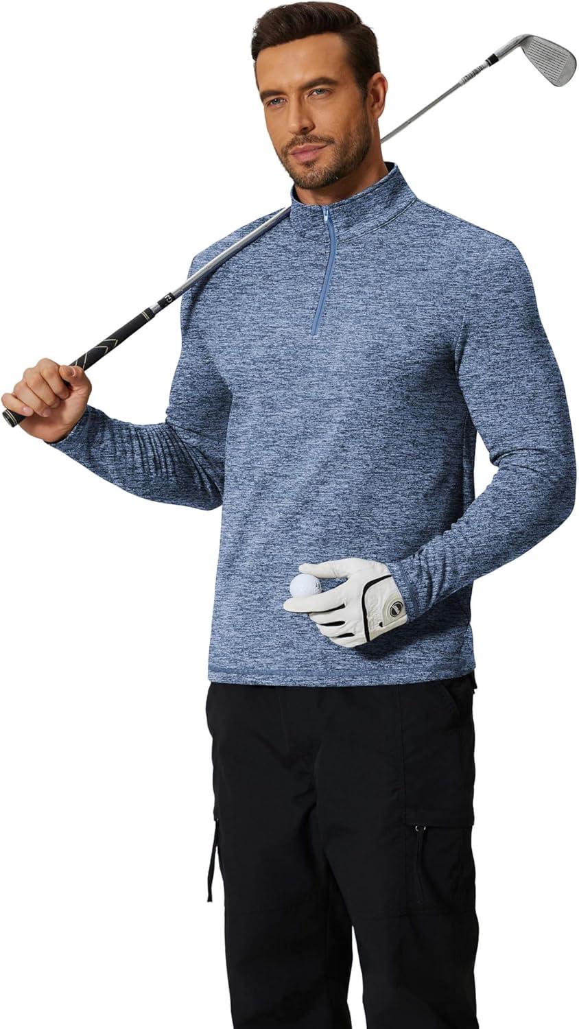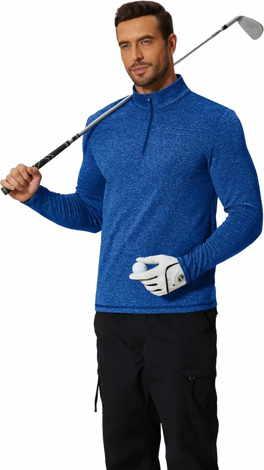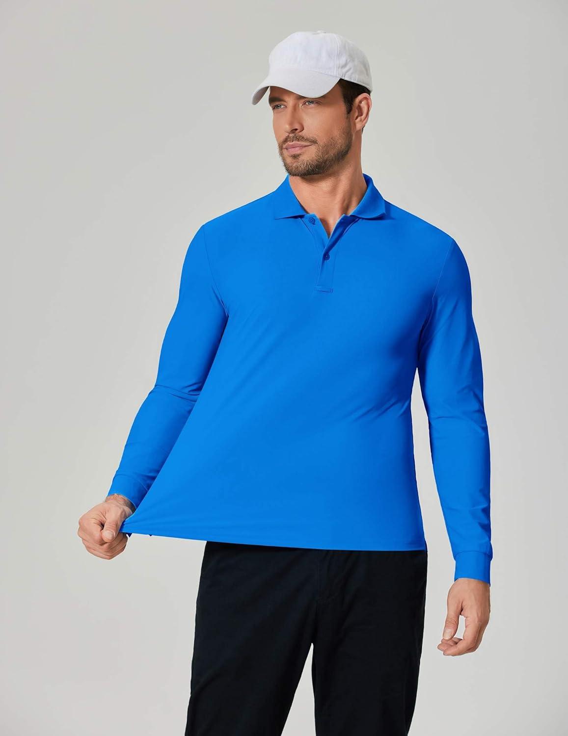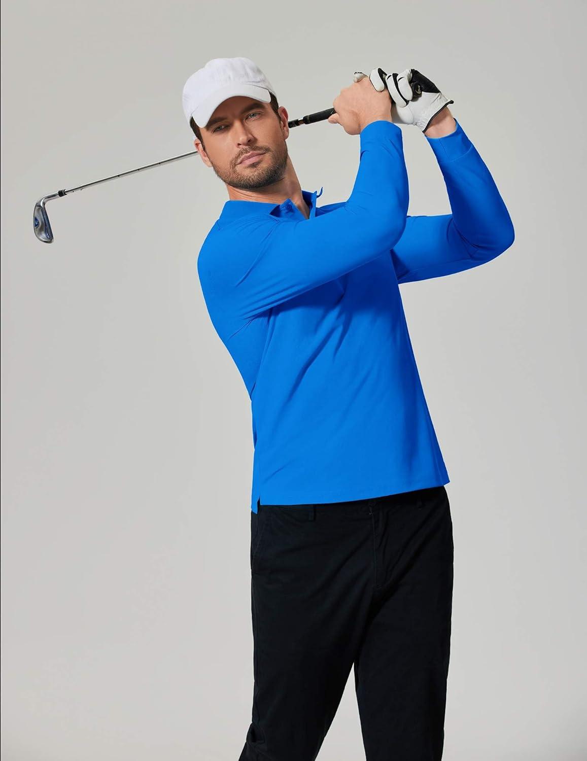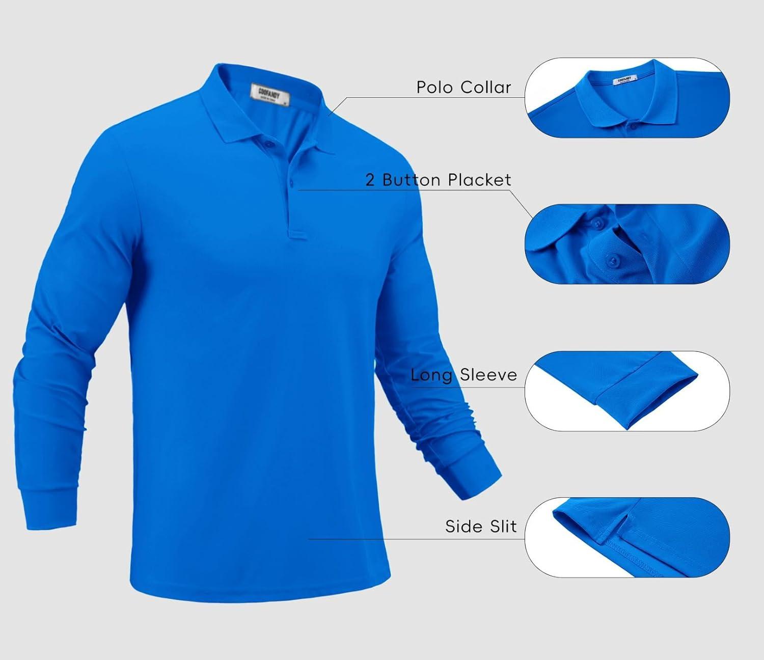 COOFANDY Men’s Long Sleeve Polo Shirts Moisture Wicking Golf Shirts Lightweight Athletic Collared Shirt(Blue)