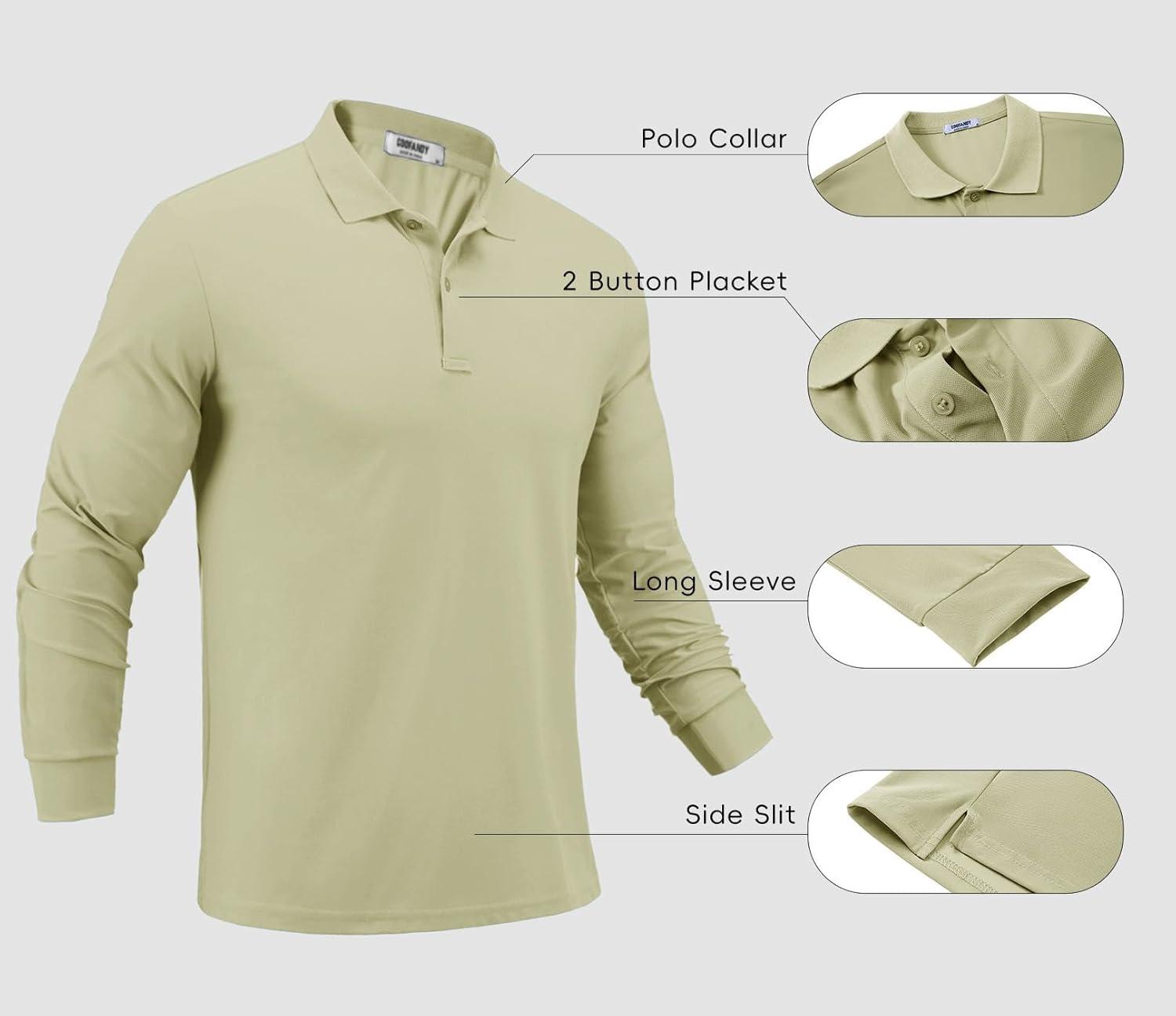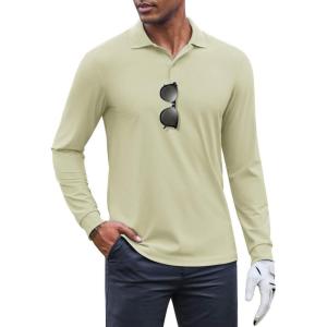 COOFANDY Men’s Long Sleeve Polo Shirts Moisture Wicking Golf Shirts Lightweight Athletic Collared Shirt(Khaki)
