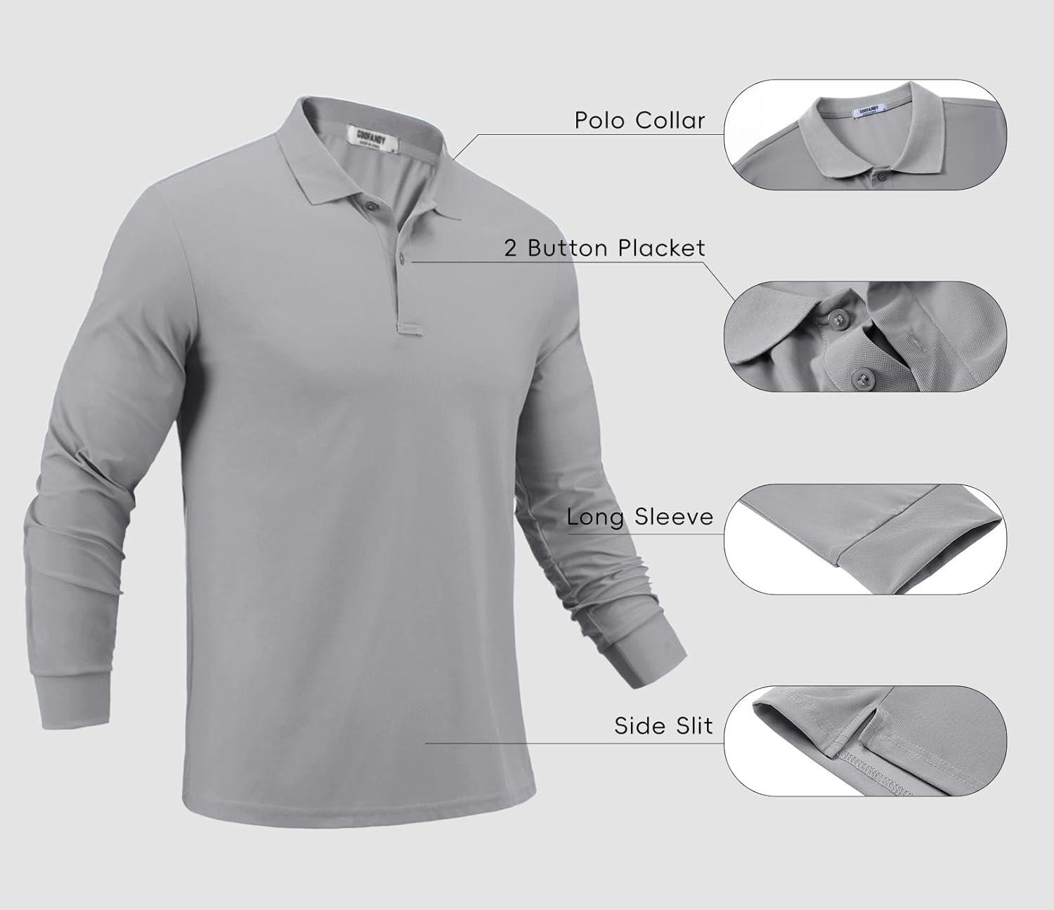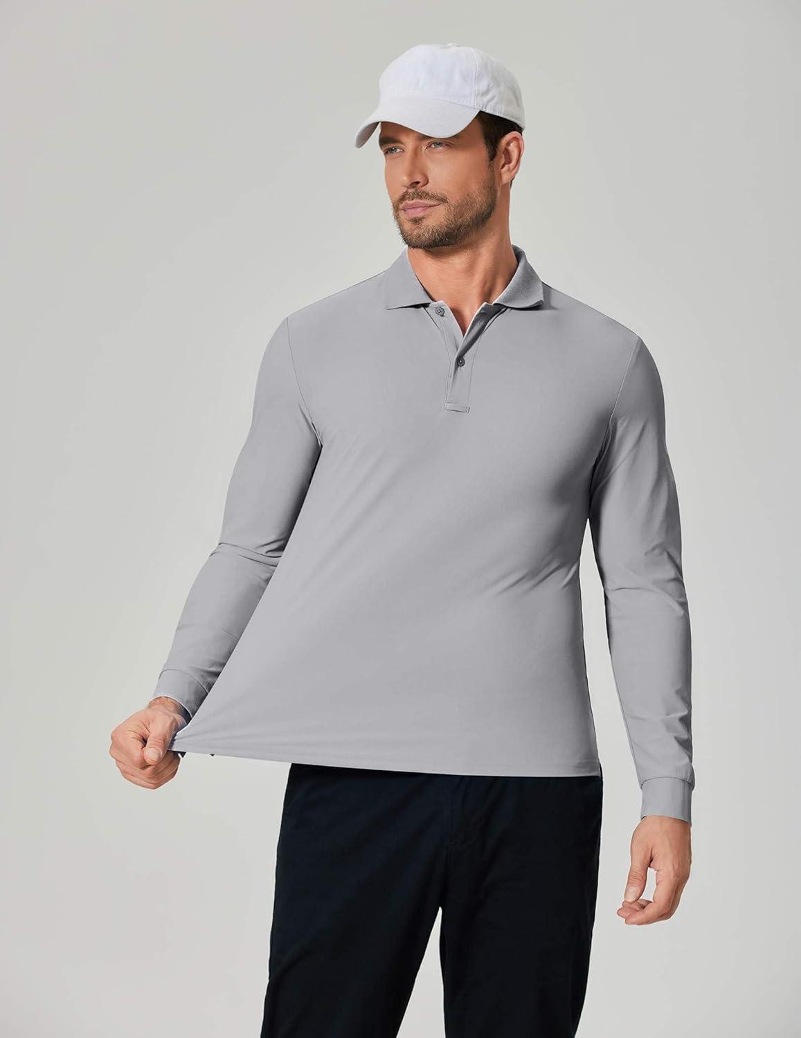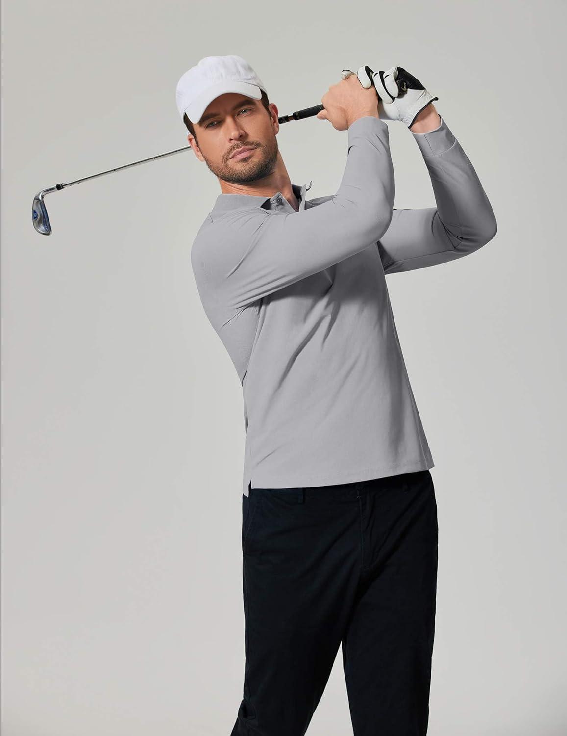 COOFANDY Men’s Long Sleeve Polo Shirts Moisture Wicking Golf Shirts Lightweight Athletic Collared Shirt(Light Grey)