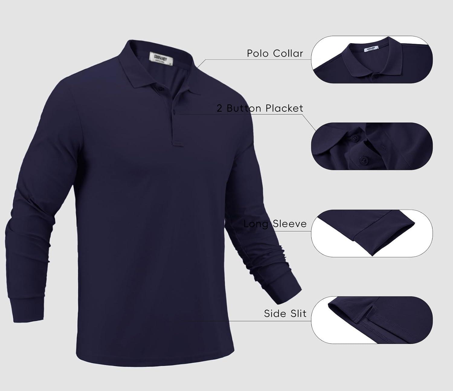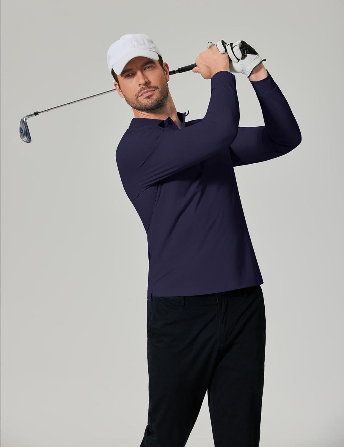 COOFANDY Men’s Long Sleeve Polo Shirts Moisture Wicking Golf Shirts Lightweight Athletic Collared Shirt(Navy)