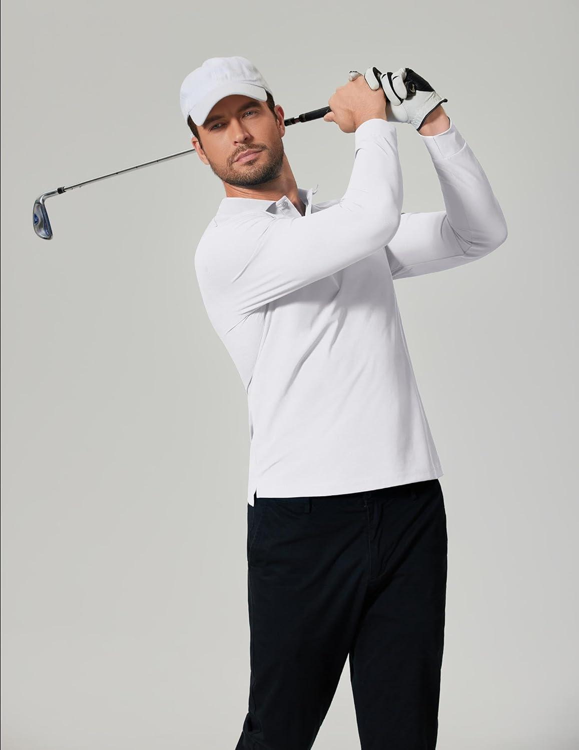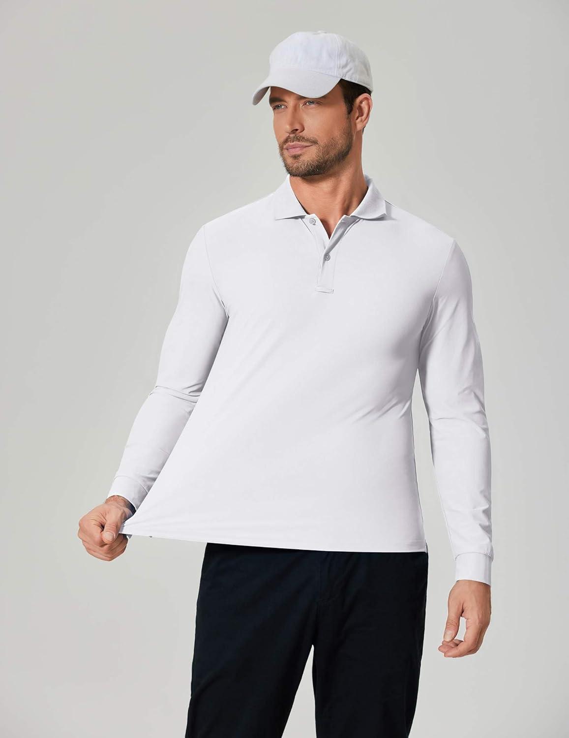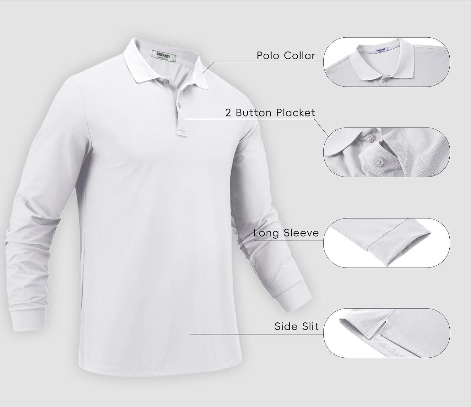 COOFANDY Men’s Long Sleeve Polo Shirts Moisture Wicking Golf Shirts Lightweight Athletic Collared Shirt(White)