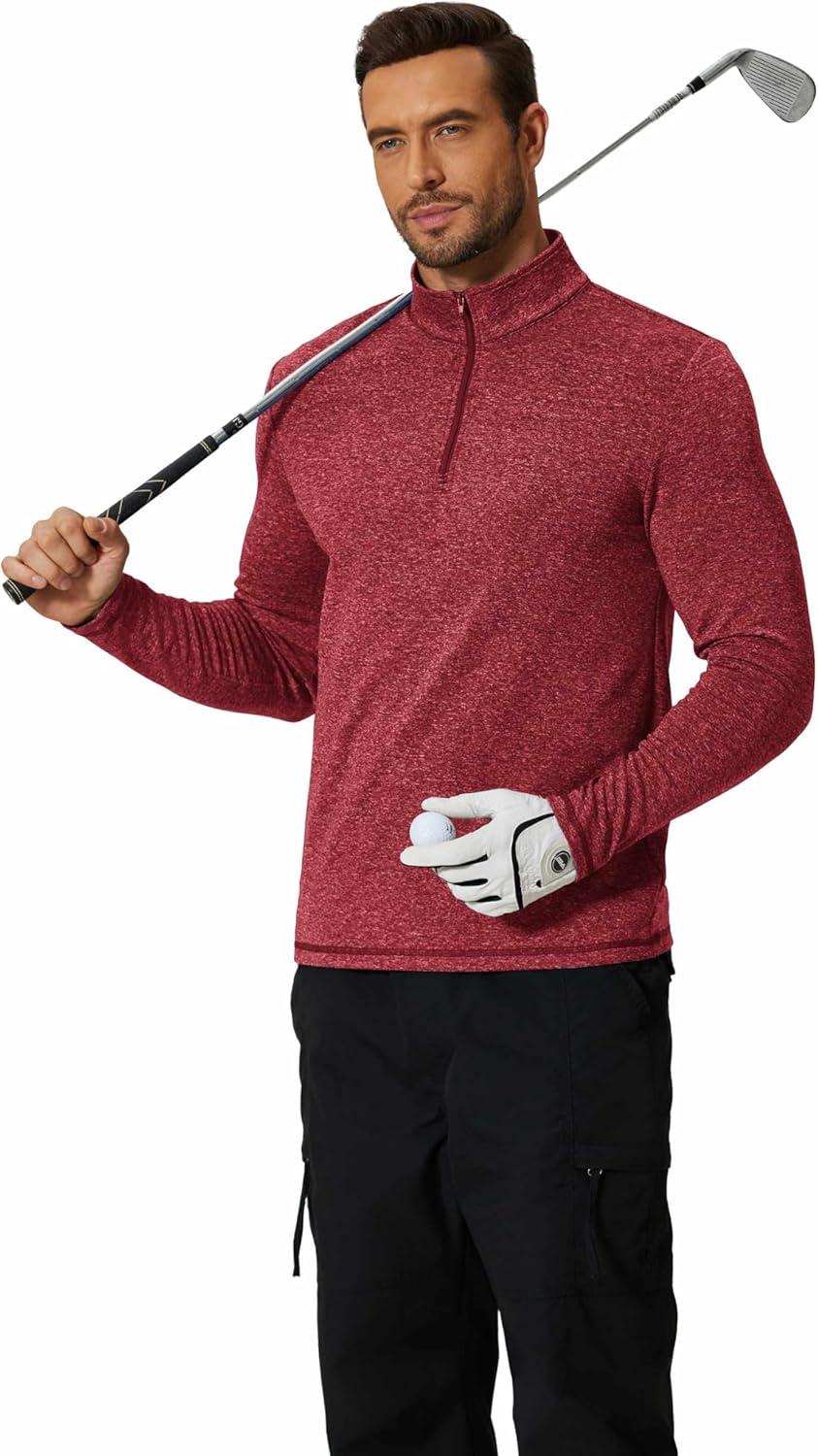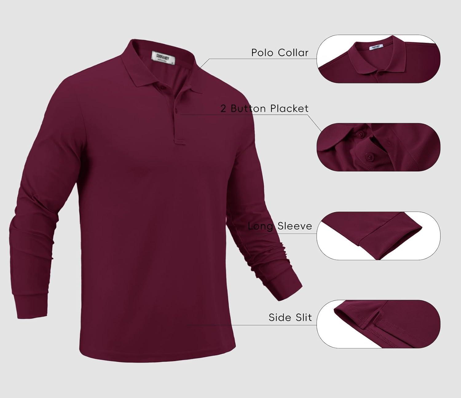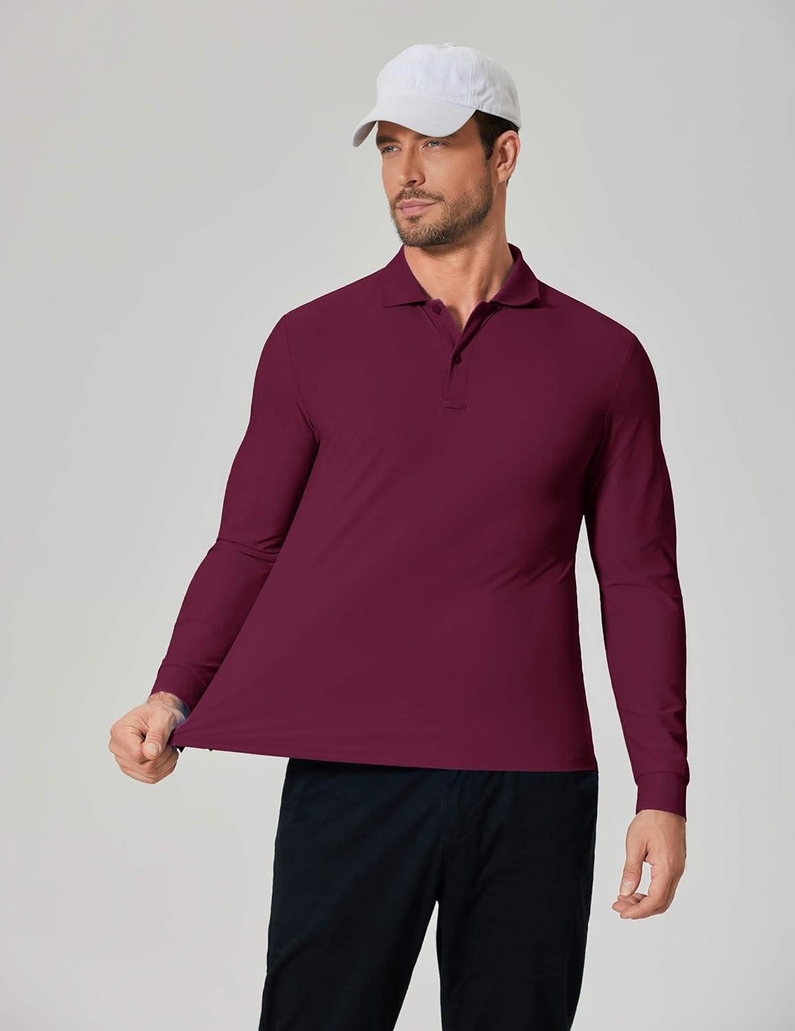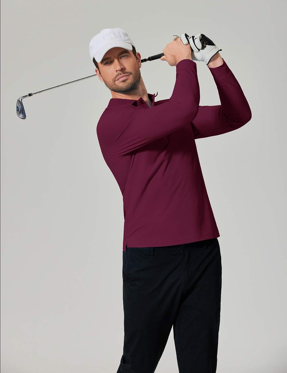 COOFANDY Men’s Long Sleeve Polo Shirts Moisture Wicking Golf Shirts Lightweight Athletic Collared Shirt(Wine Red)