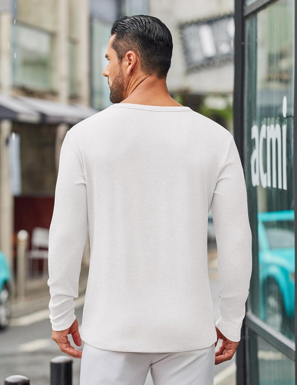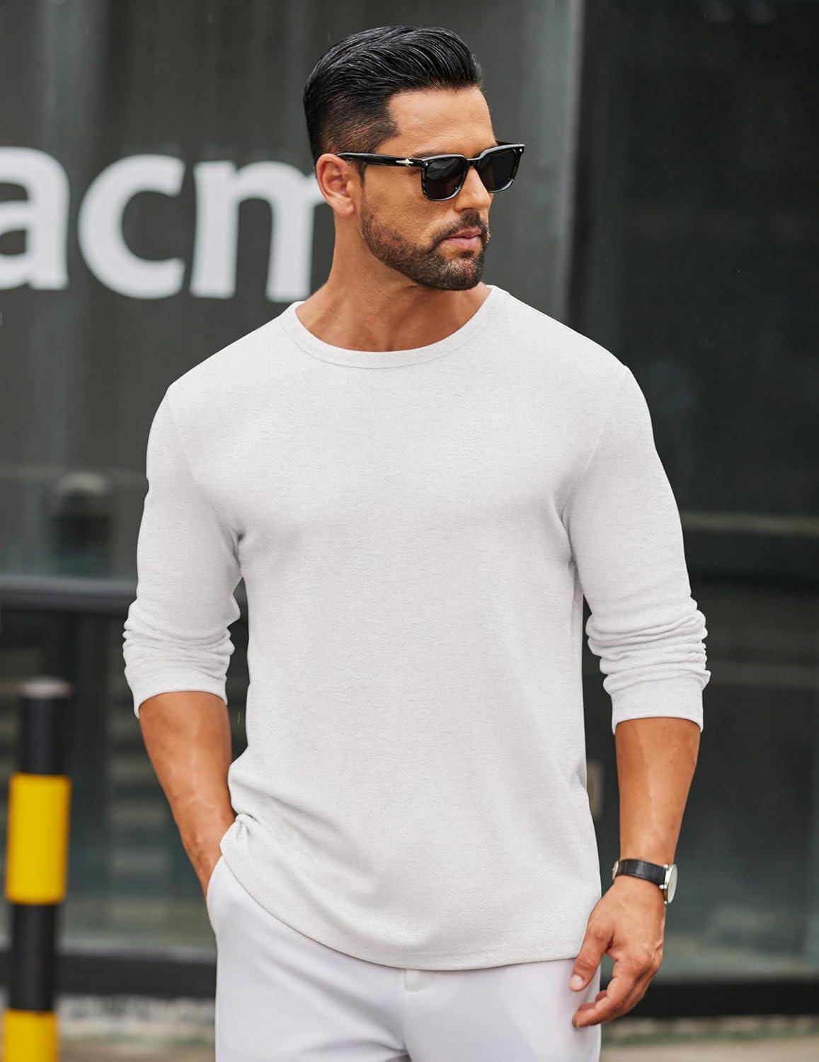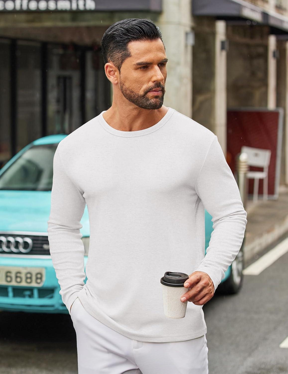 COOFANDY Thermal Shirts for Men Heavyweight Long Sleeve T Shirt Casual Basic Shirts Stretch Crew Neck Undershirts(White)