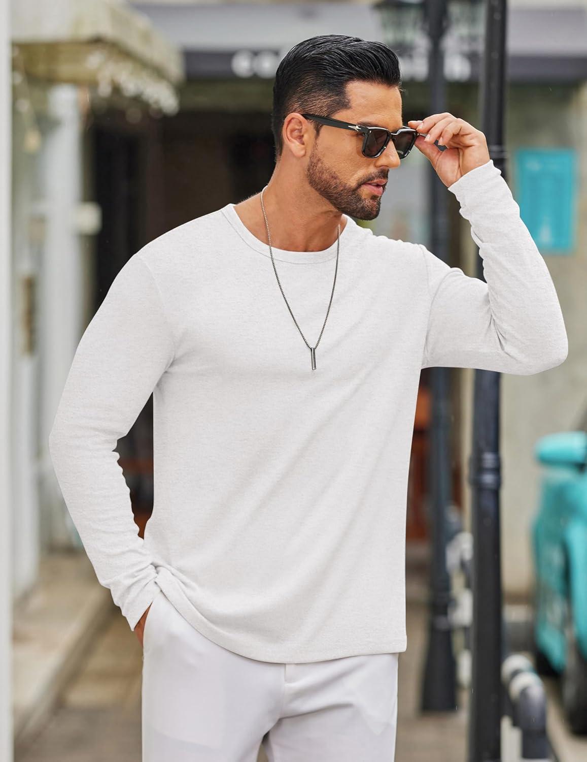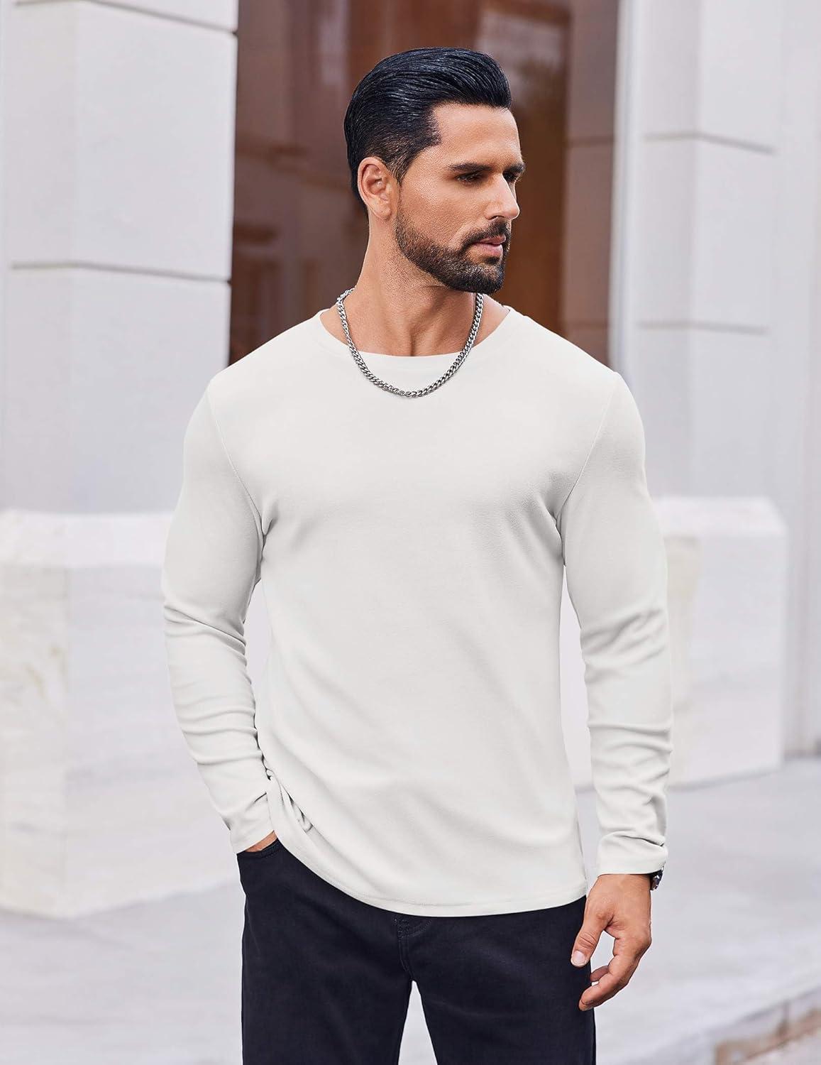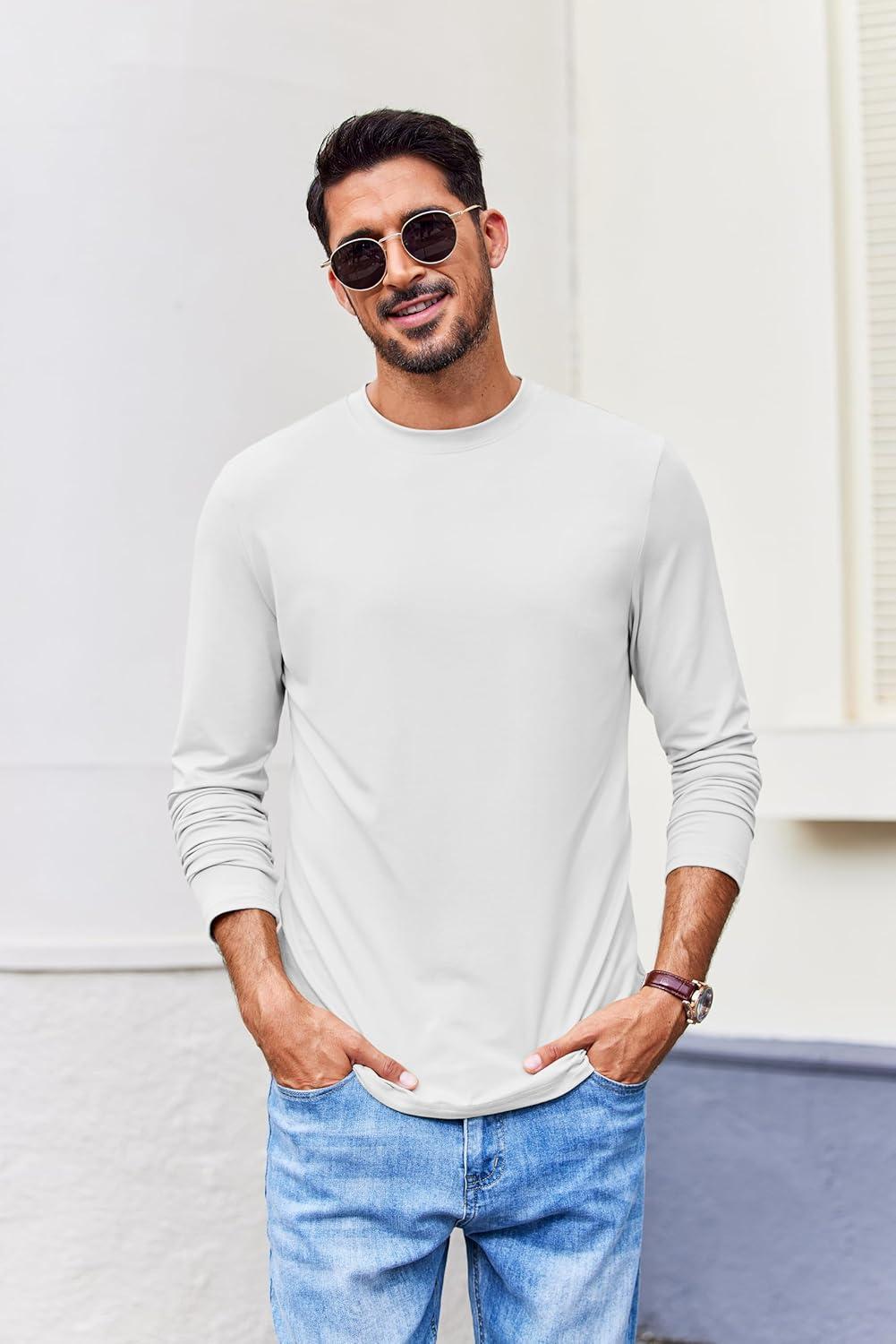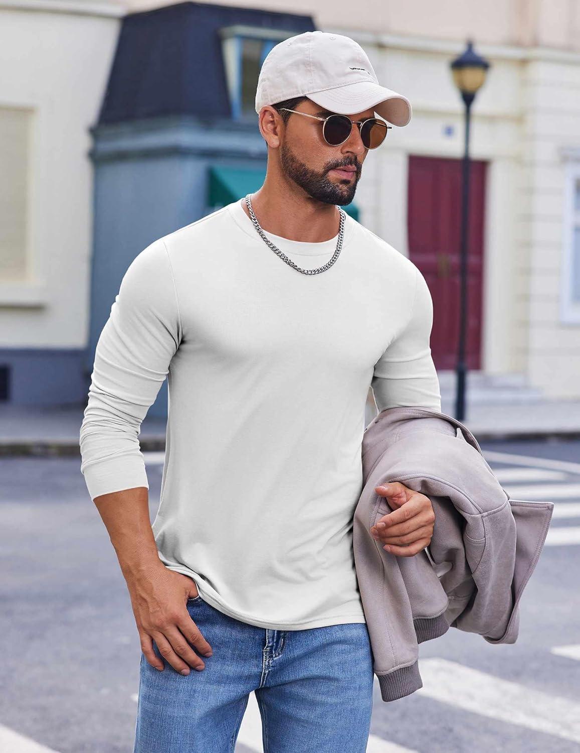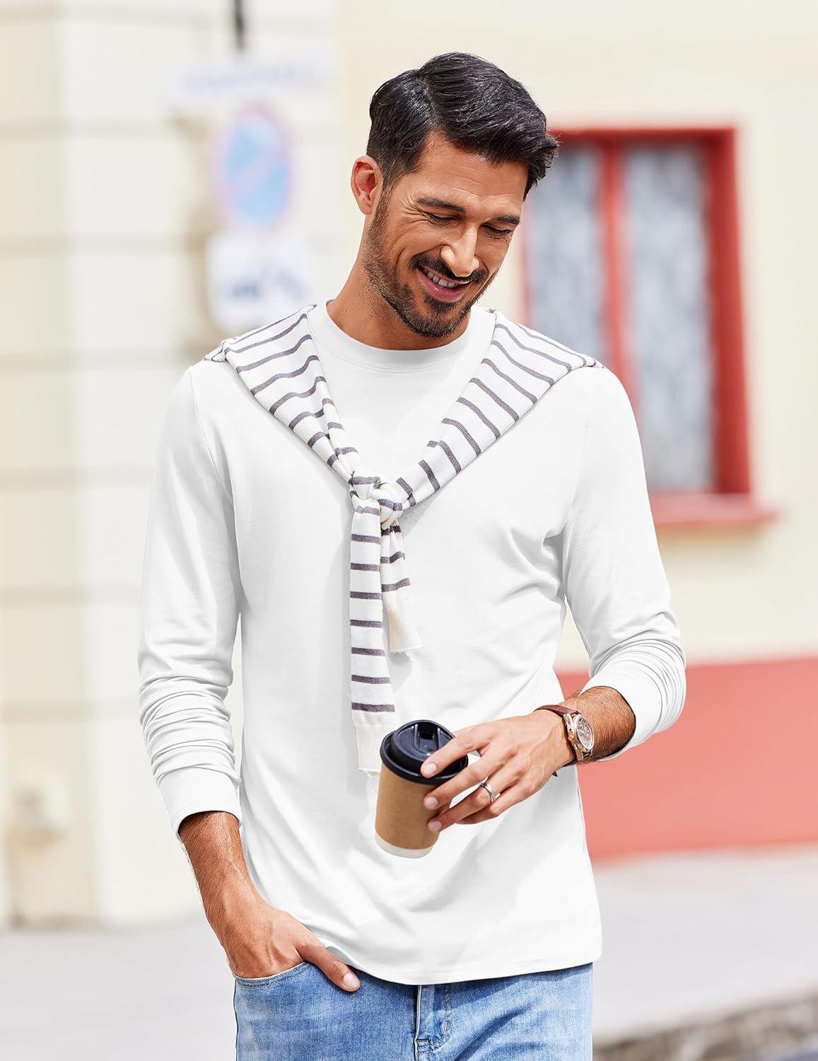 COOFANDY Mens Long Sleeve T Shirts Casual Crew Neck Tee Shirts Lightweight Soft Pullover Tops(White)