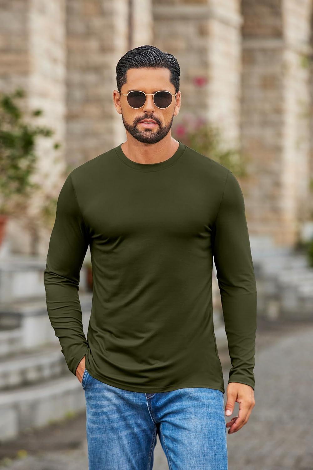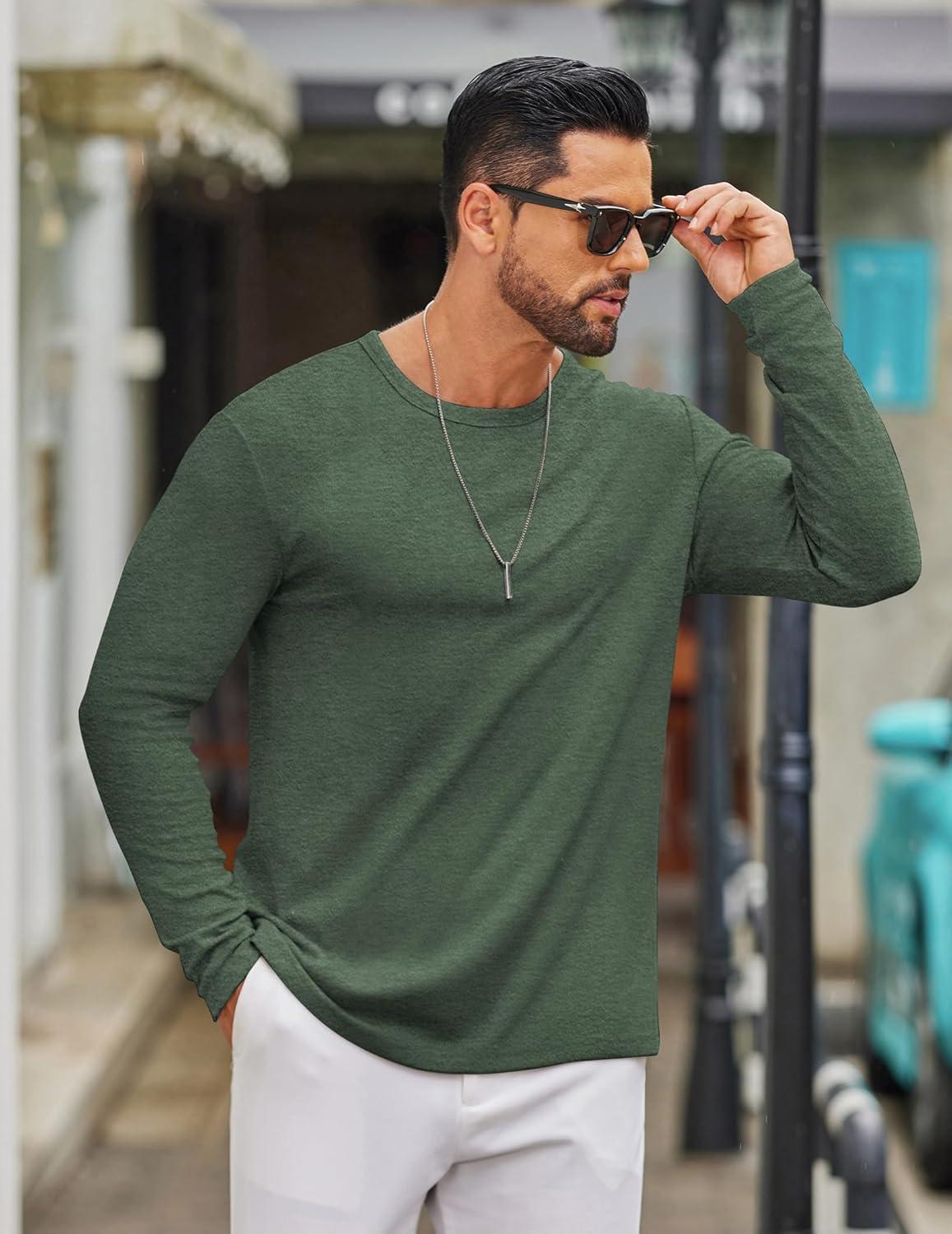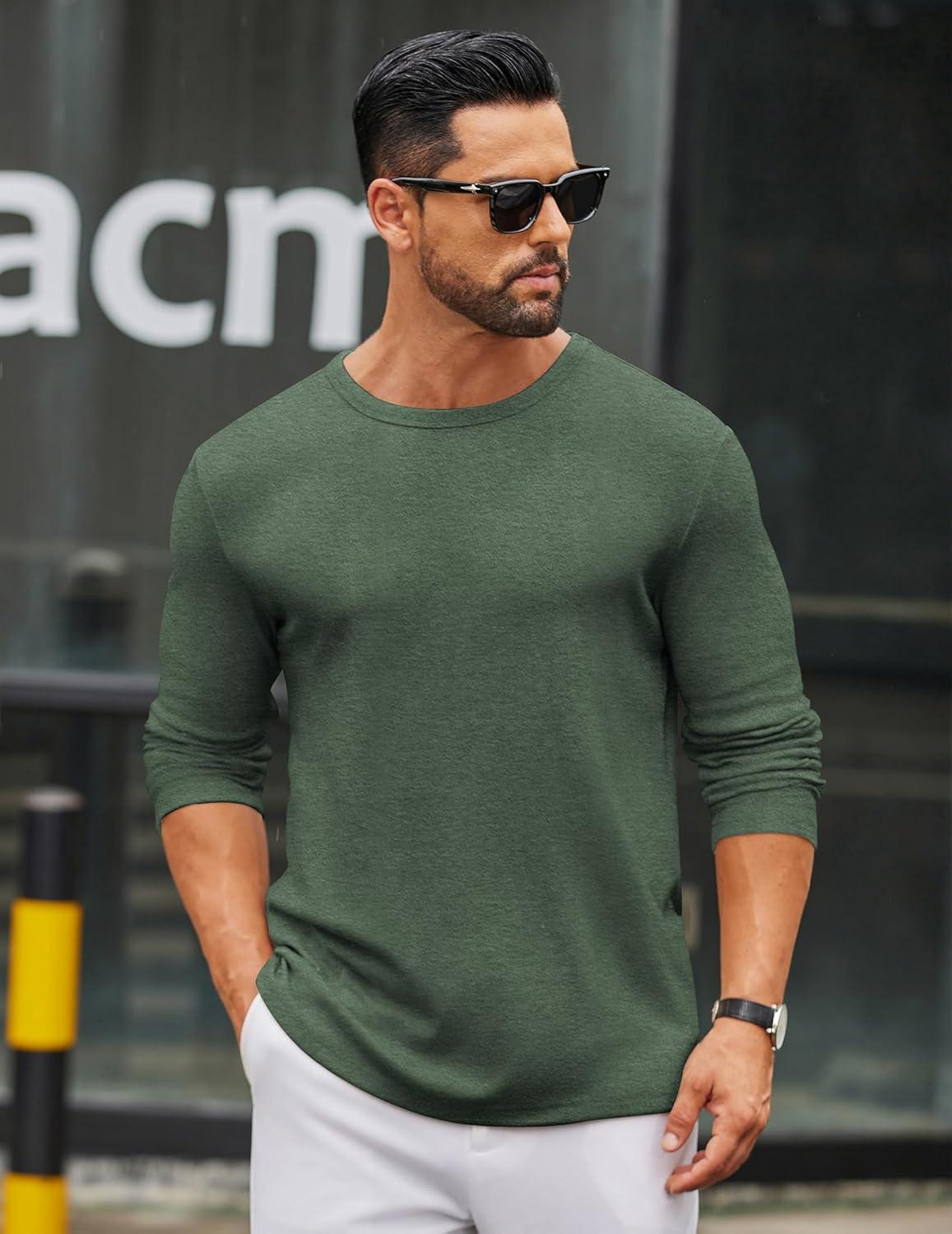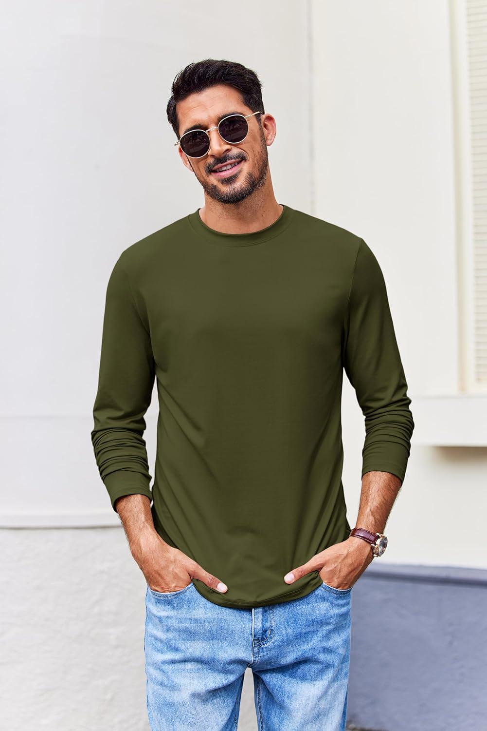 COOFANDY Mens Long Sleeve T Shirts Casual Crew Neck Tee Shirts Lightweight Soft Pullover Tops(Army Green)