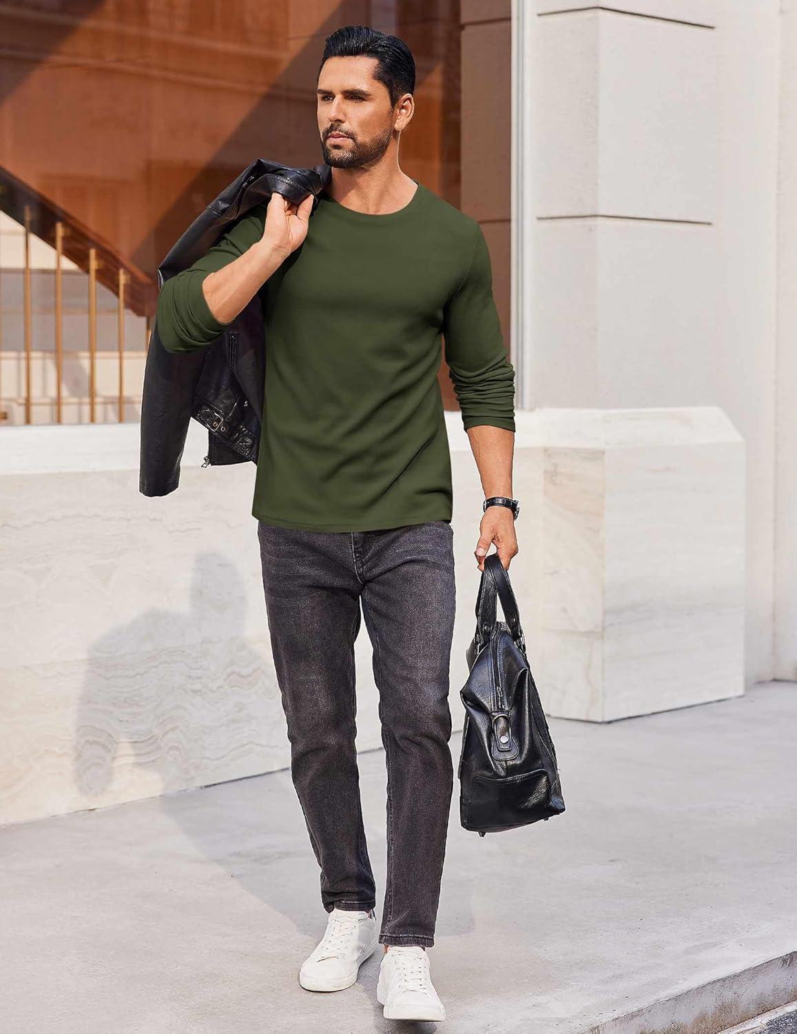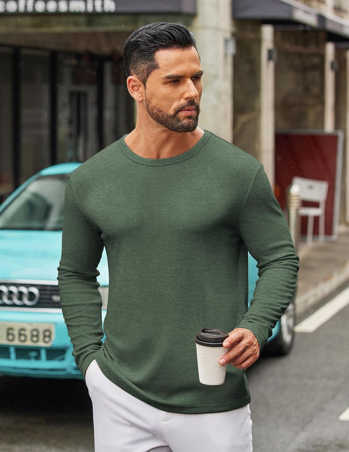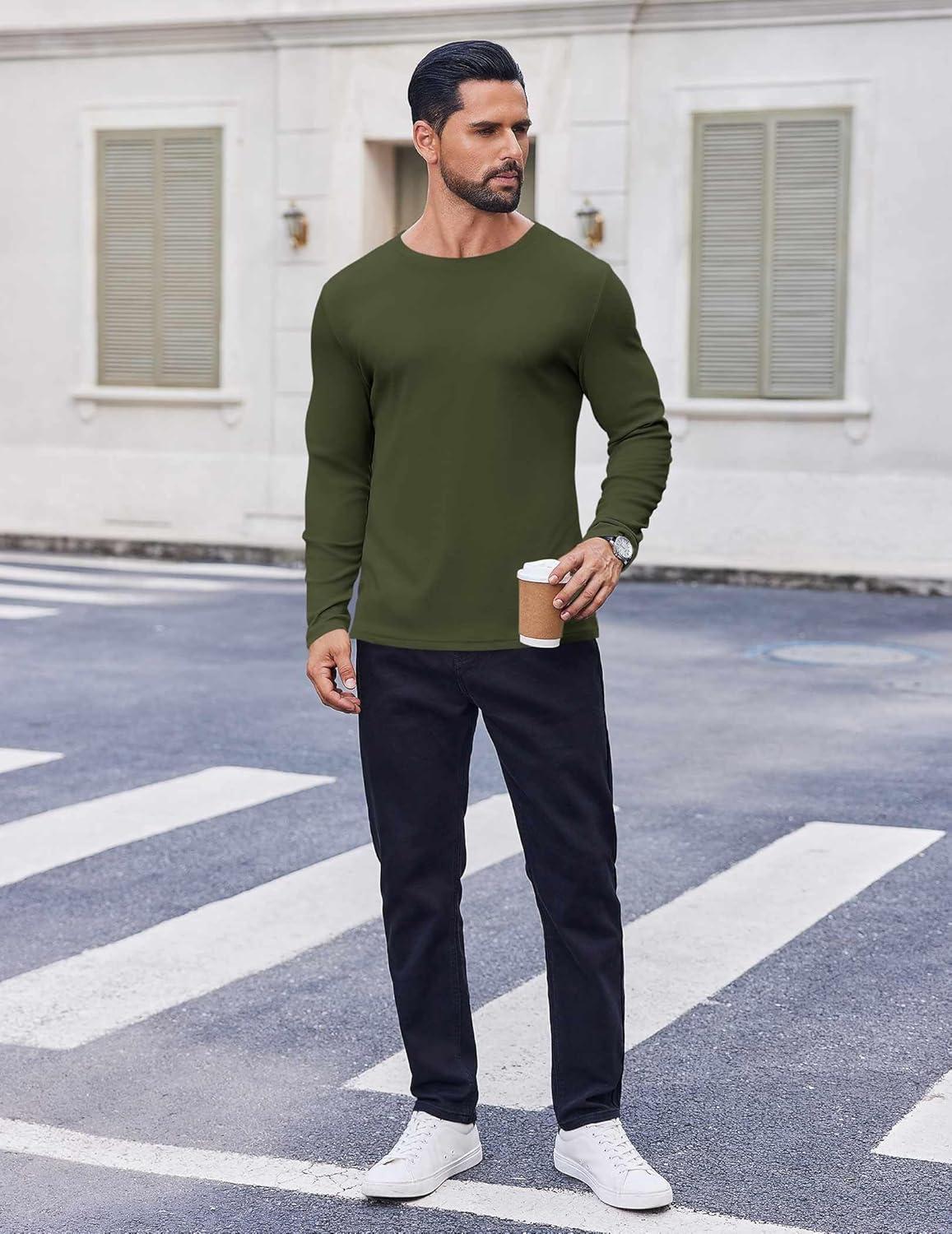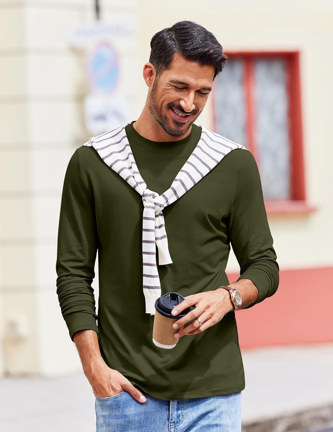 COOFANDY Mens Long Sleeve T Shirts Casual Crew Neck Tee Shirts Lightweight Soft Pullover Tops(Army Green)