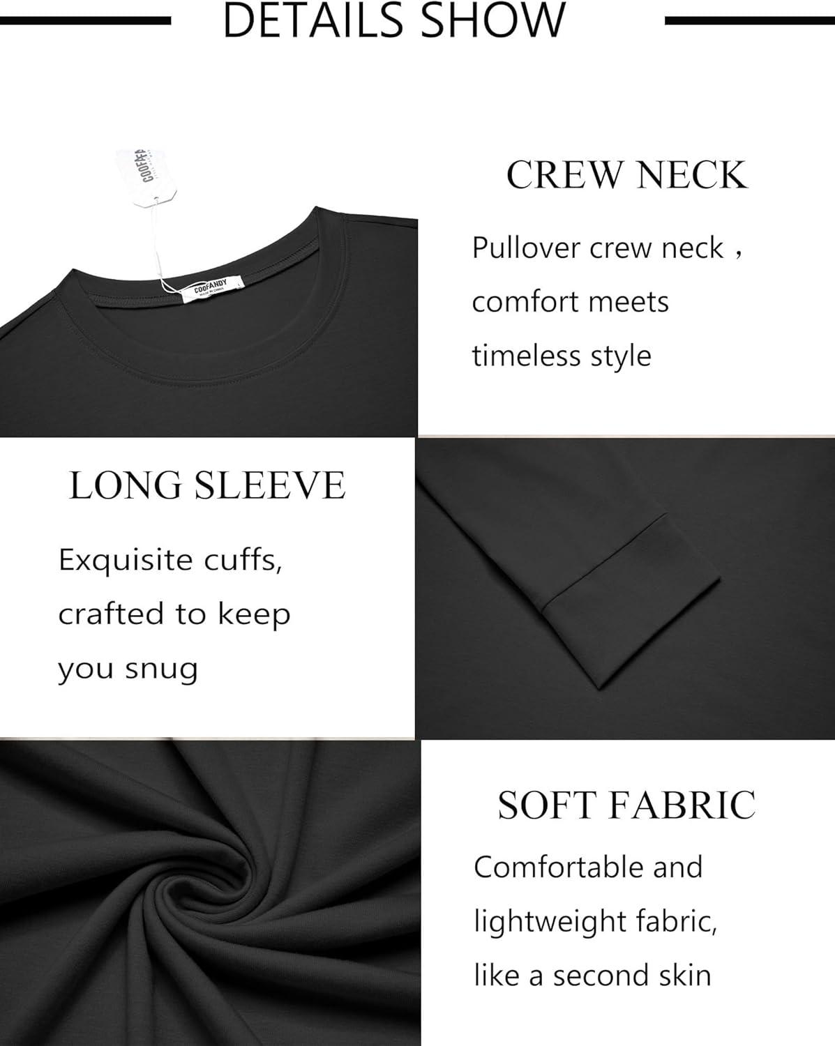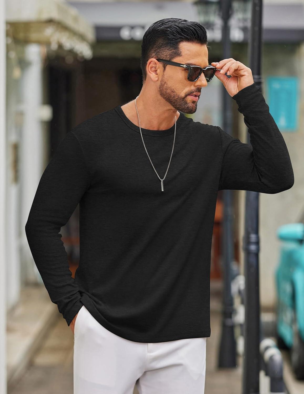 COOFANDY Mens Long Sleeve T Shirts Casual Crew Neck Tee Shirts Lightweight Soft Pullover Tops(Black)