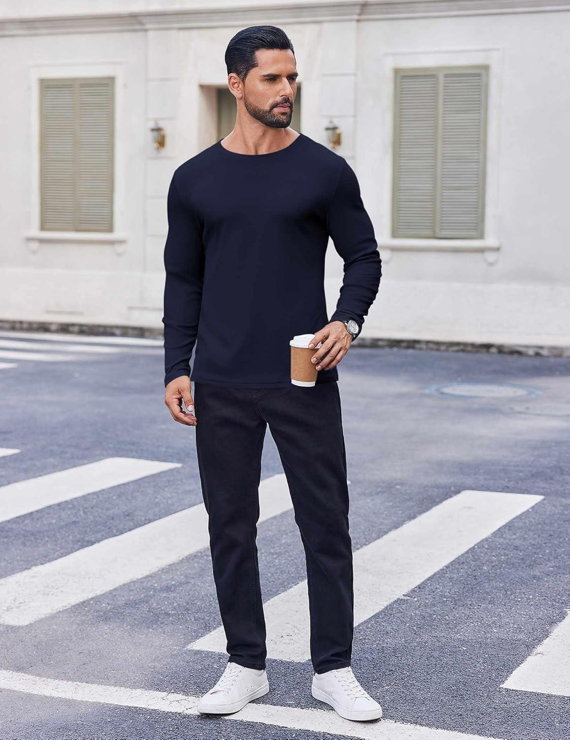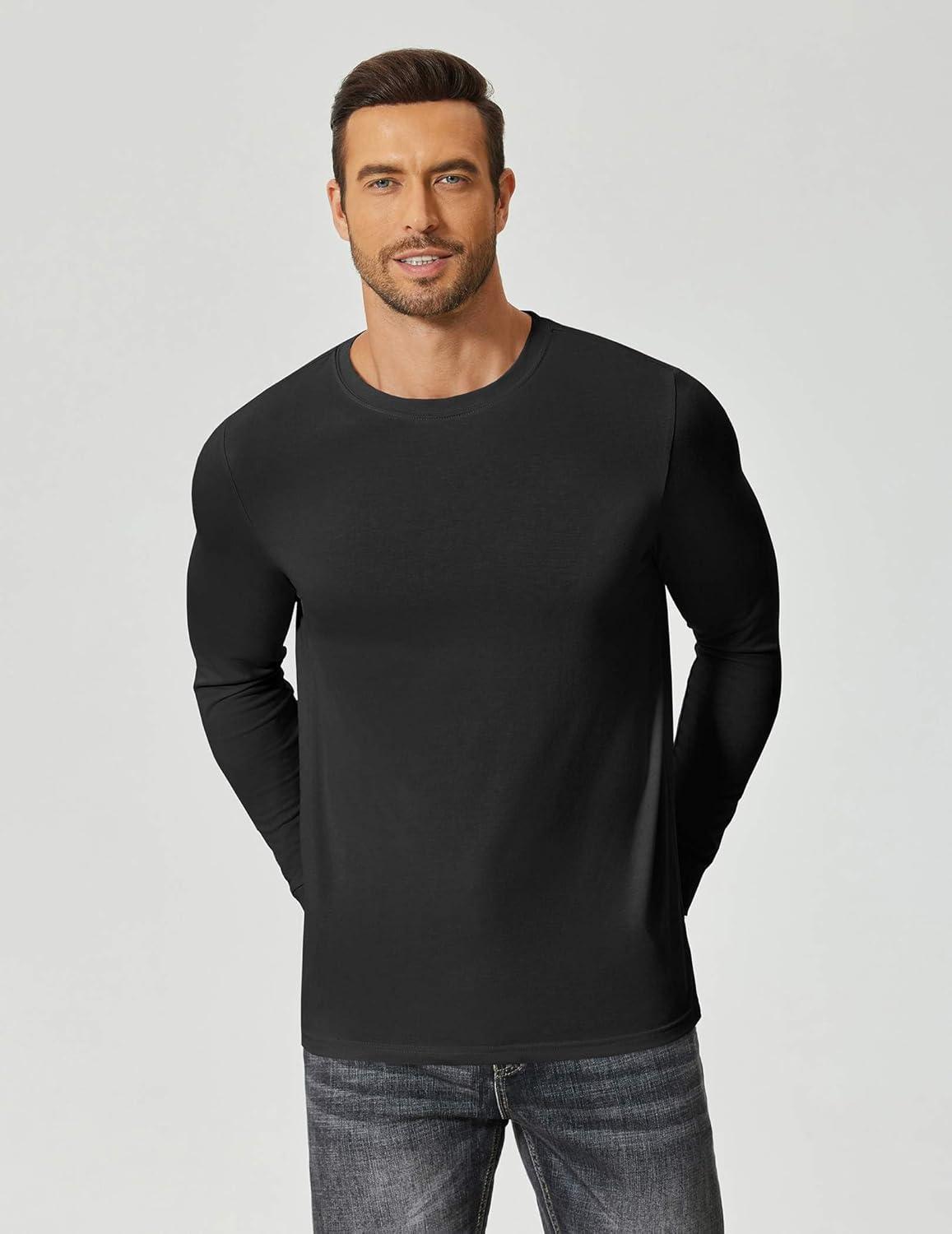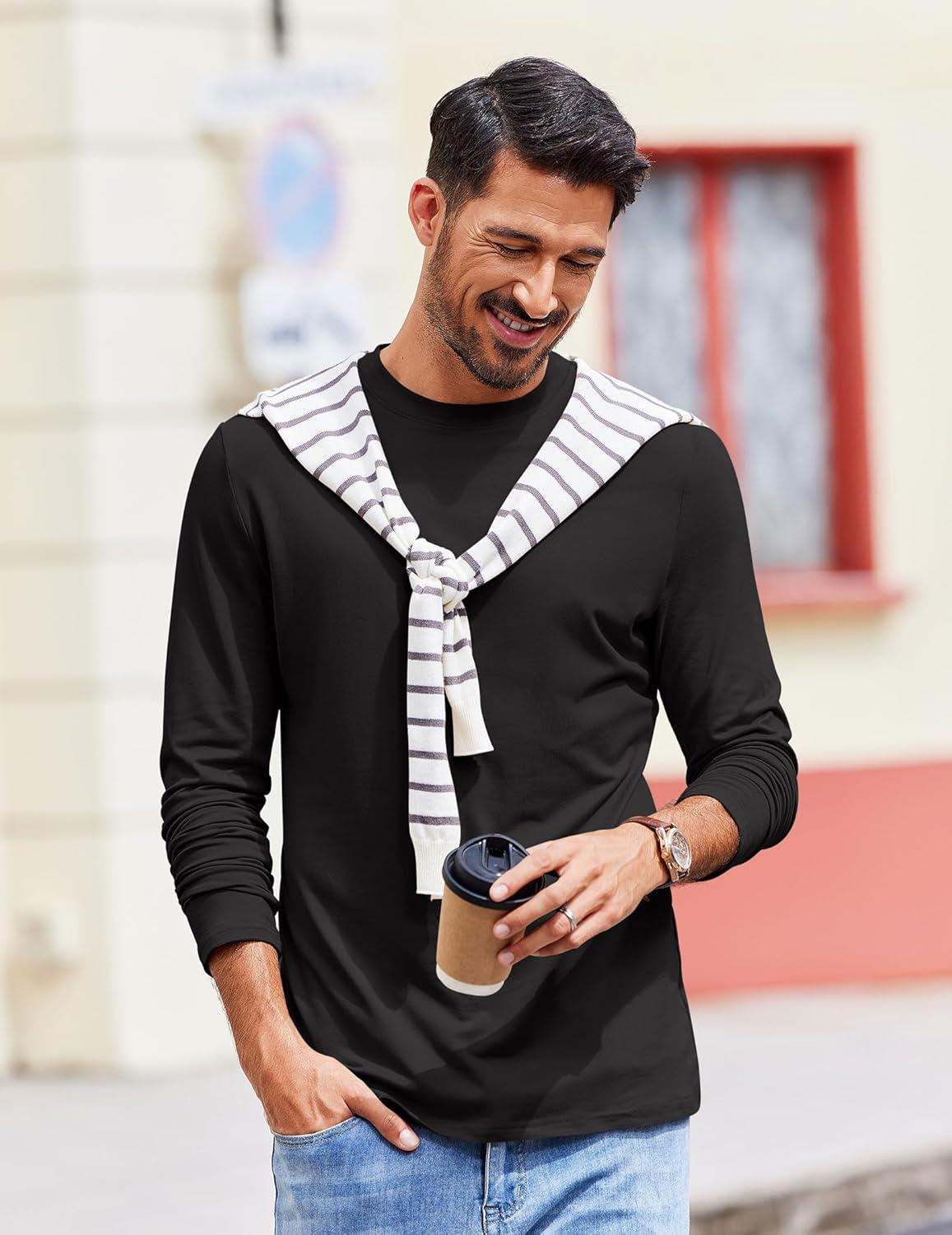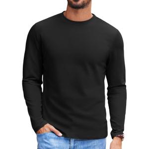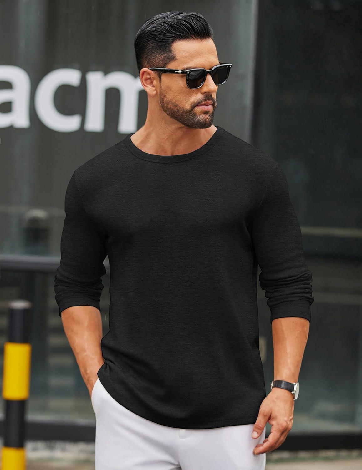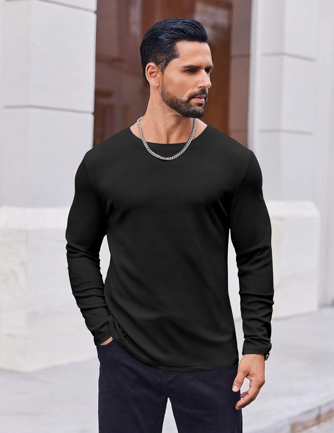 COOFANDY Men’s Long Sleeve Tee Shirts Crew Neck T-Shirt Casual Pullover Basic Tees Soft Stretch Tshirts(Black)