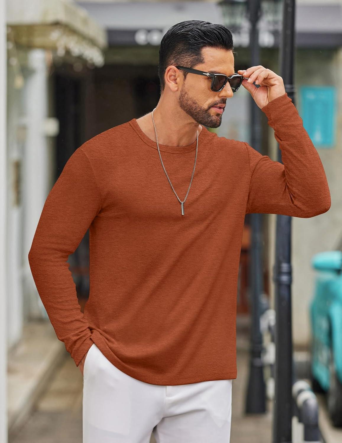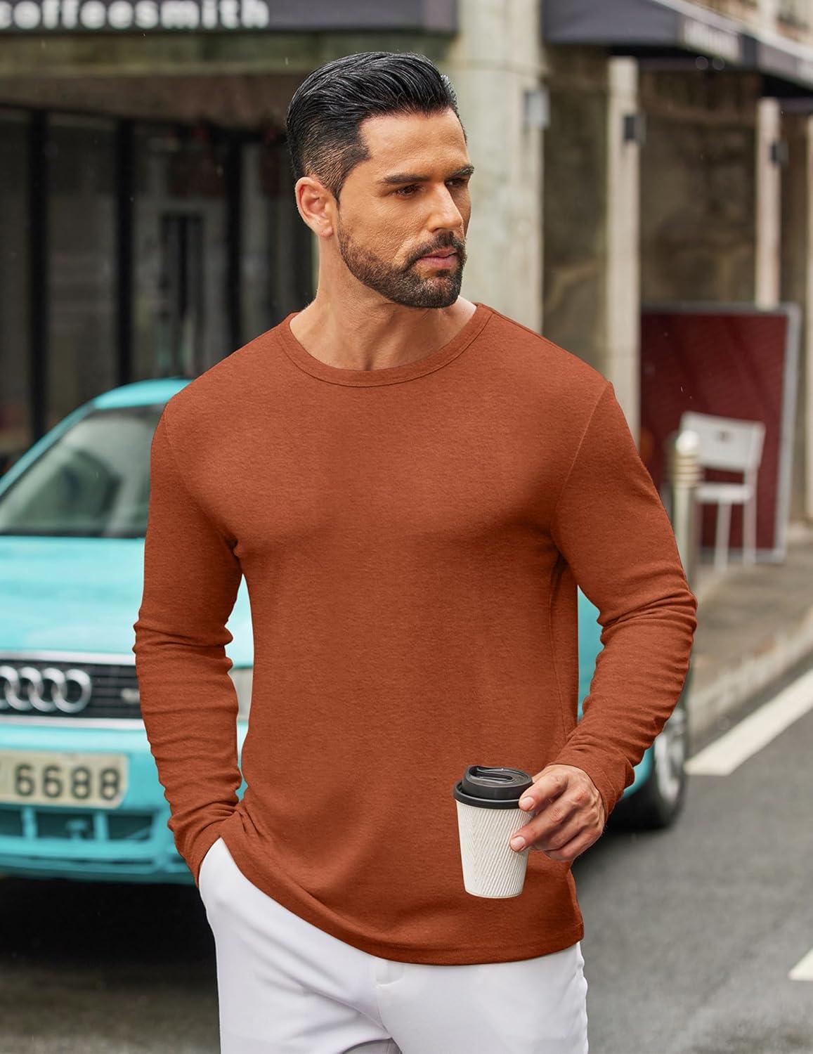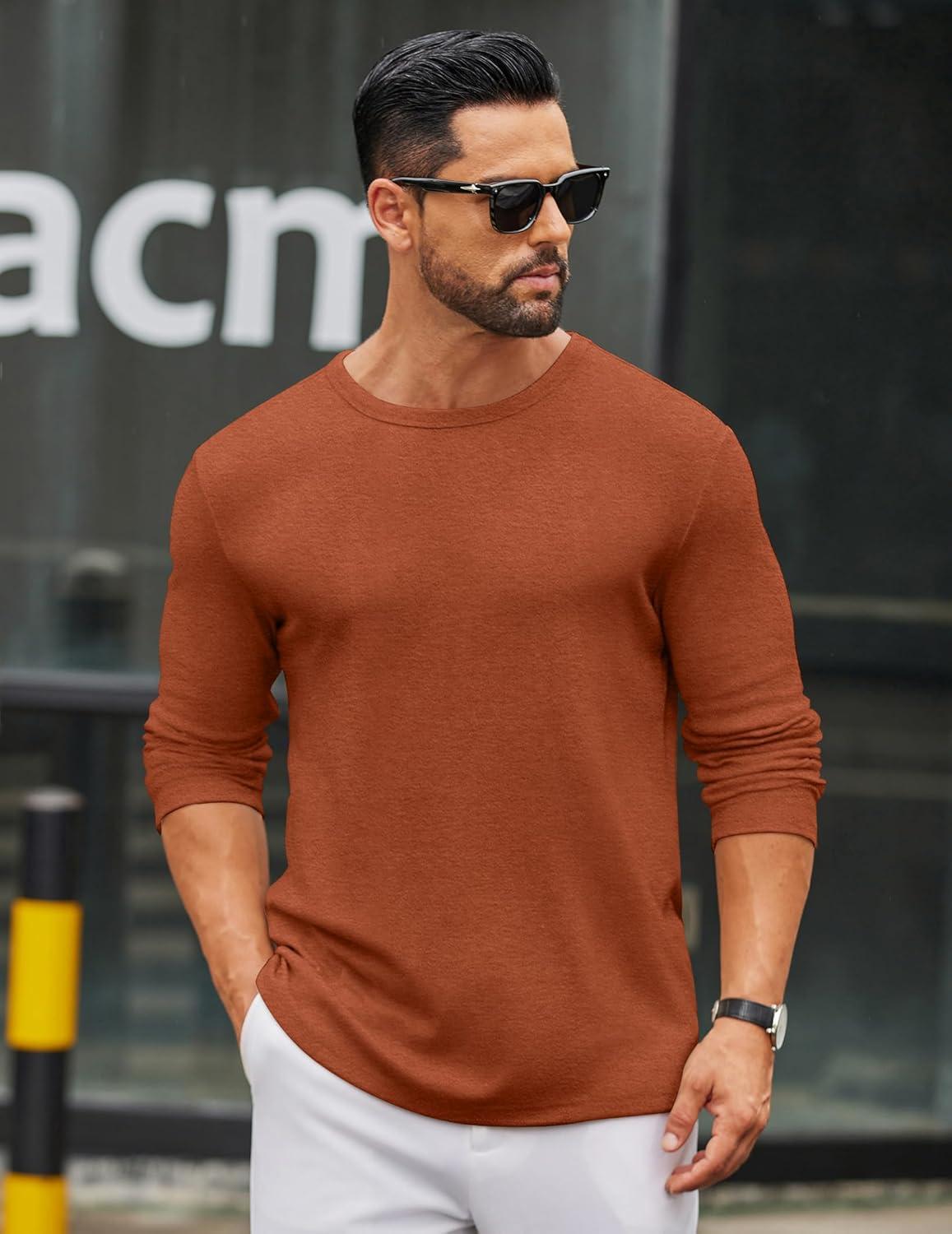 COOFANDY Men’s Long Sleeve Tee Shirts Crew Neck T Shirt Solid Casual Basic Tees Soft Stretch T-Shirts(Caramel)