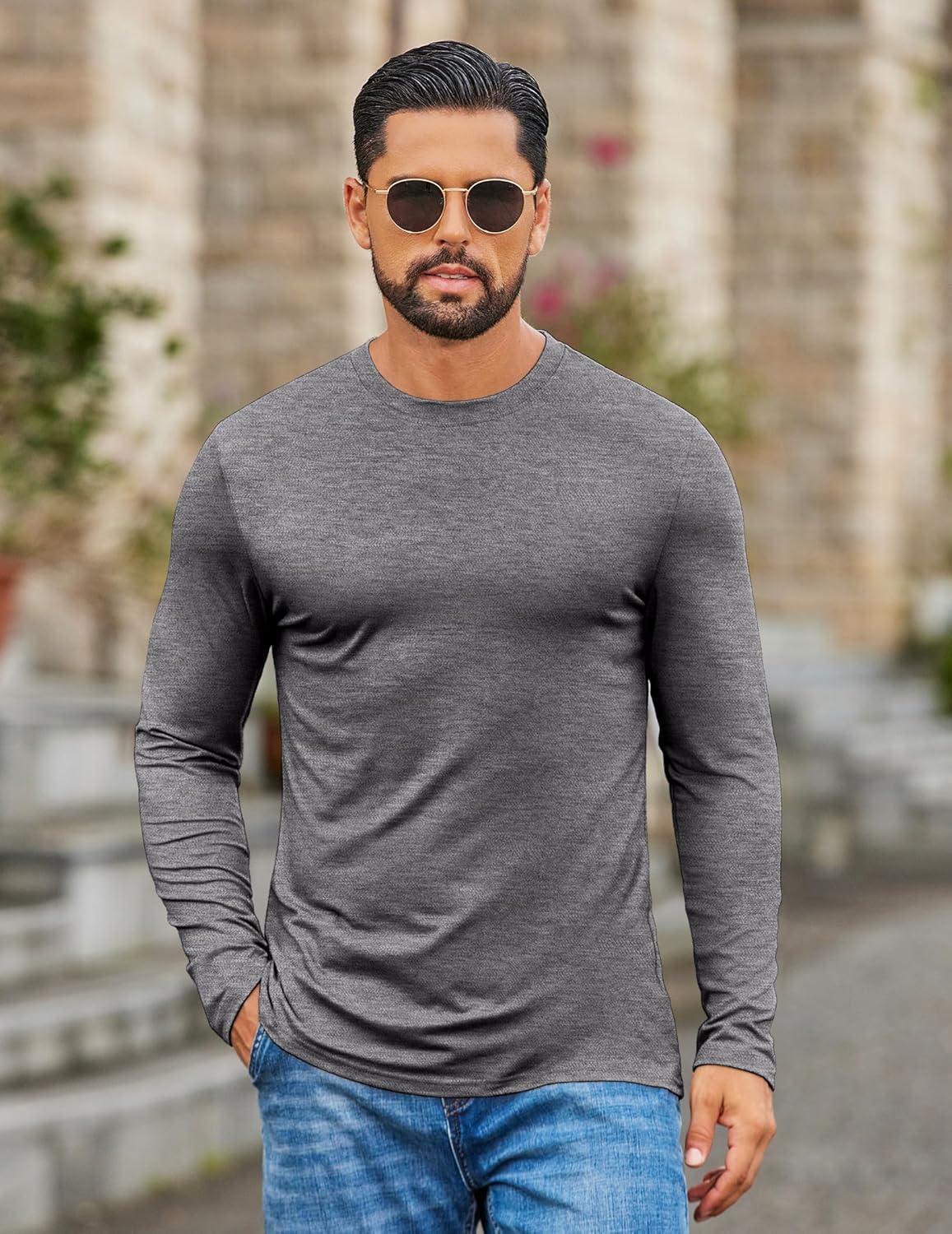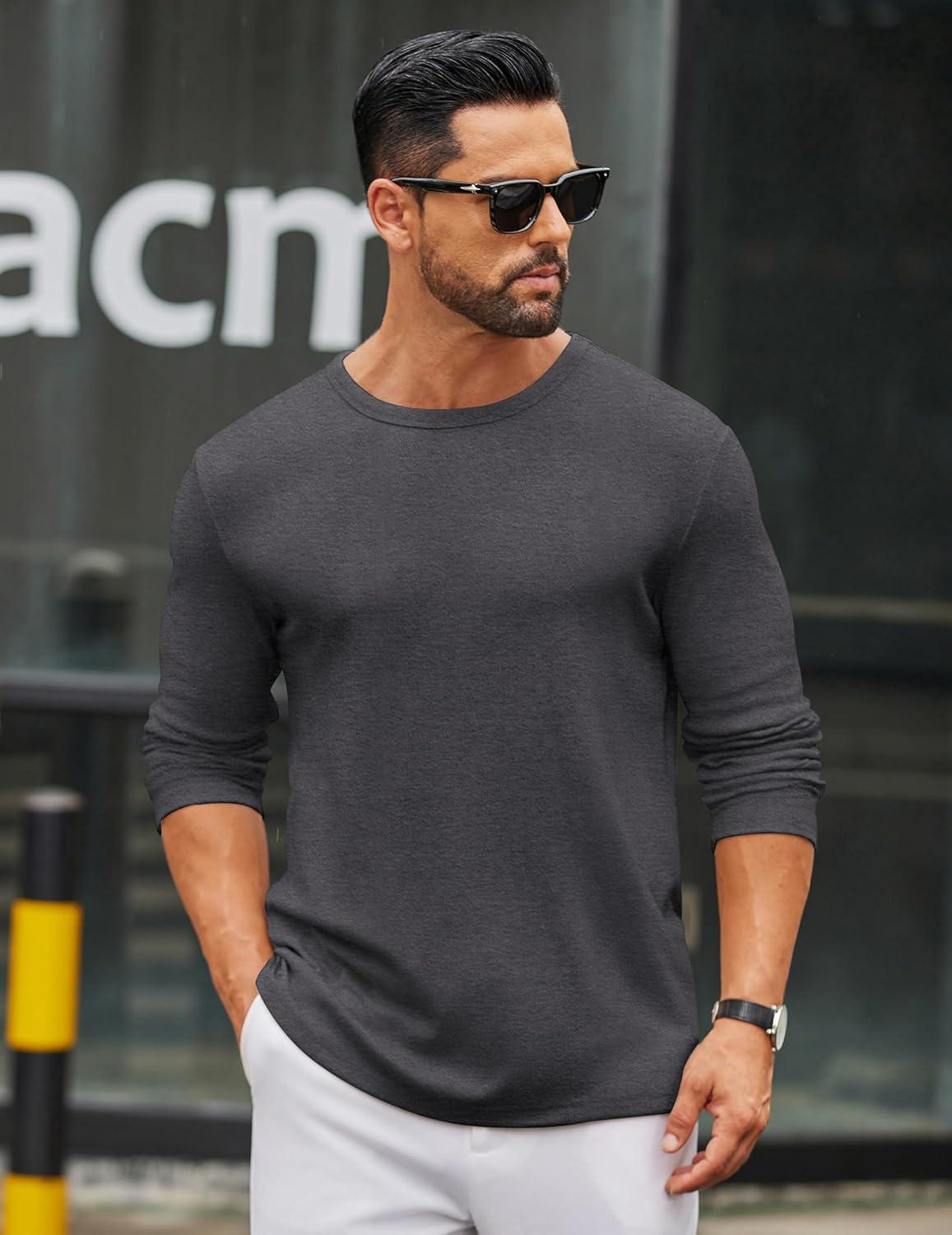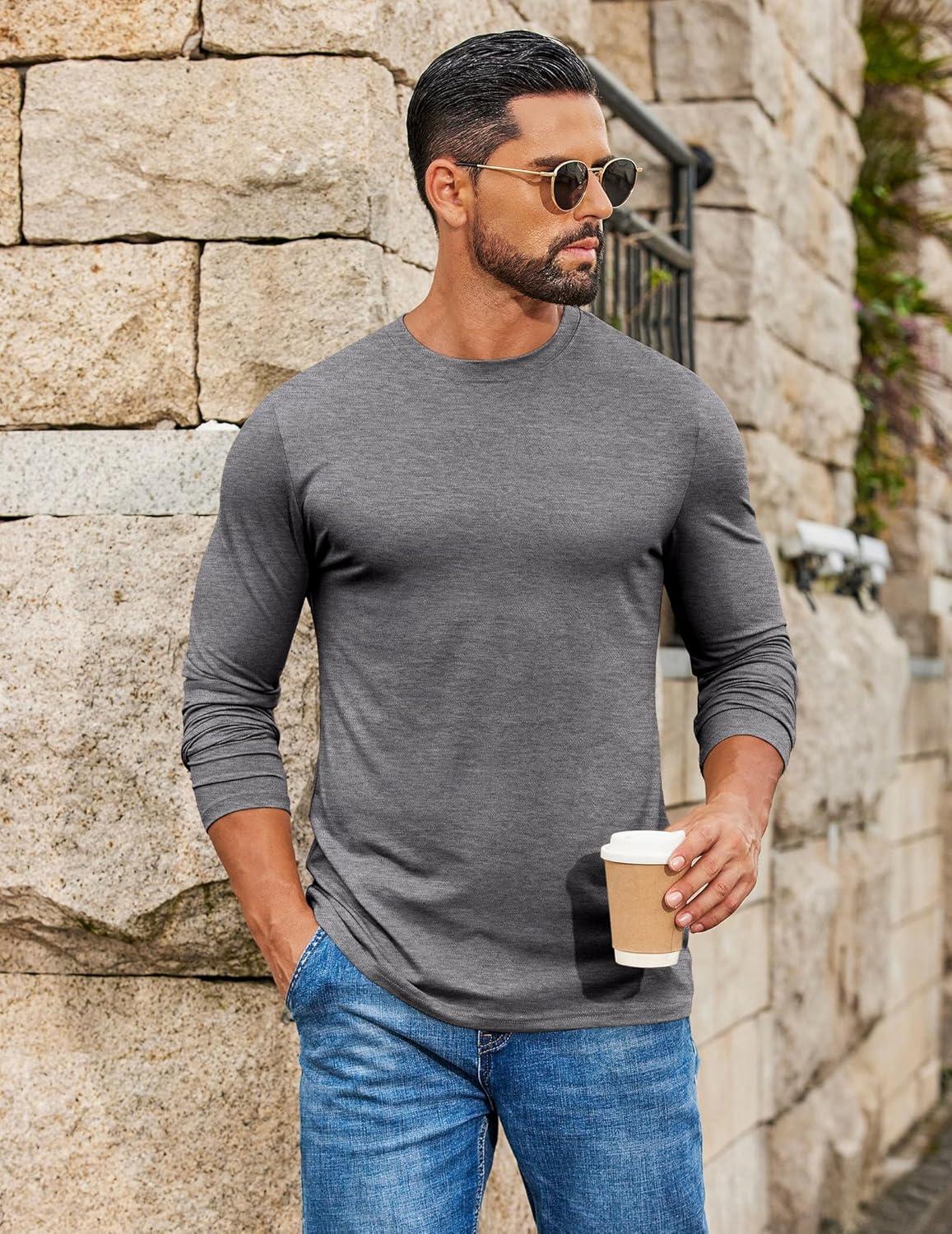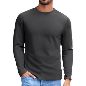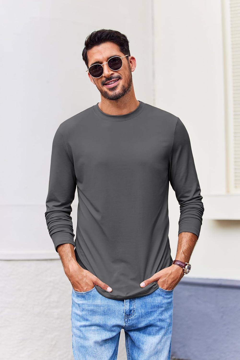 COOFANDY Men’s Long Sleeve Tee Shirts Crew Neck T Shirt Solid Casual Basic Tees Soft Stretch T-Shirts(Dark Grey)
