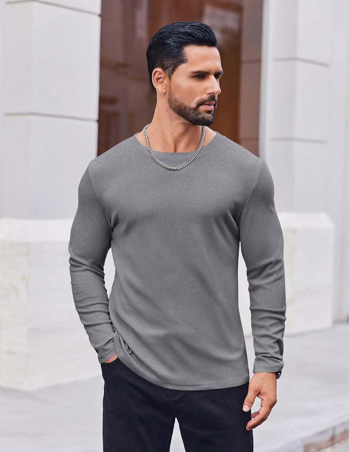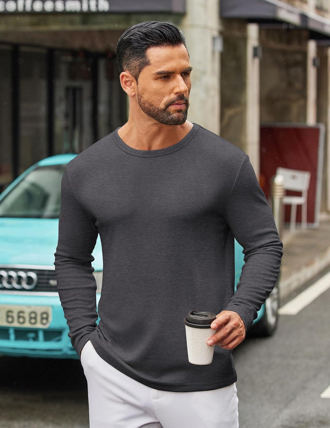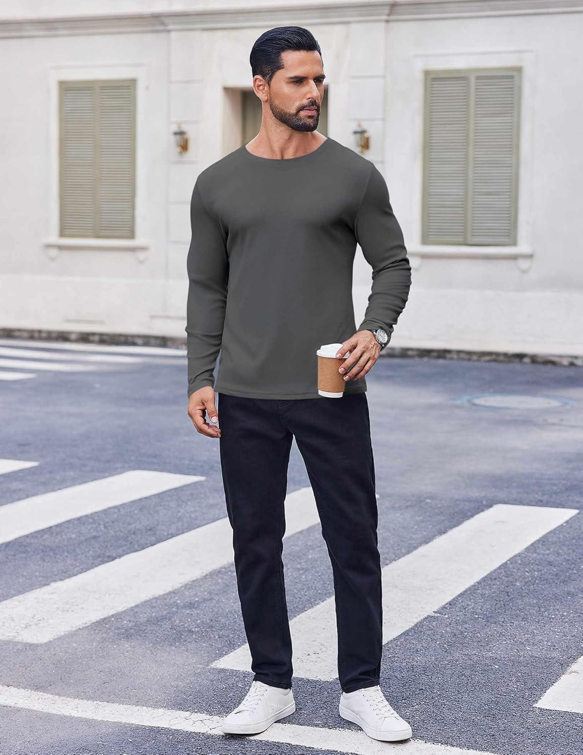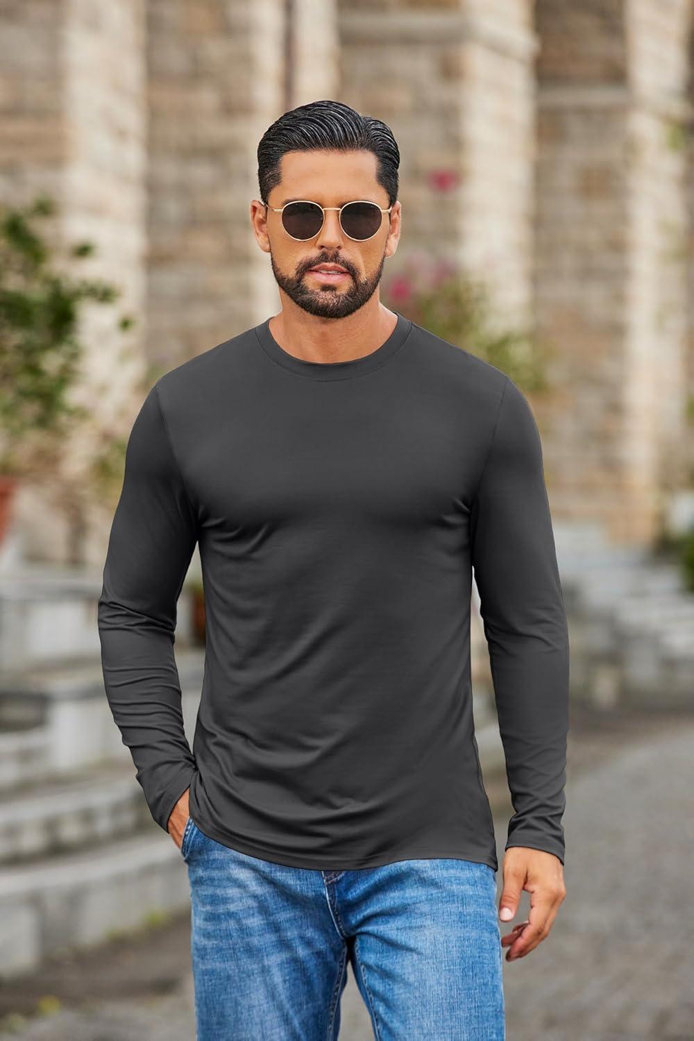 COOFANDY Men’s Long Sleeve Tee Shirts Crew Neck T Shirt Solid Casual Basic Tees Soft Stretch T-Shirts(Dark Grey)