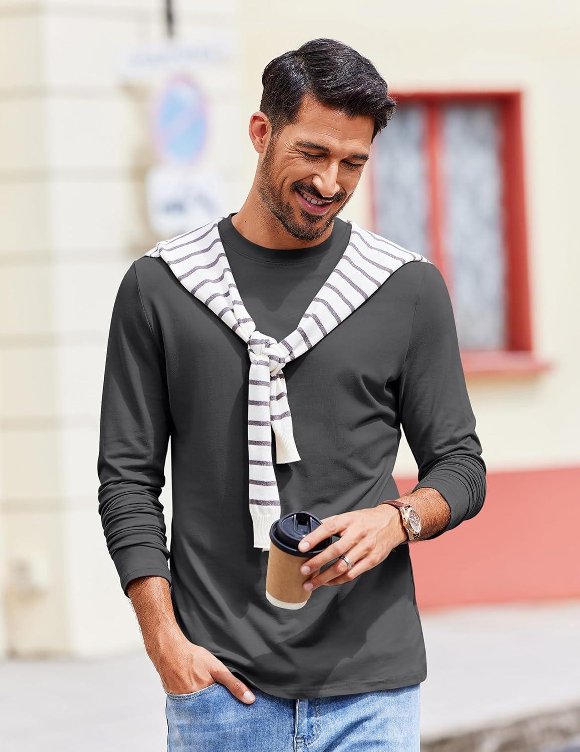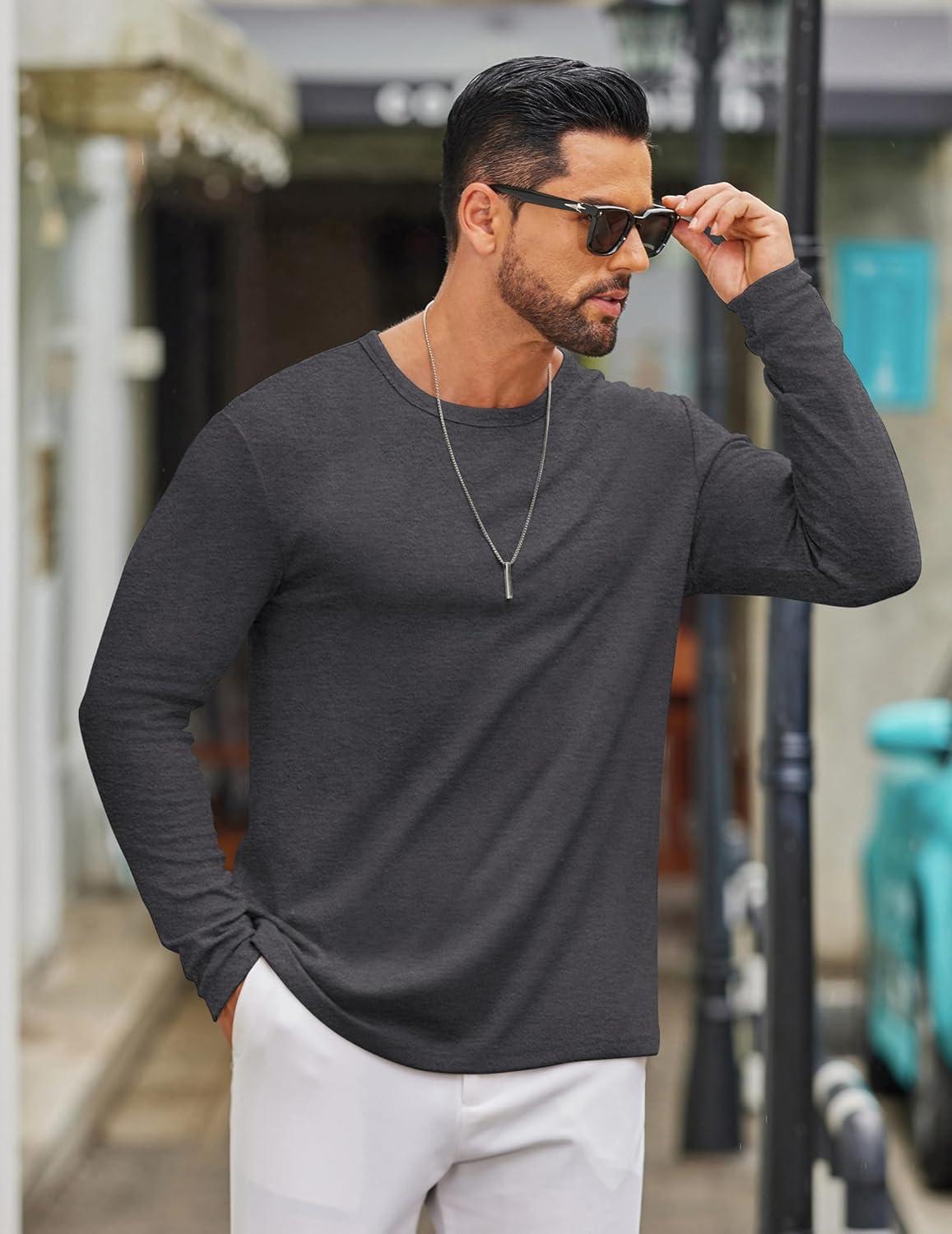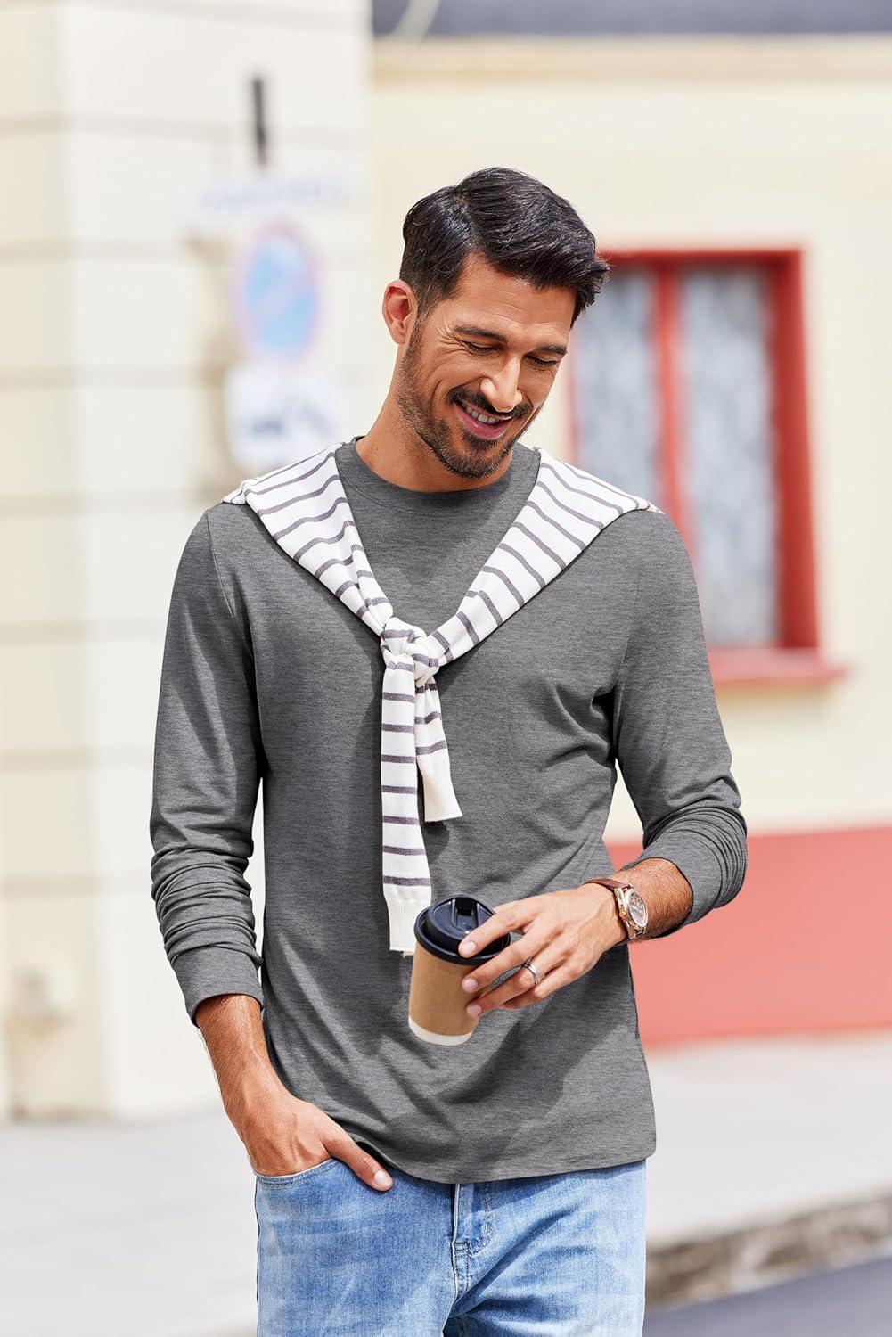 COOFANDY Mens Long Sleeve T Shirts Casual Crew Neck Tee Shirts Lightweight Soft Pullover Tops(Dark Grey)