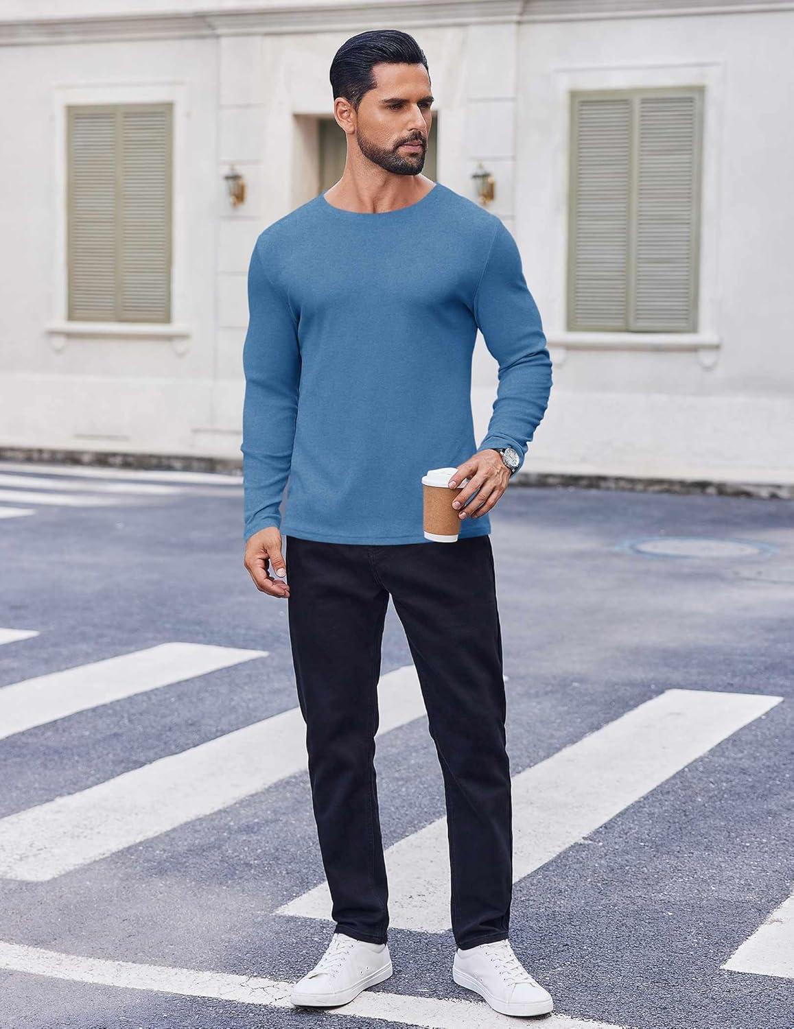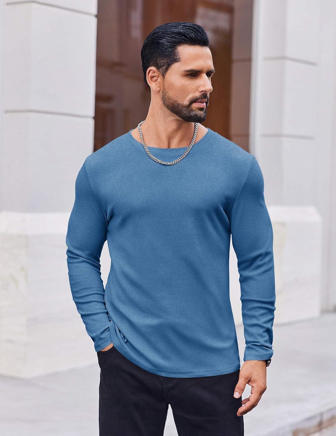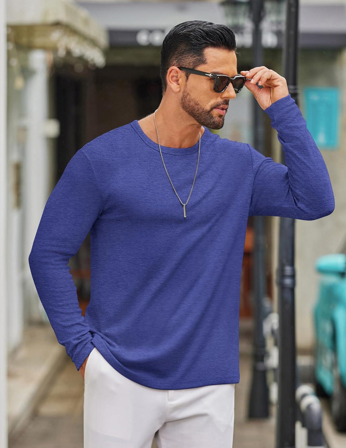 COOFANDY Men’s Long Sleeve Tee Shirts Crew Neck T Shirt Solid Casual Basic Tees Soft Stretch T-Shirts(Blue)
