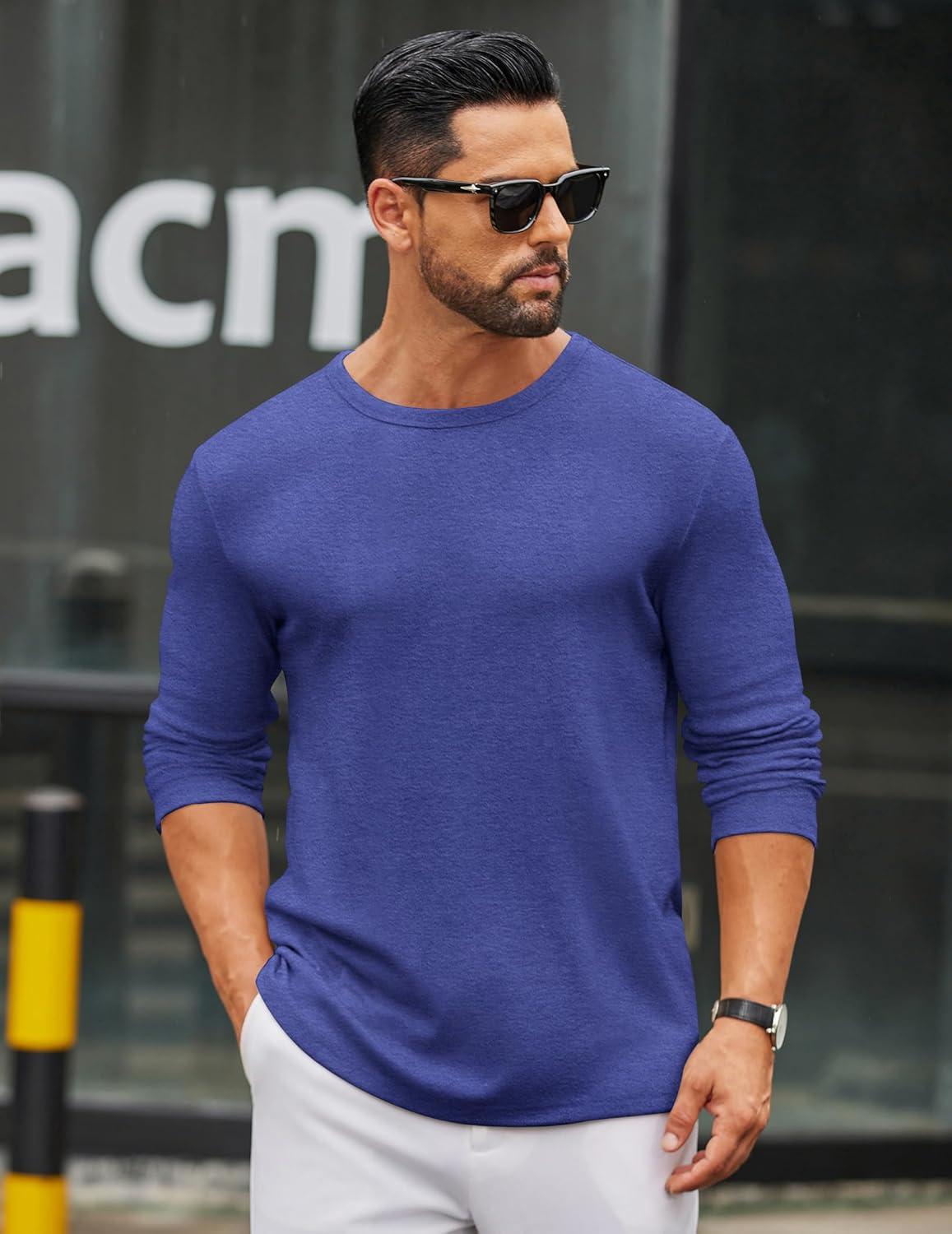 COOFANDY Men’s Long Sleeve Tee Shirts Crew Neck T-Shirt Casual Pullover Basic Tees Soft Stretch Tshirts(Blue)