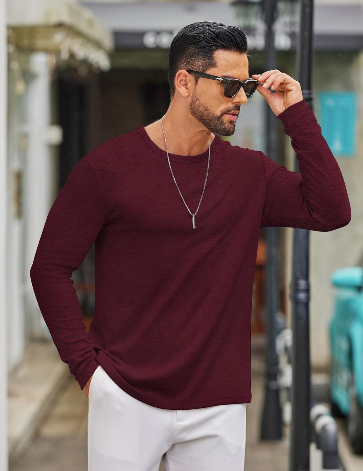 COOFANDY Mens Long Sleeve T Shirts Casual Crew Neck Tee Shirts Lightweight Soft Pullover Tops(Wine Red)