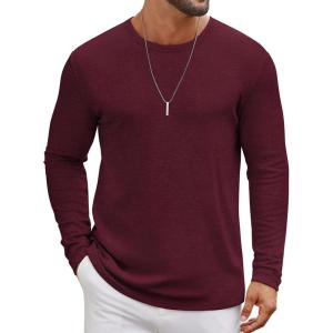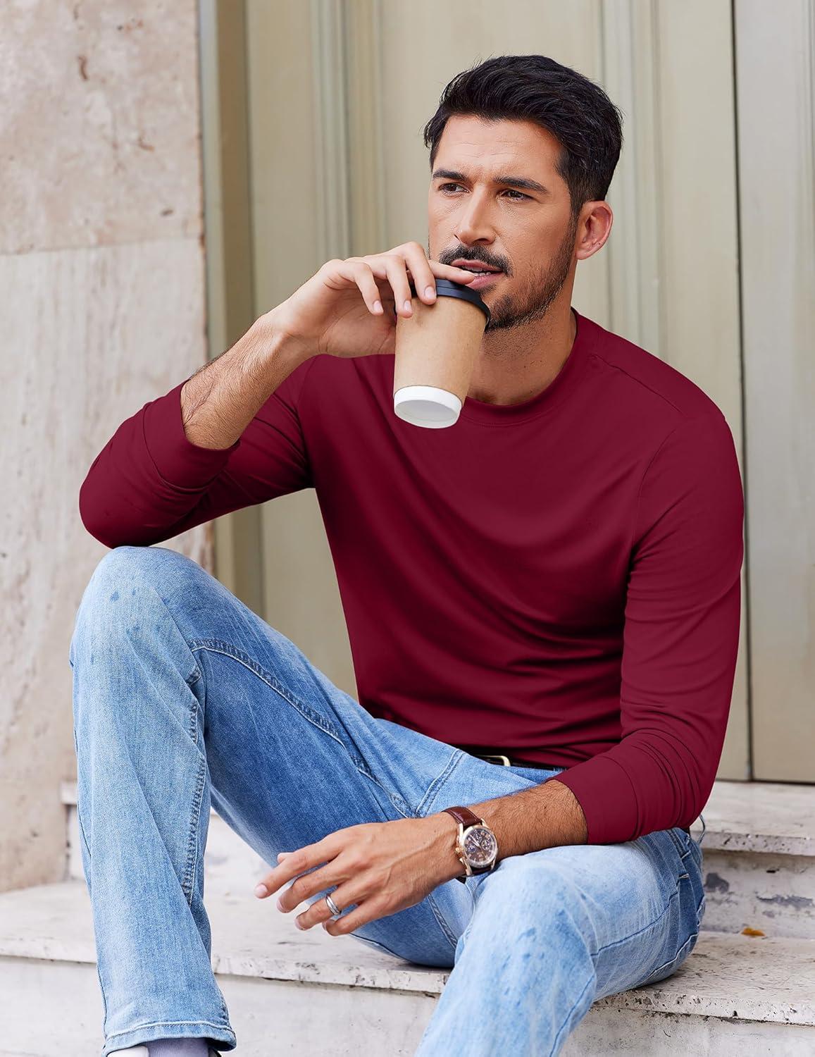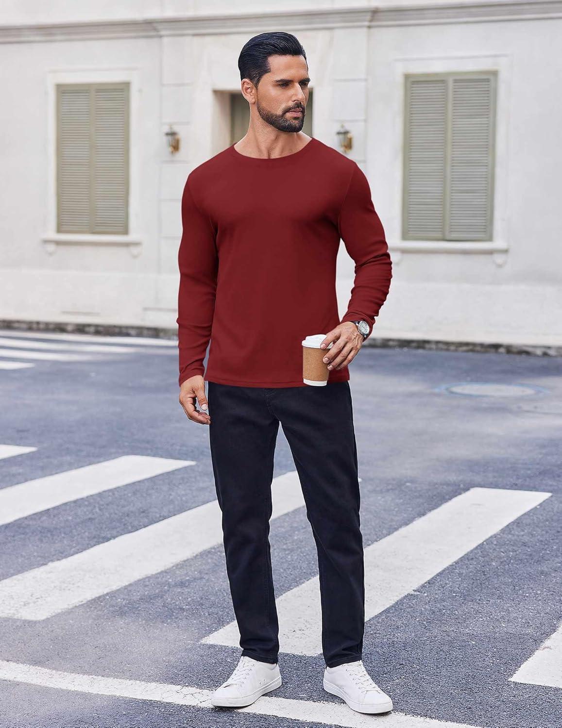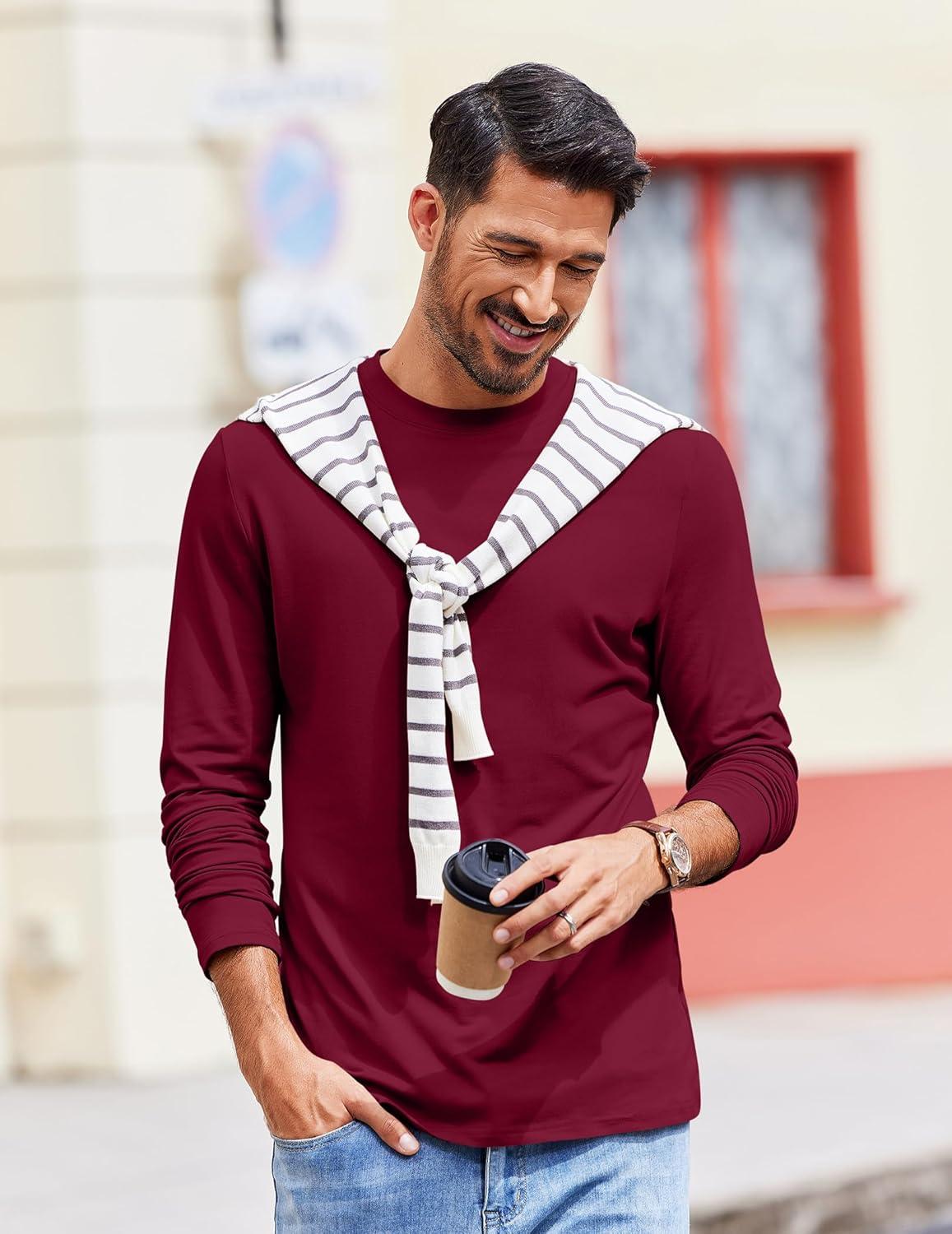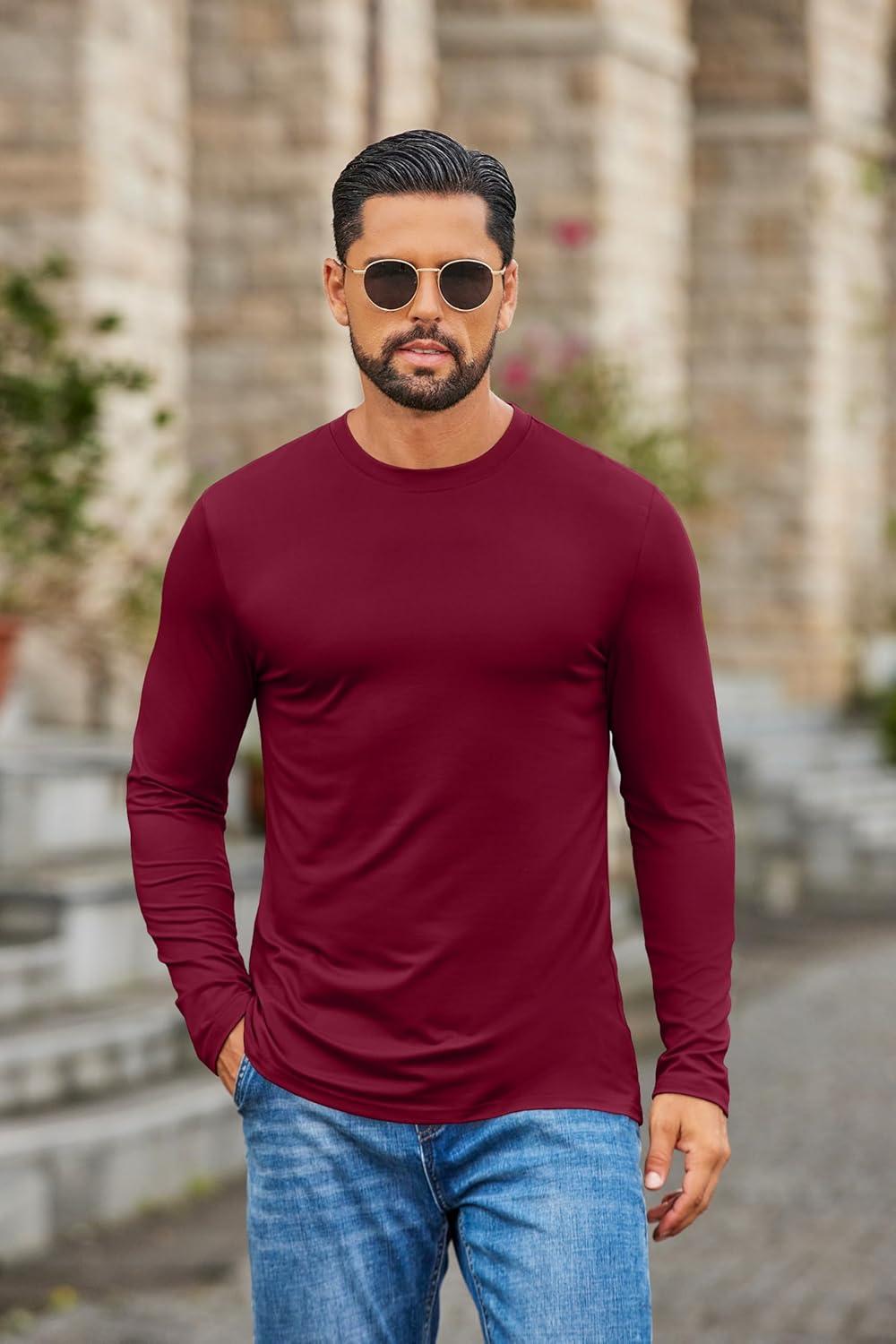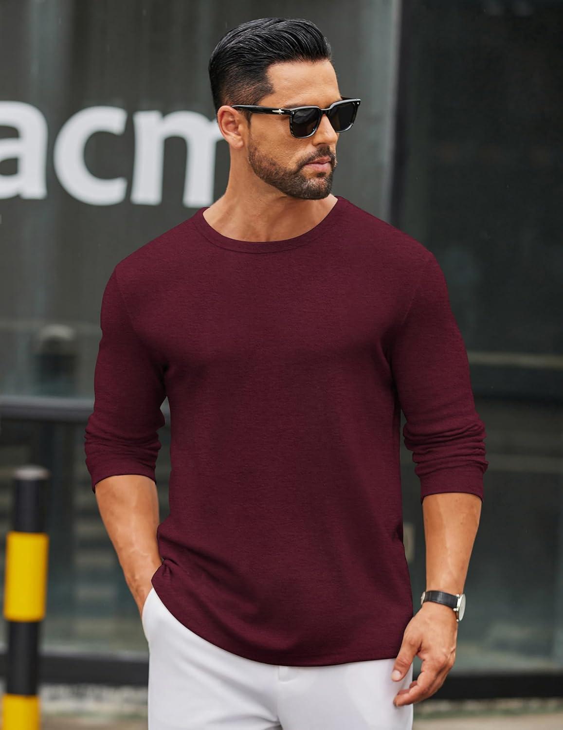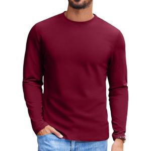 COOFANDY Men’s Long Sleeve Tee Shirts Crew Neck T-Shirt Casual Pullover Basic Tees Soft Stretch Tshirts(Wine Red)