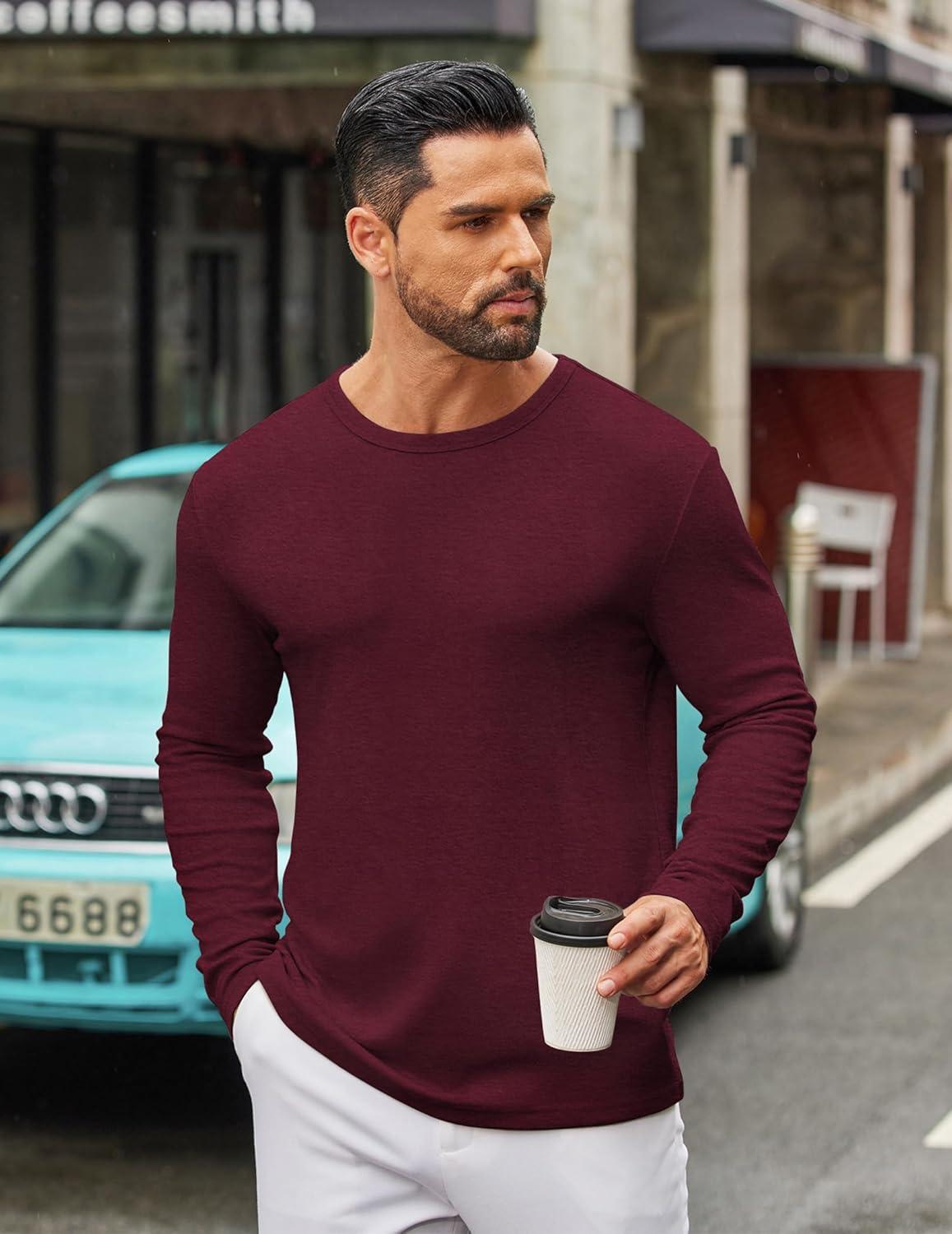 COOFANDY Mens Long Sleeve Tee Shirts Stretch Crew Neck Thermal Shirts Casual T Shirts for Men(Wine Red)