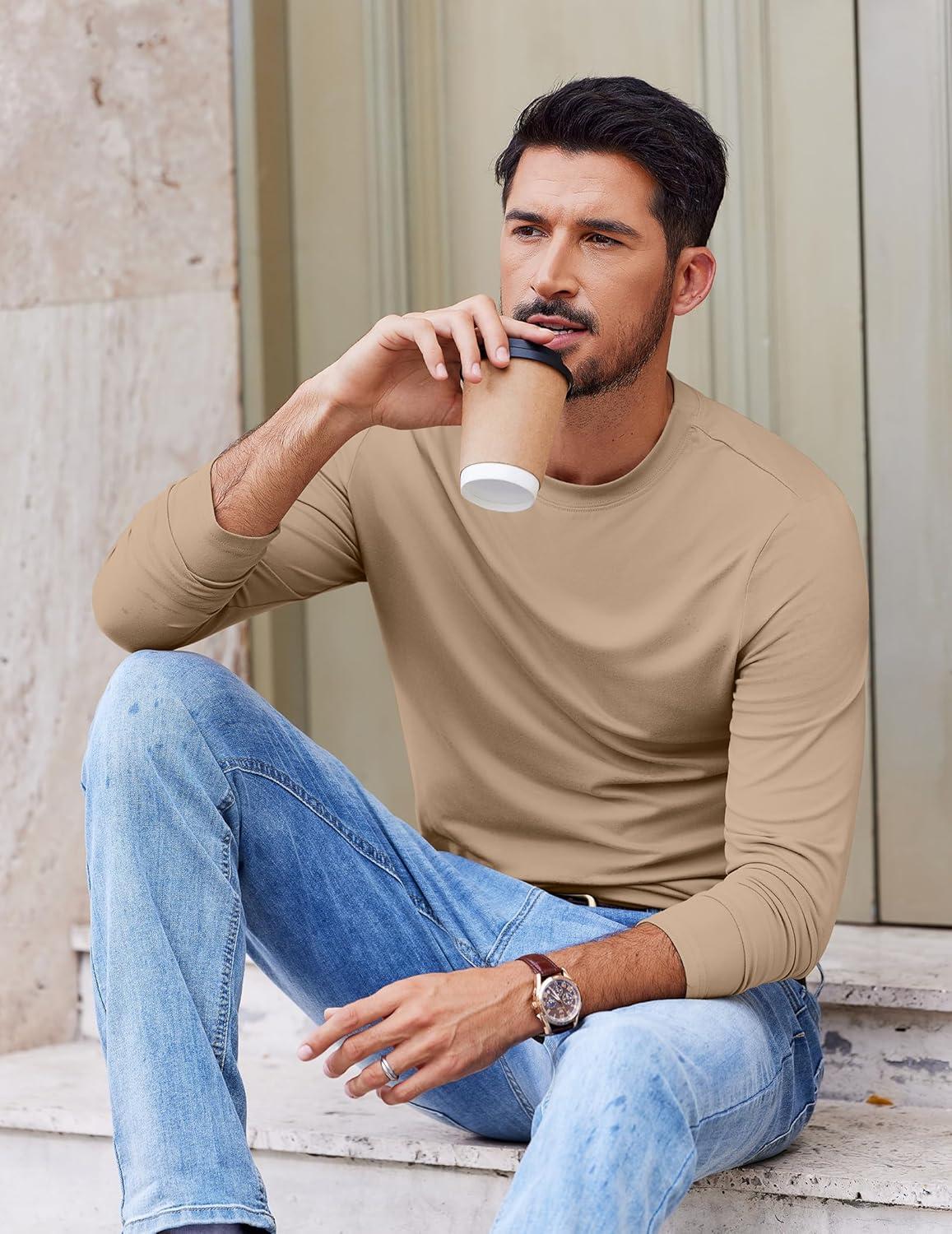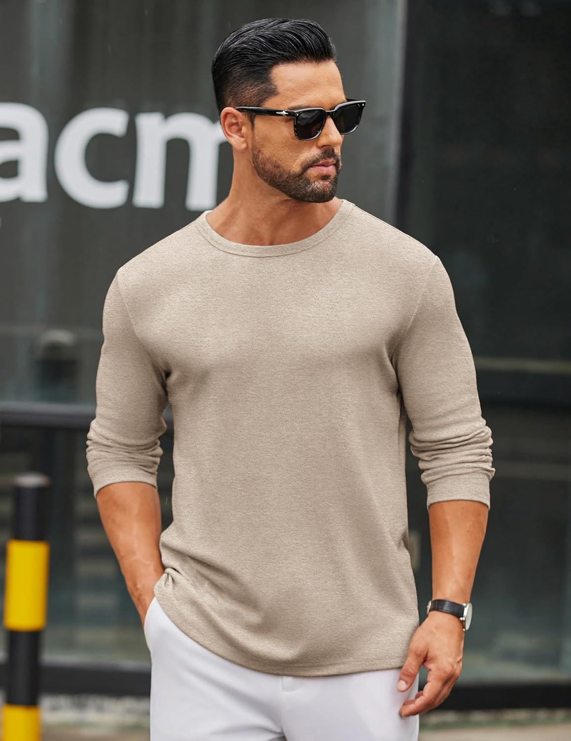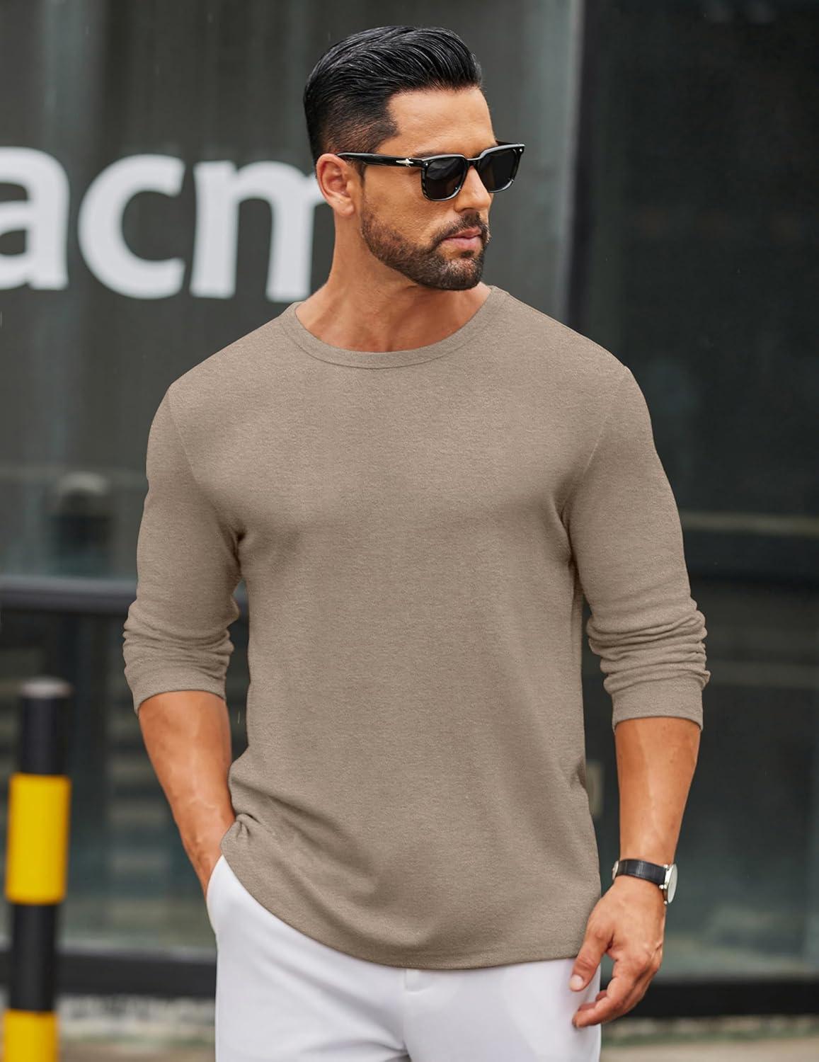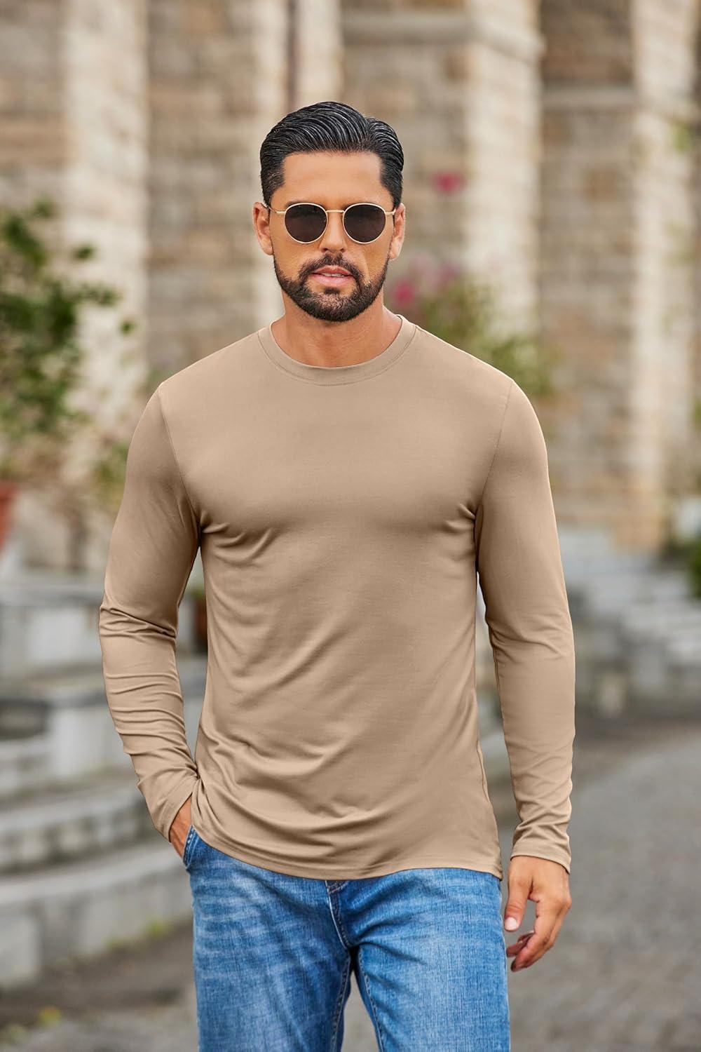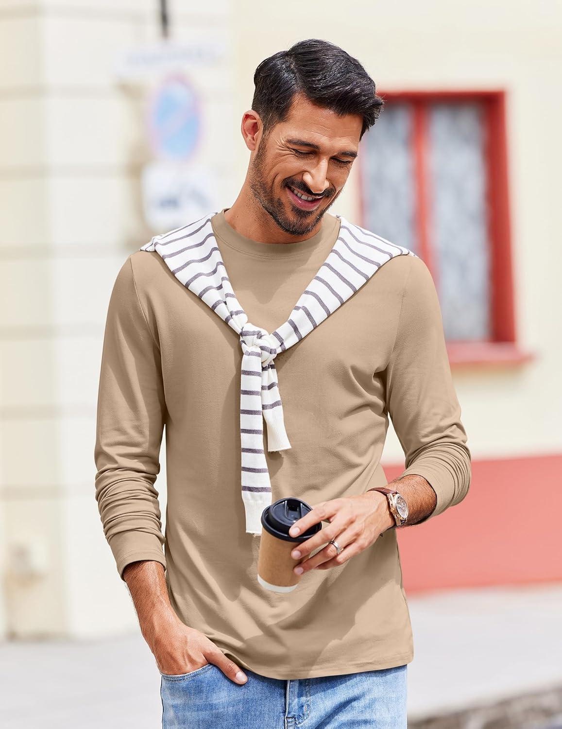 COOFANDY Men’s Long Sleeve Tee Shirts Crew Neck T Shirt Solid Casual Basic Tees Soft Stretch T-Shirts(Khaki)