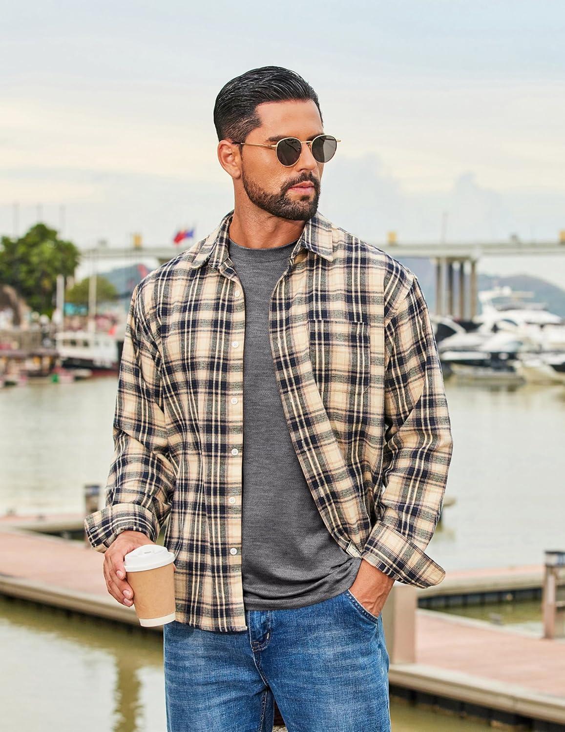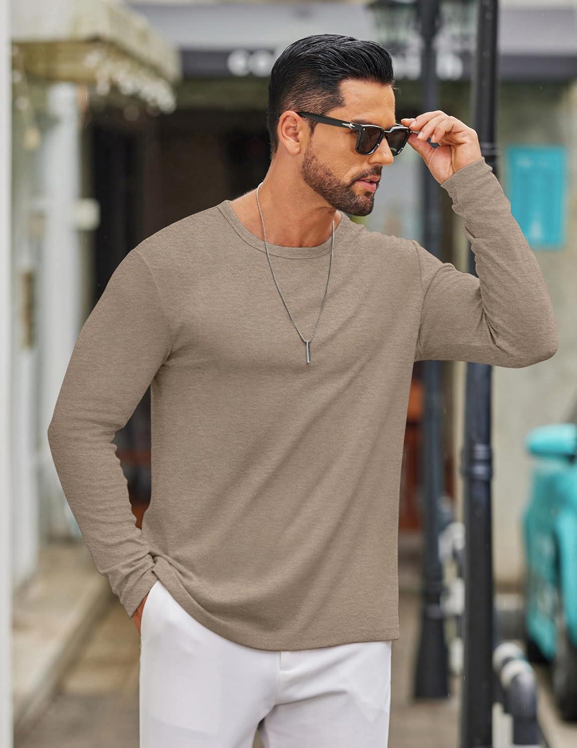 COOFANDY Mens Long Sleeve T Shirts Casual Crew Neck Tee Shirts Lightweight Soft Pullover Tops(Khaki)