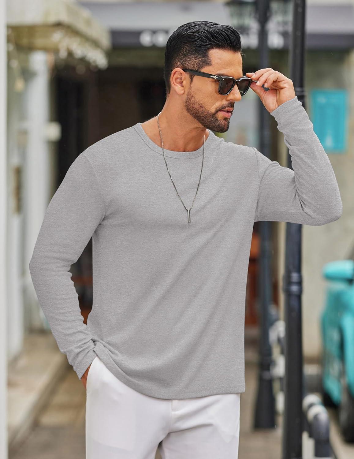 COOFANDY Men’s Long Sleeve Tee Shirts Crew Neck T Shirt Solid Casual Basic Tees Soft Stretch T-Shirts(Light Grey)