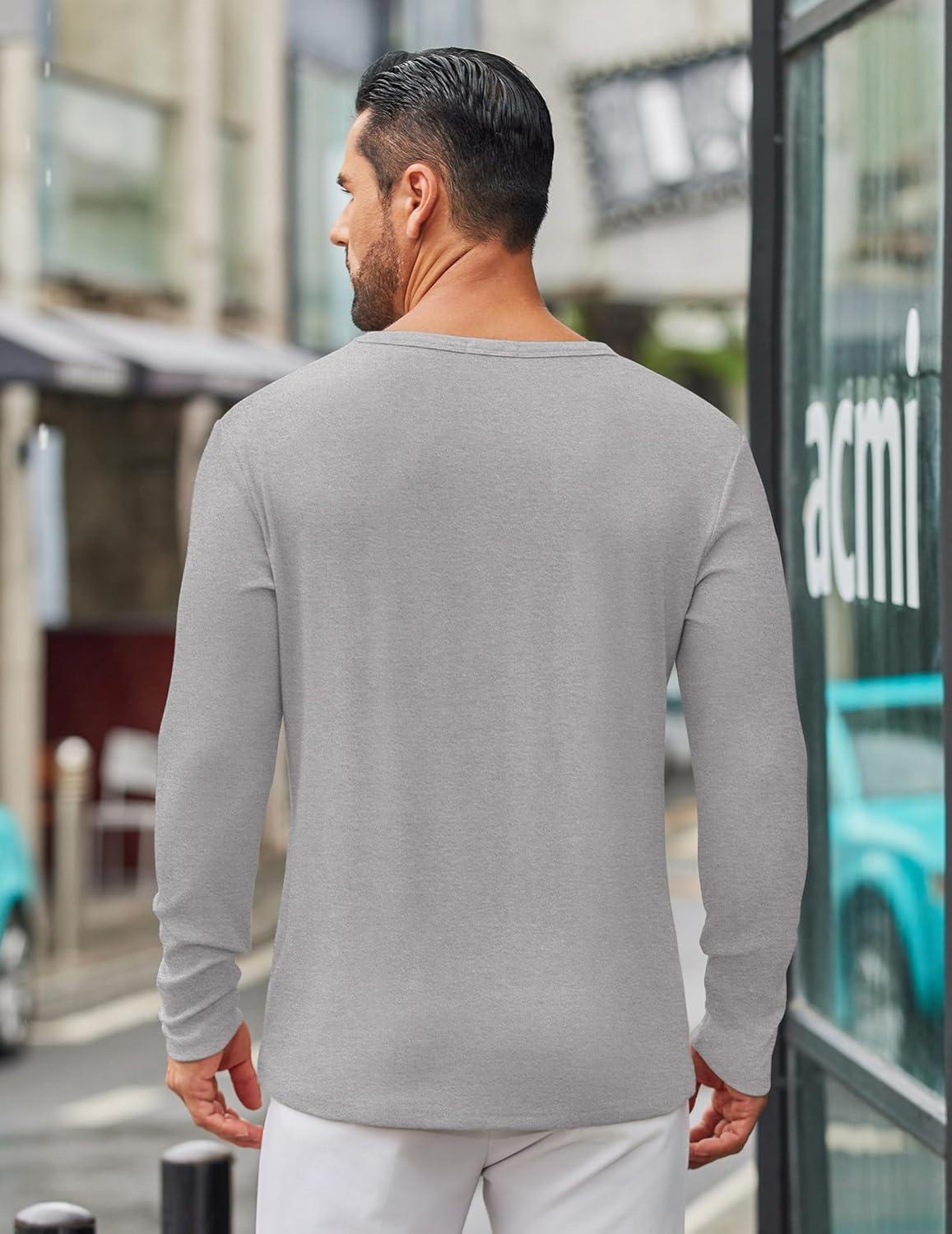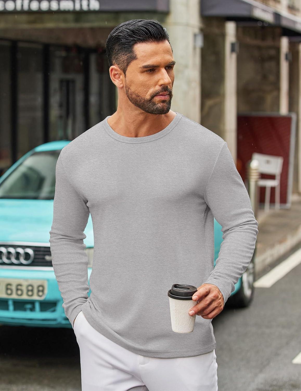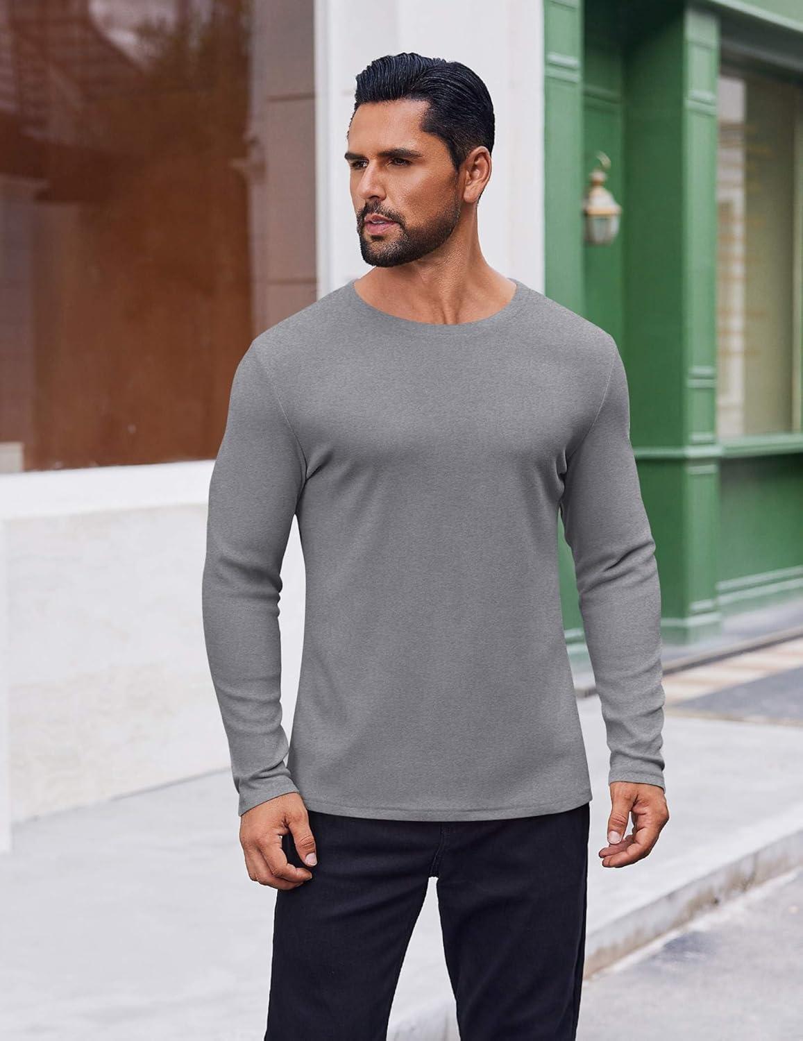 COOFANDY Thermal Shirts for Men Heavyweight Long Sleeve T Shirt Casual Basic Shirts Stretch Crew Neck Undershirts(Grey)