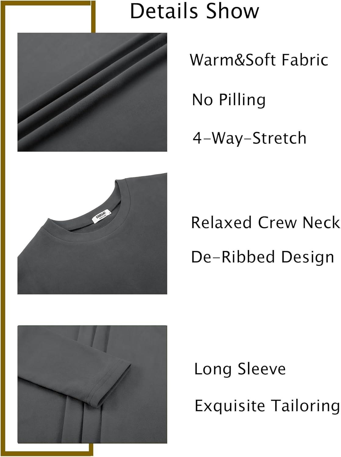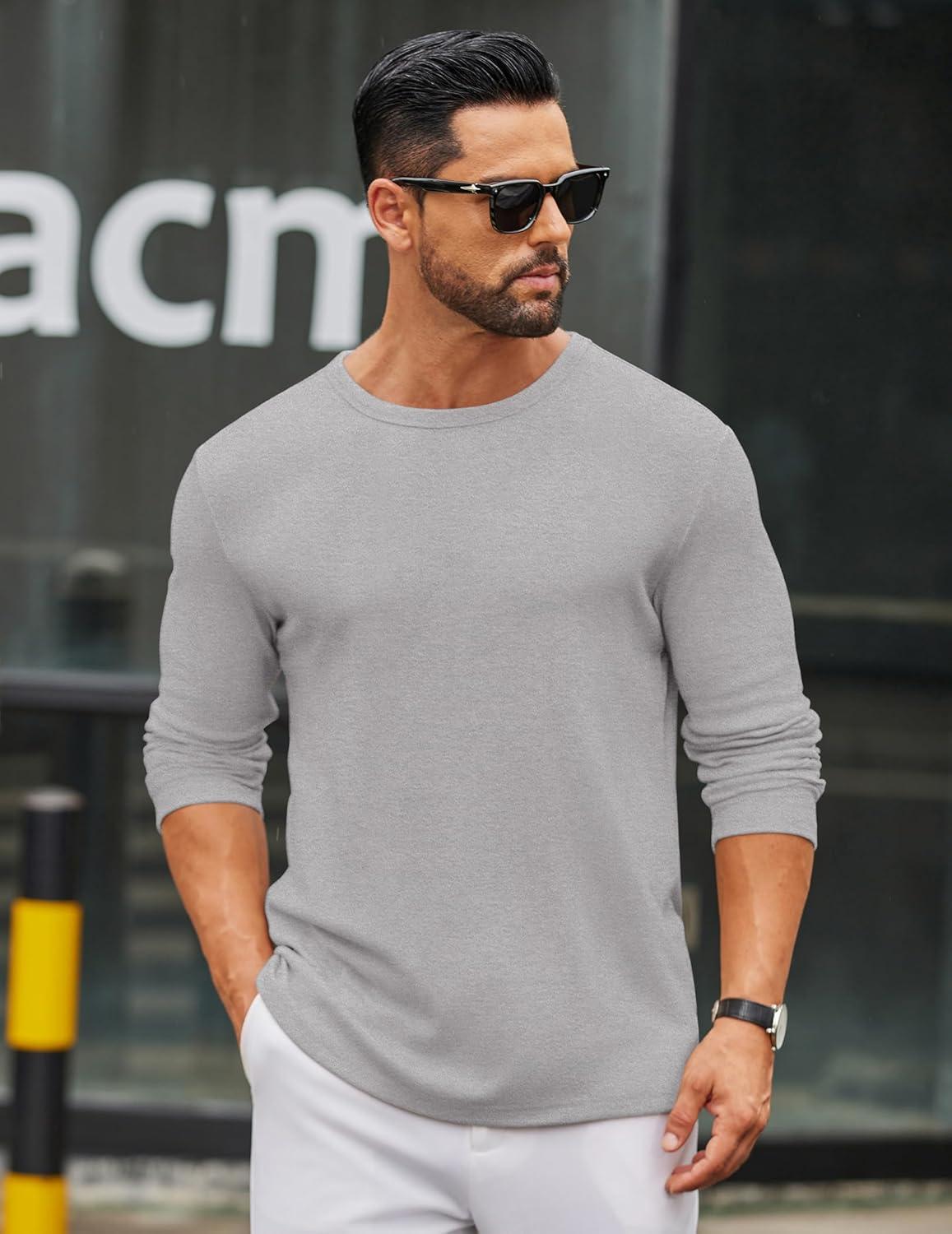 COOFANDY Thermal Shirts for Men Heavyweight Long Sleeve T Shirt Casual Basic Shirts Stretch Crew Neck Undershirts(Light Grey)