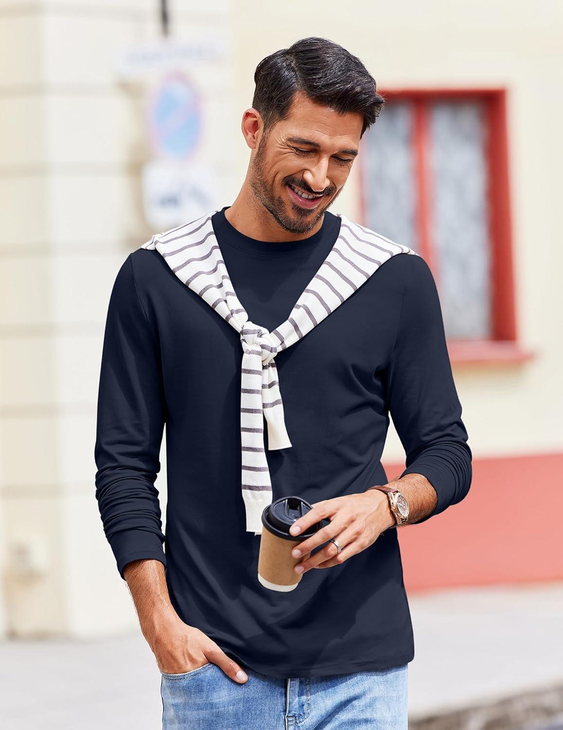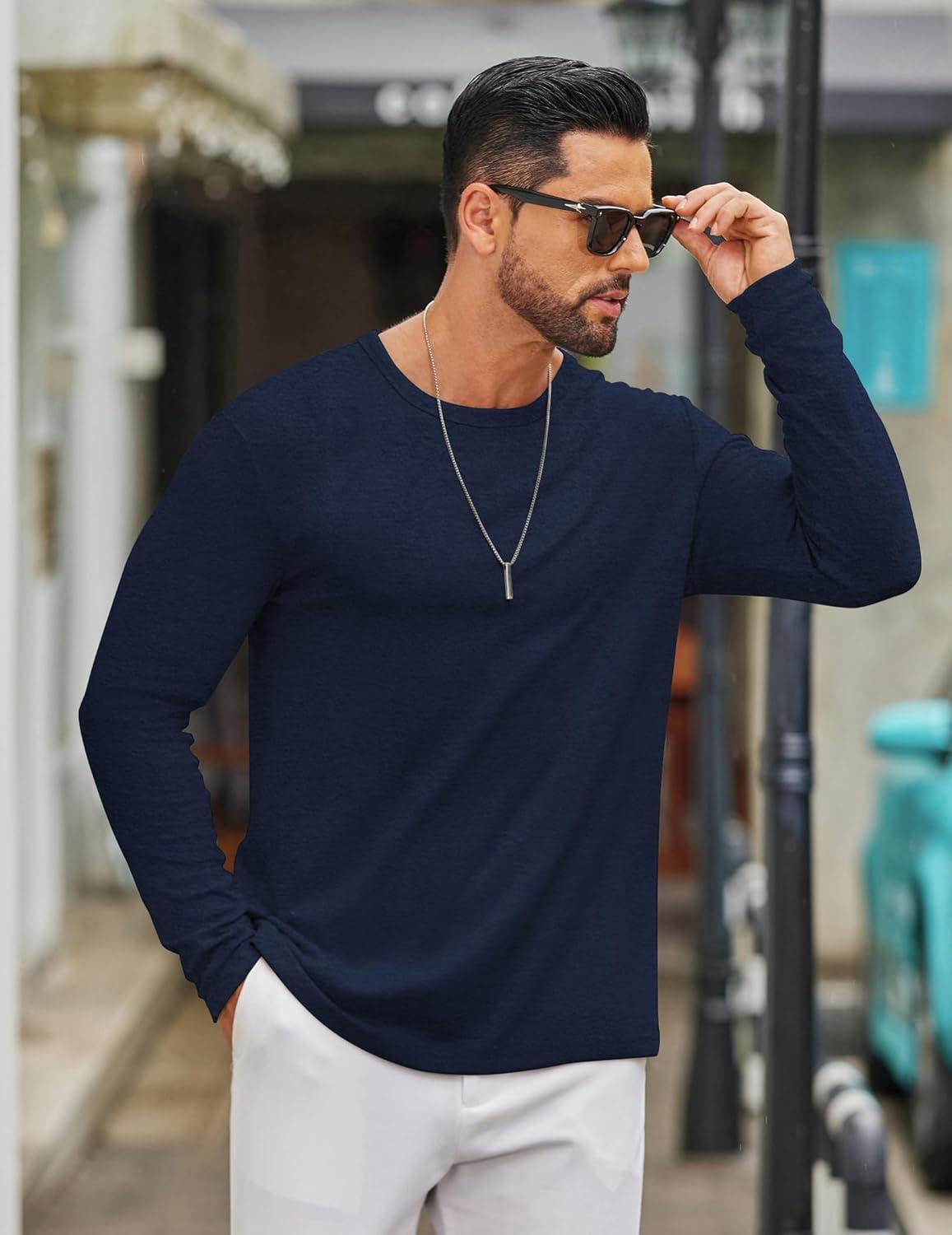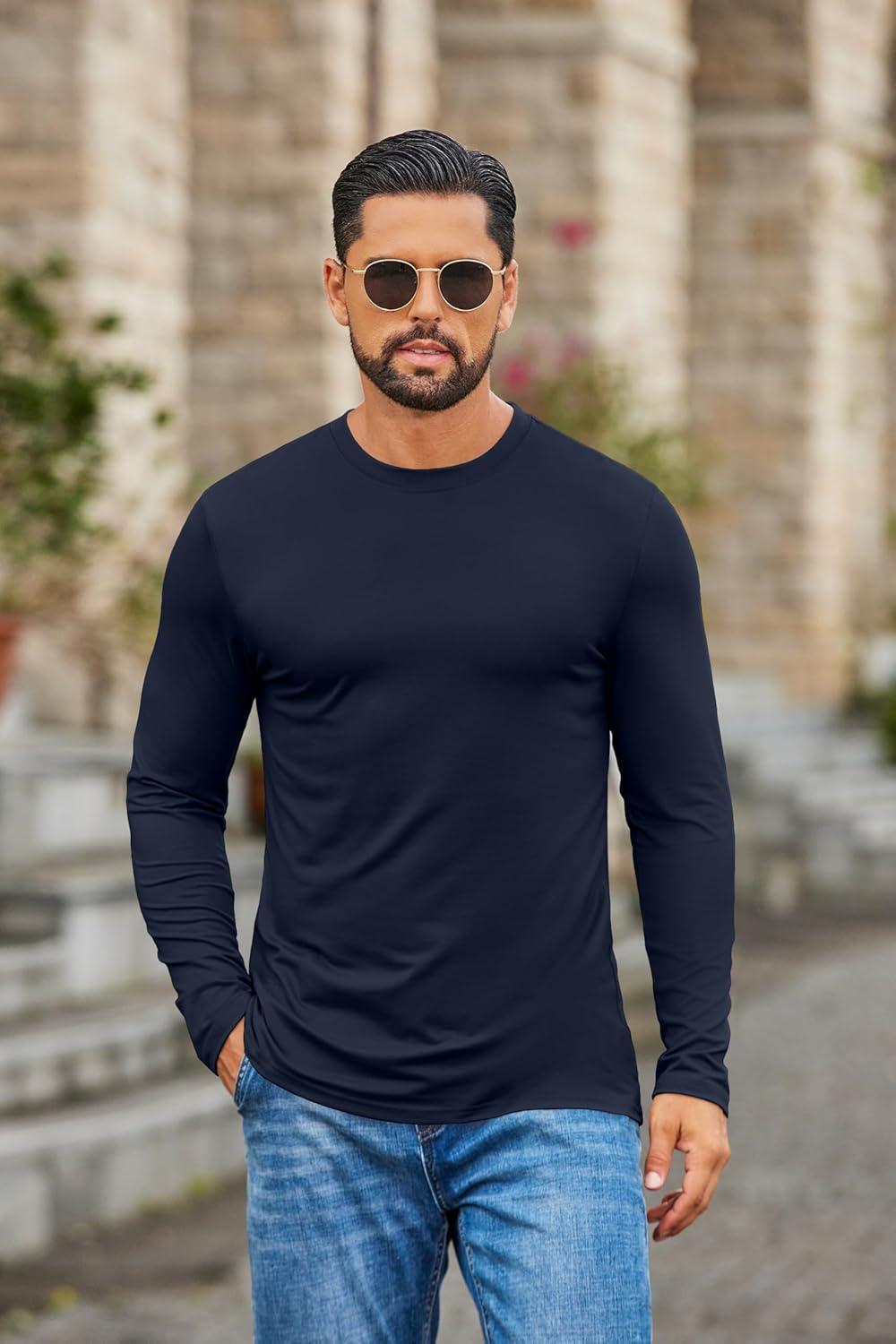 COOFANDY Men’s Long Sleeve Tee Shirts Crew Neck T-Shirt Casual Pullover Basic Tees Soft Stretch Tshirts(Navy)