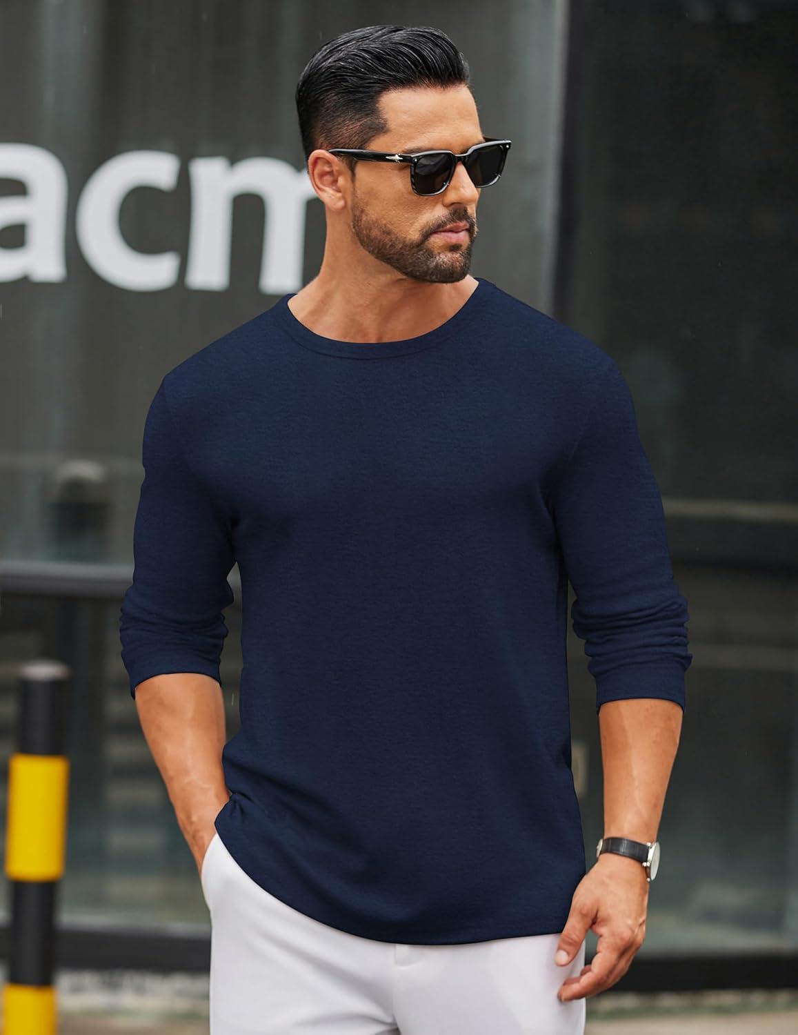 COOFANDY Mens Long Sleeve Tee Shirts Stretch Crew Neck Thermal Shirts Casual T Shirts for Men(Dark Blue)