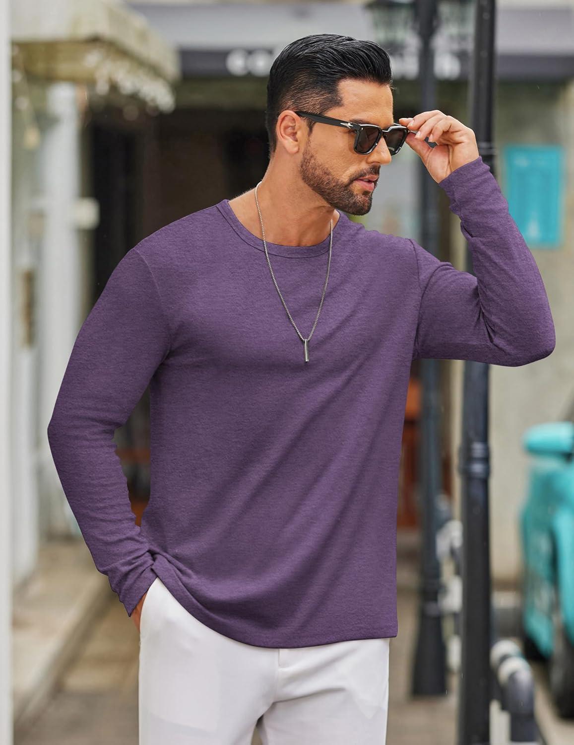 COOFANDY Men’s Long Sleeve Tee Shirts Crew Neck T Shirt Solid Casual Basic Tees Soft Stretch T-Shirts(Purple)