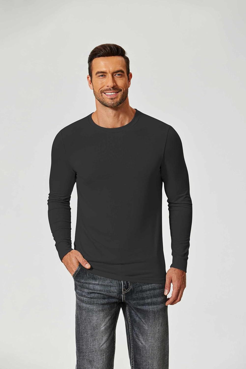 COOFANDY Mens Long Sleeve Tee Shirts Stretch Crew Neck Thermal Shirts Casual T Shirts for Men(Black)