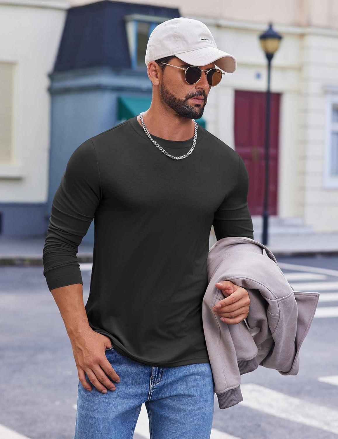 COOFANDY Men’s Long Sleeve Tee Shirts Crew Neck T Shirt Solid Casual Basic Tees Soft Stretch T-Shirts(Black)