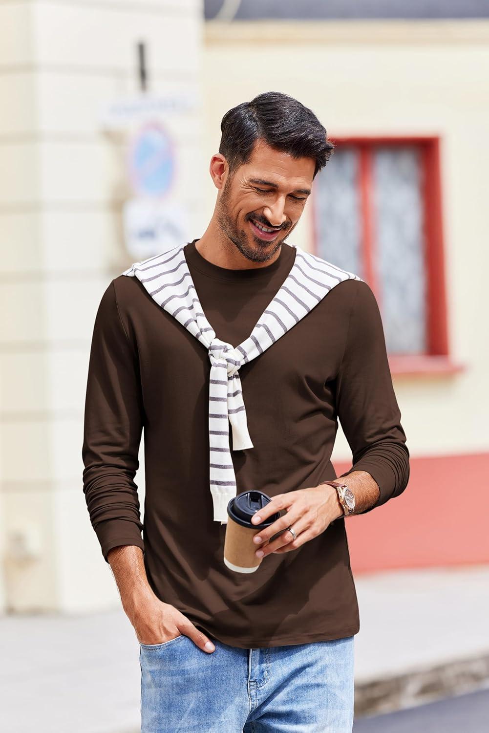 COOFANDY Mens Long Sleeve Tee Shirts Stretch Crew Neck Thermal Shirts Casual T Shirts for Men(Brown)