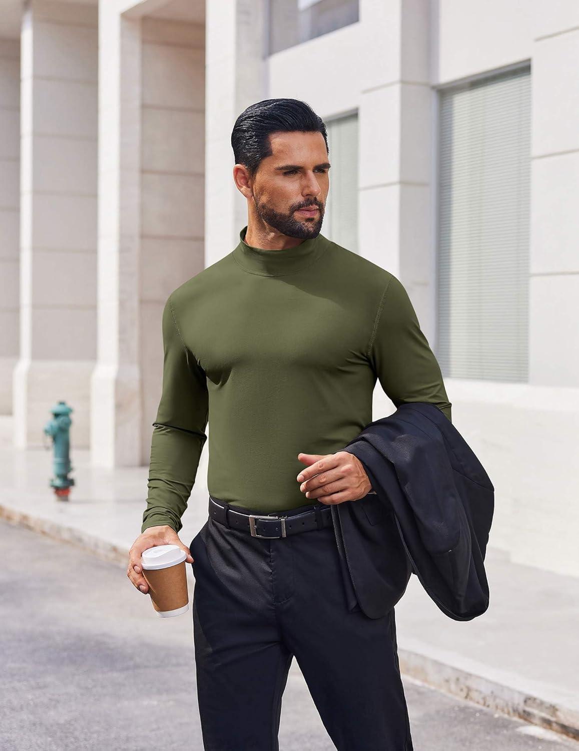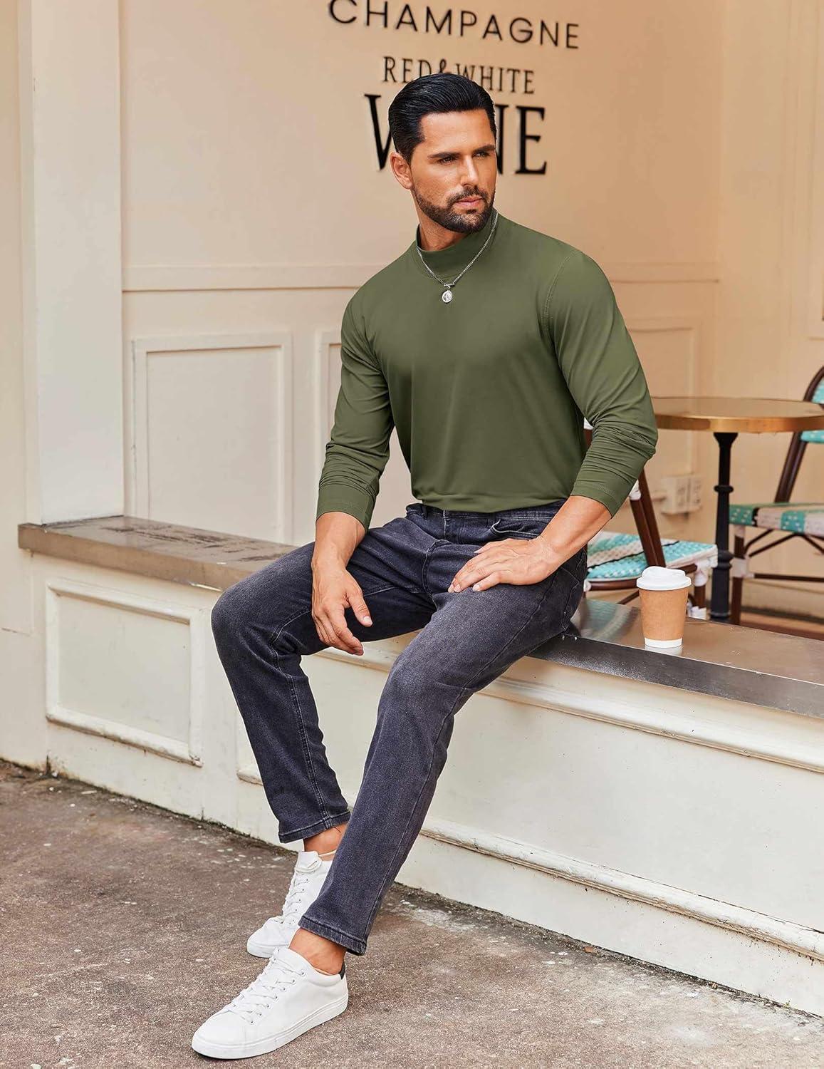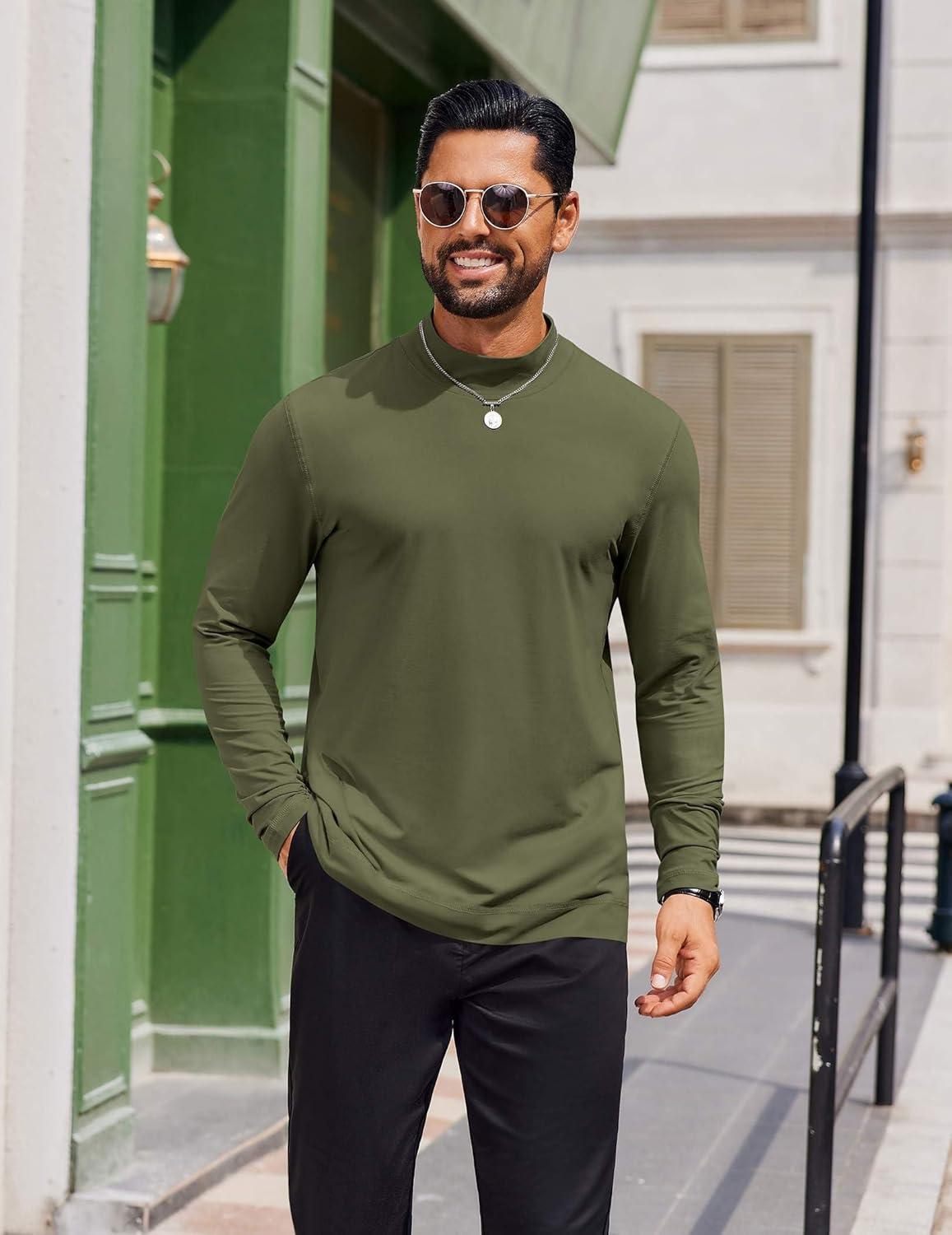 COOFANDY Mens Mock Turtleneck Long Sleeve Shirts Casual Basic T-Shirt Lightweight Mockneck Pullover Sweater for Men(Army Green)