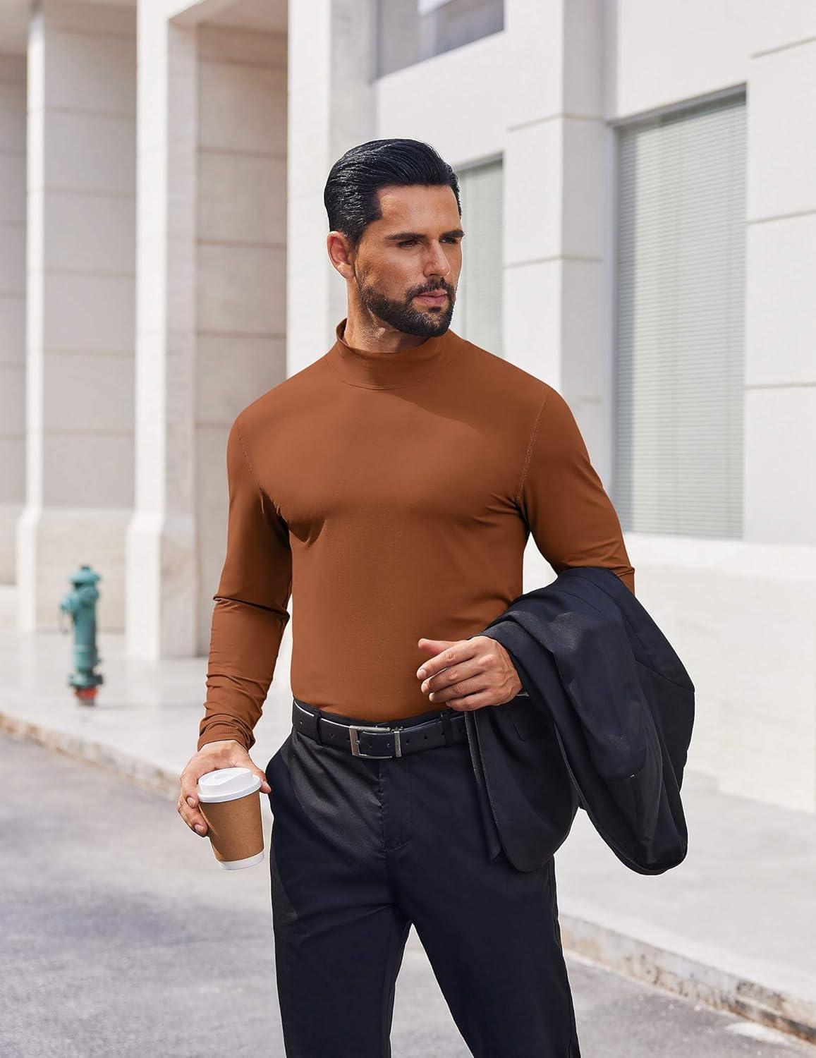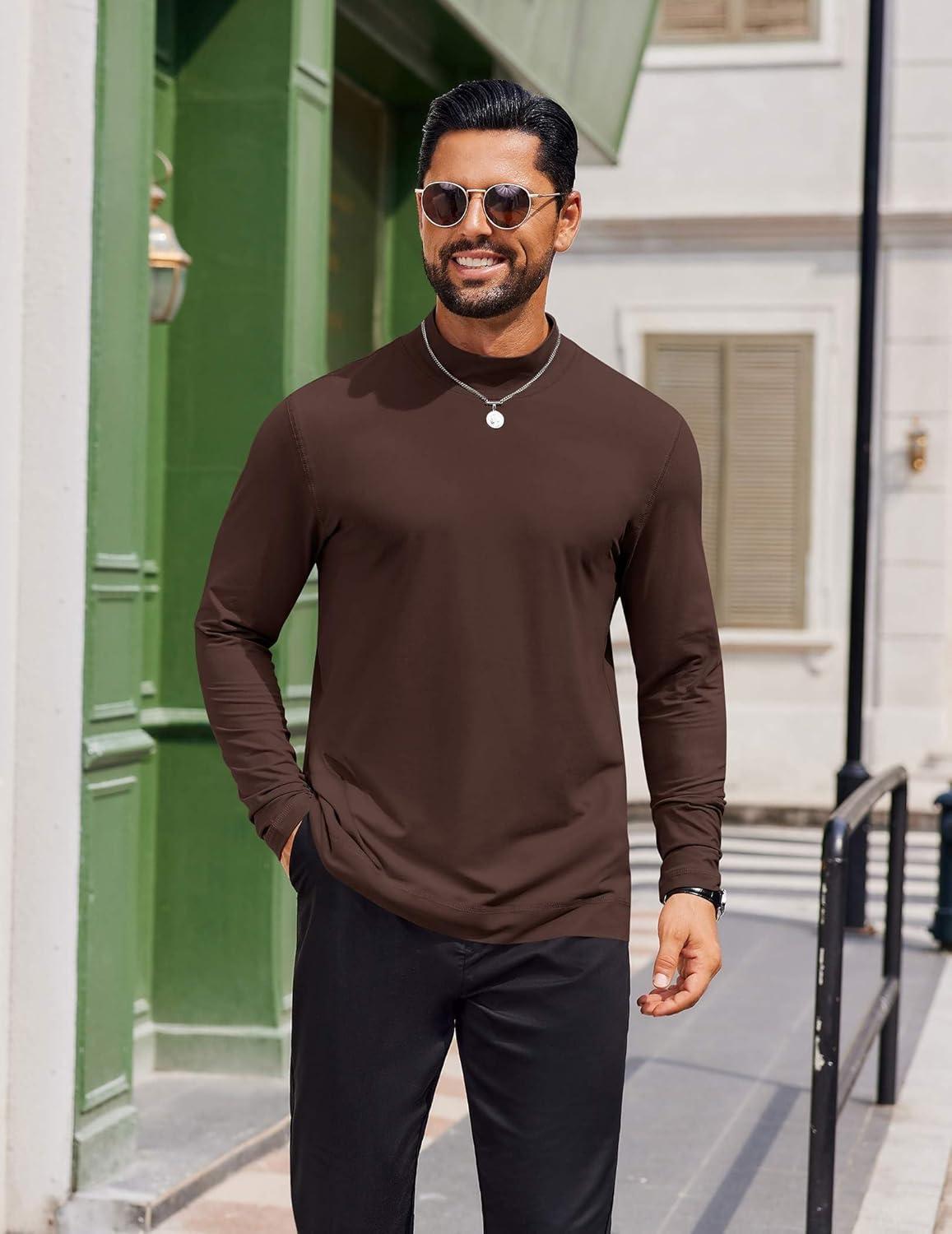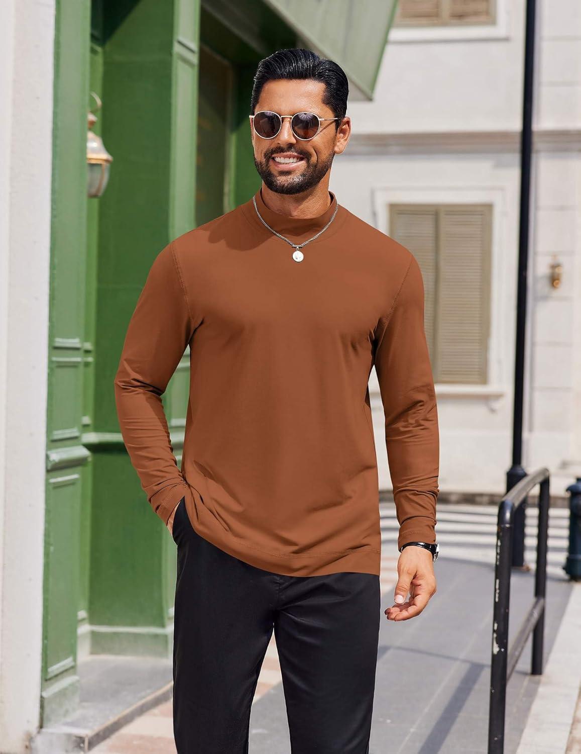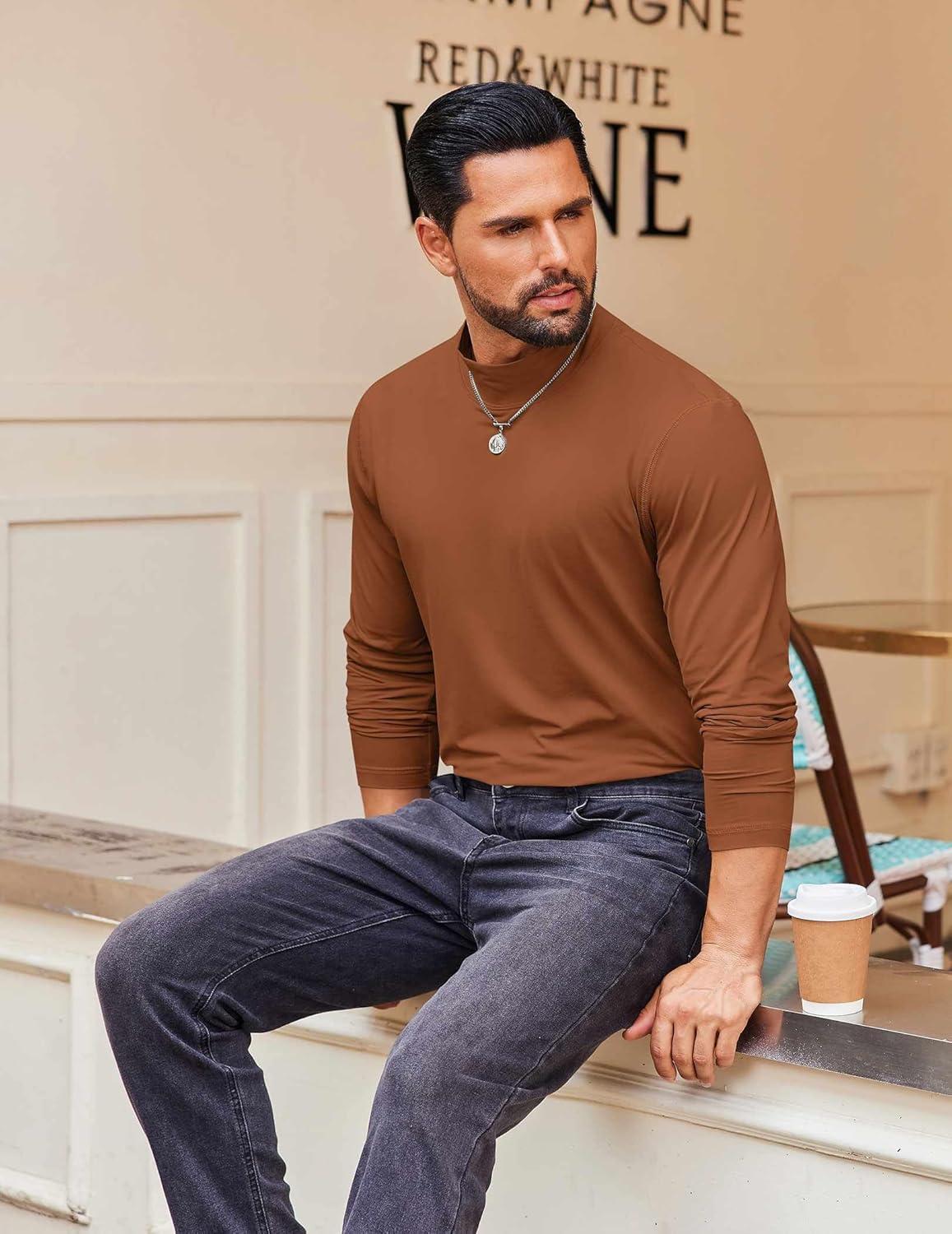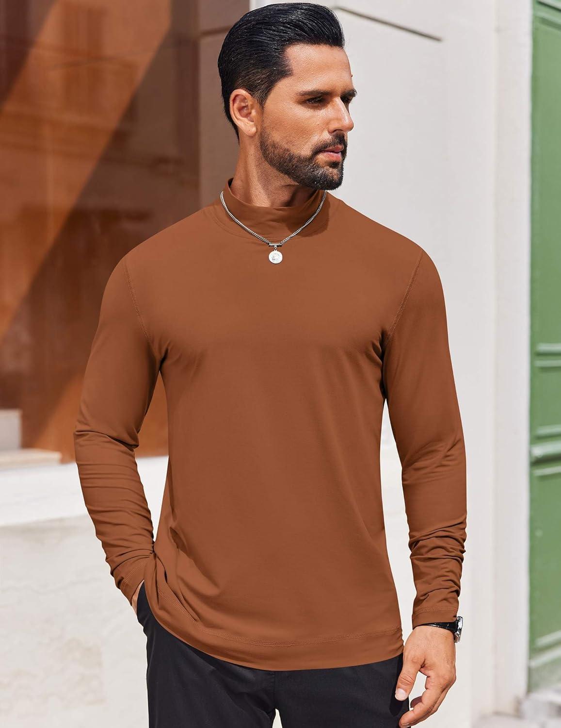COOFANDY Mens Mock Turtleneck Long Sleeve Shirts Casual Basic T-Shirt Lightweight Mockneck Pullover Sweater for Men(Brown)