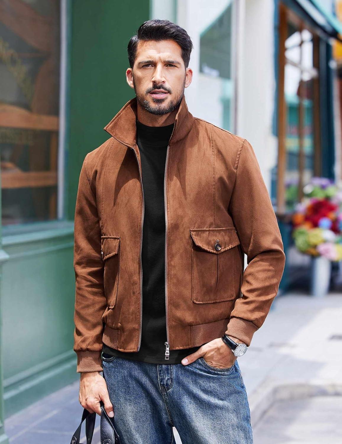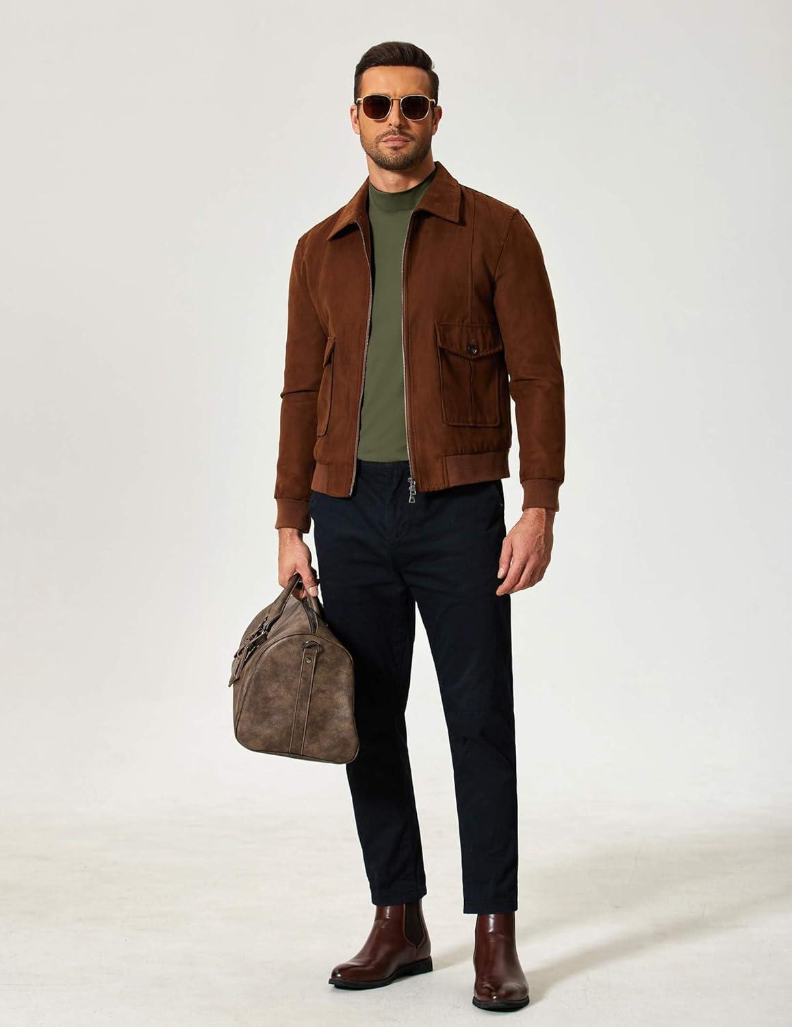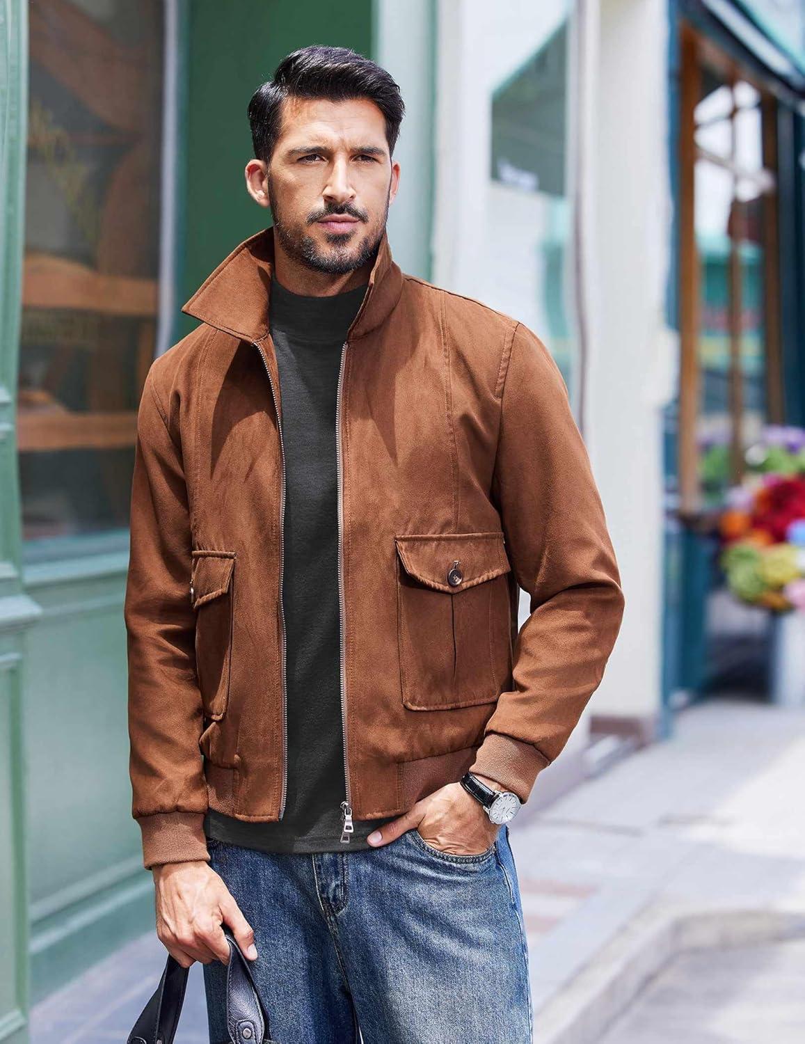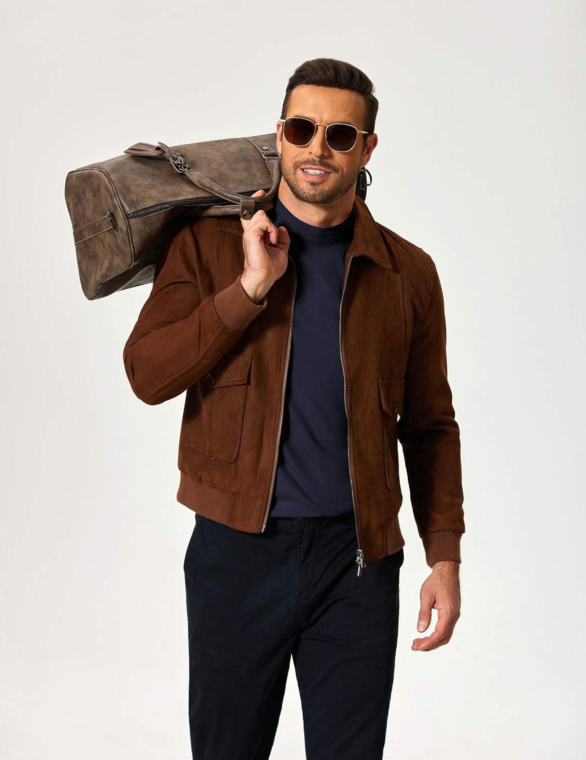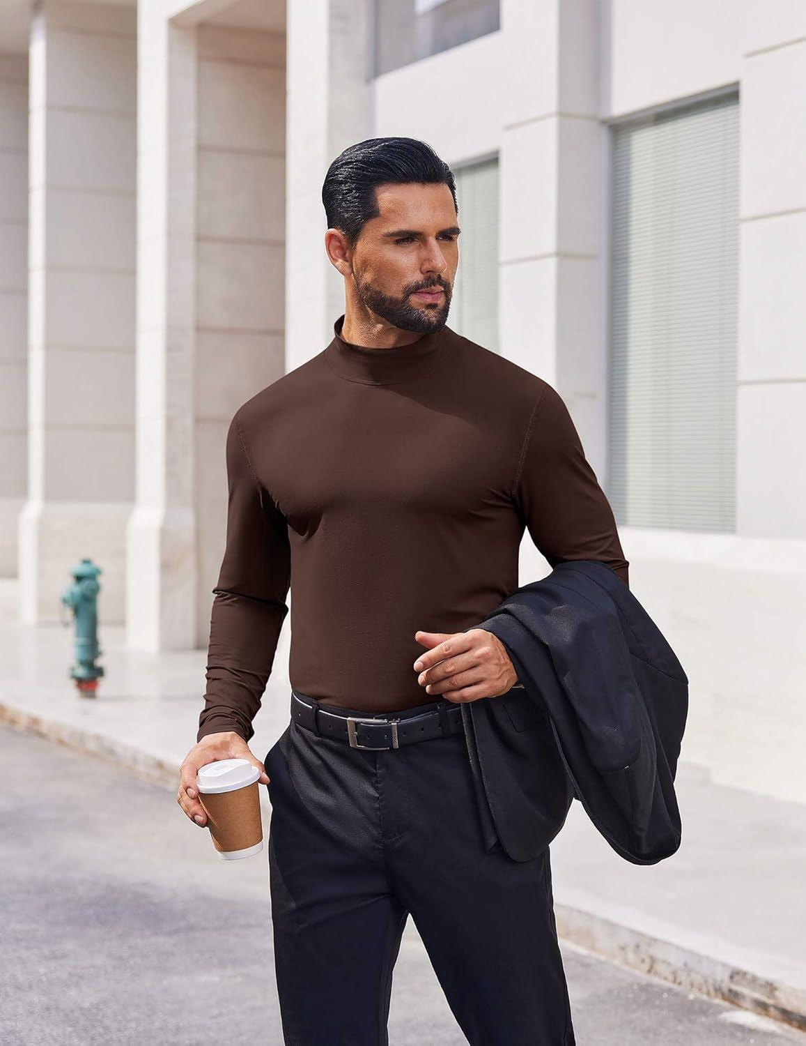 COOFANDY Mens Mock Turtleneck Long Sleeve Shirts Casual Basic T-Shirt Lightweight Mockneck Pullover Sweater for Men(Brown)