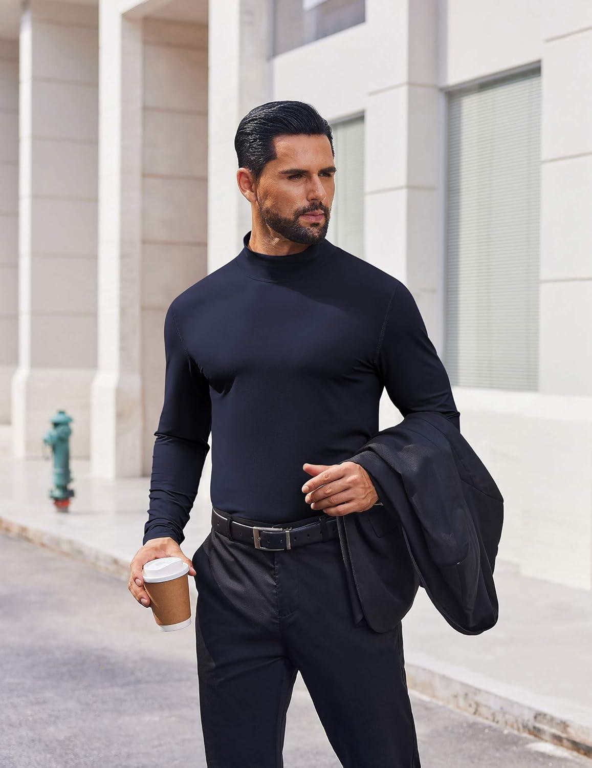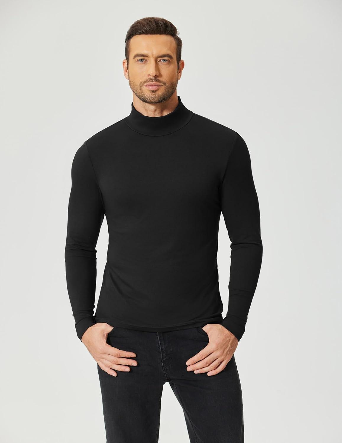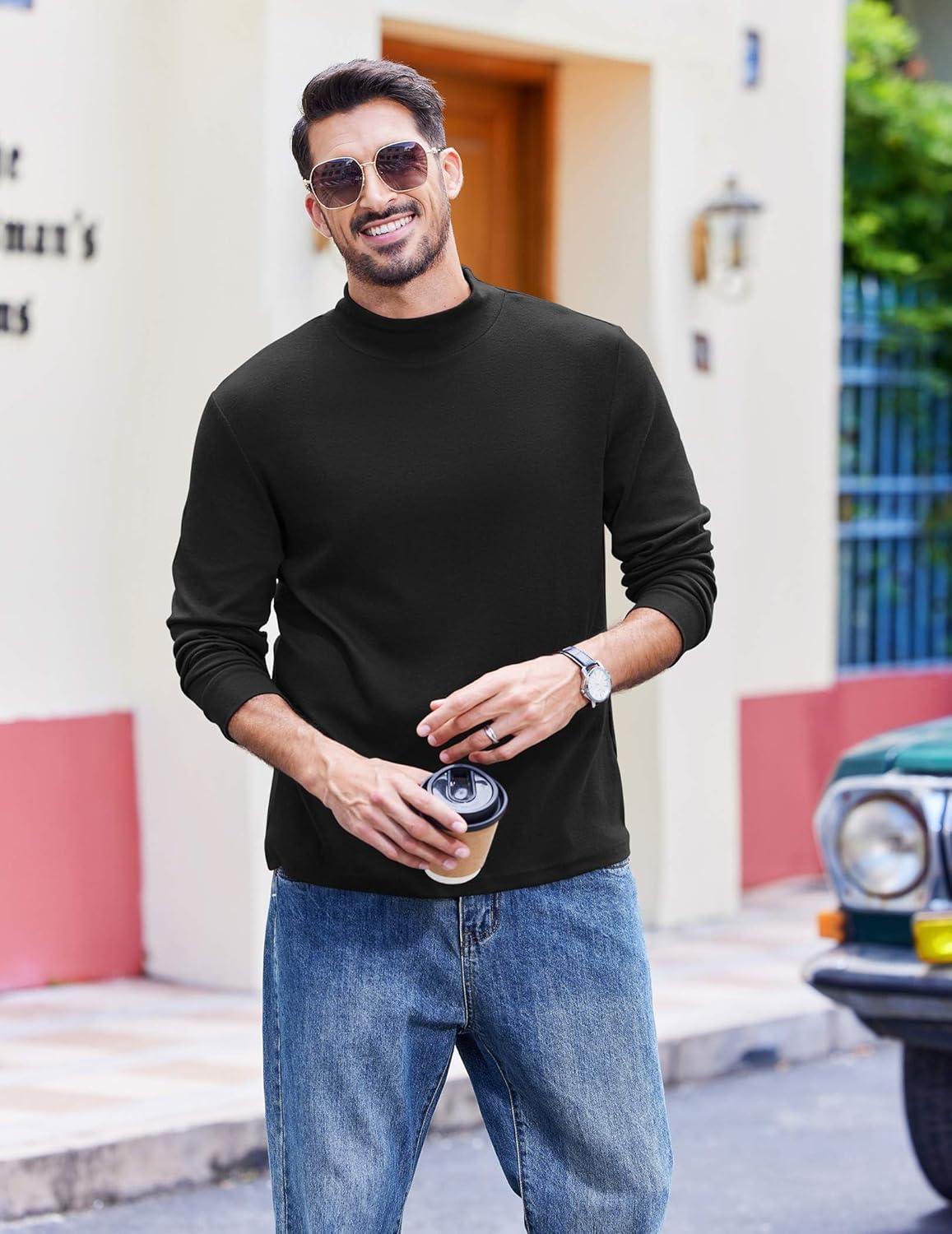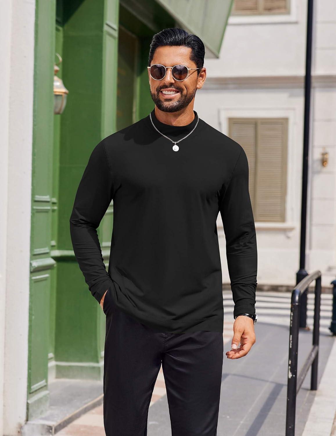 COOFANDY Mens Mock Turtleneck Long Sleeve Shirts Casual Basic T-Shirt Lightweight Mockneck Pullover Sweater for Men(Black)