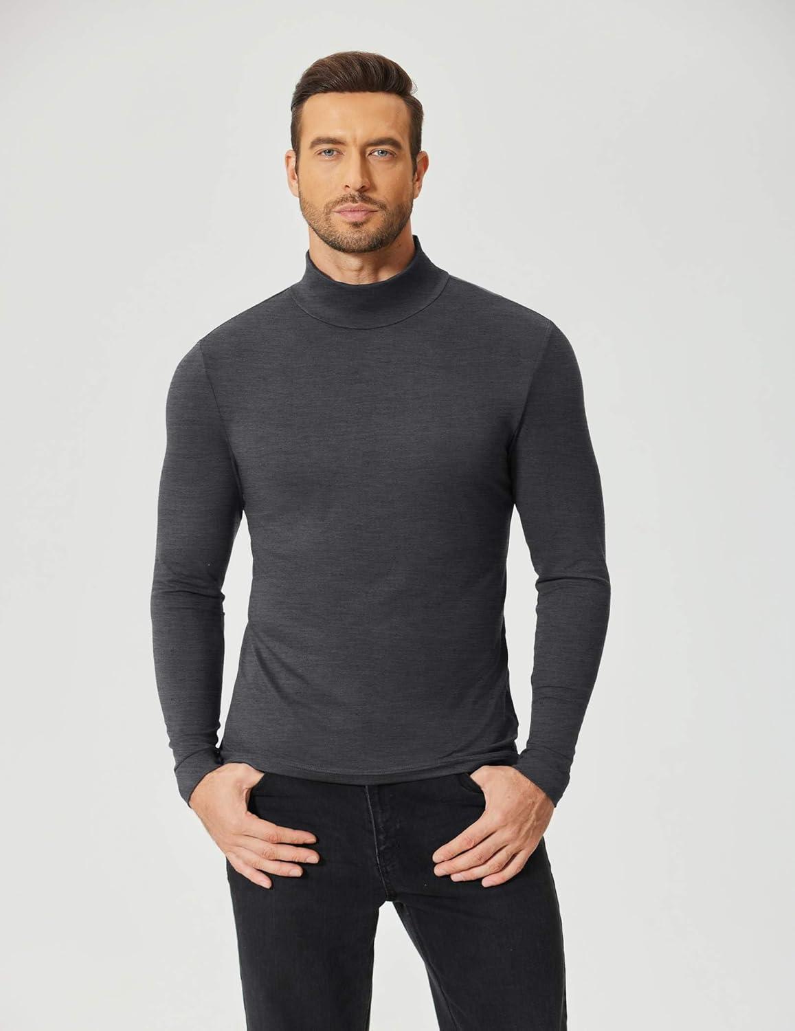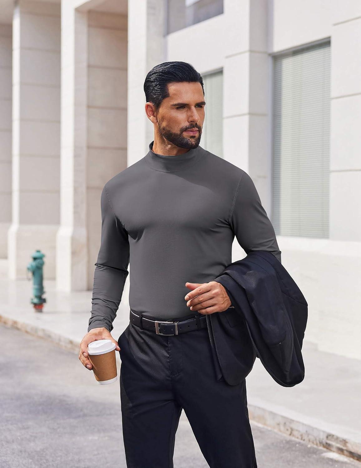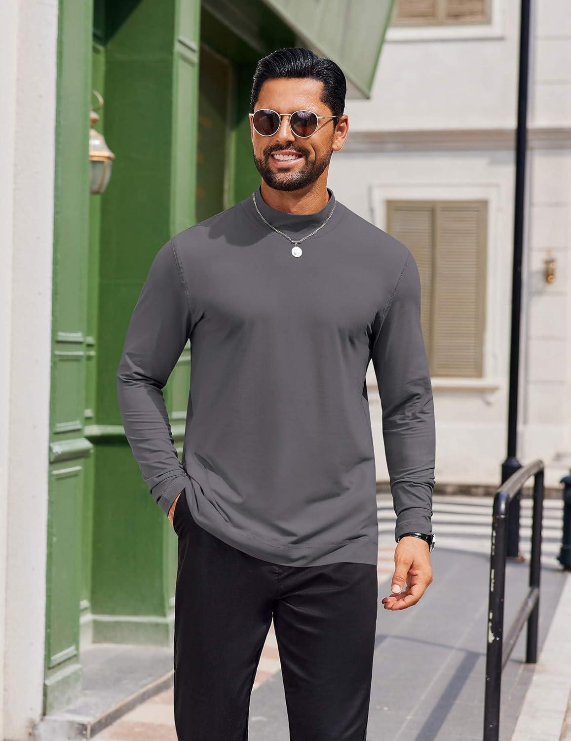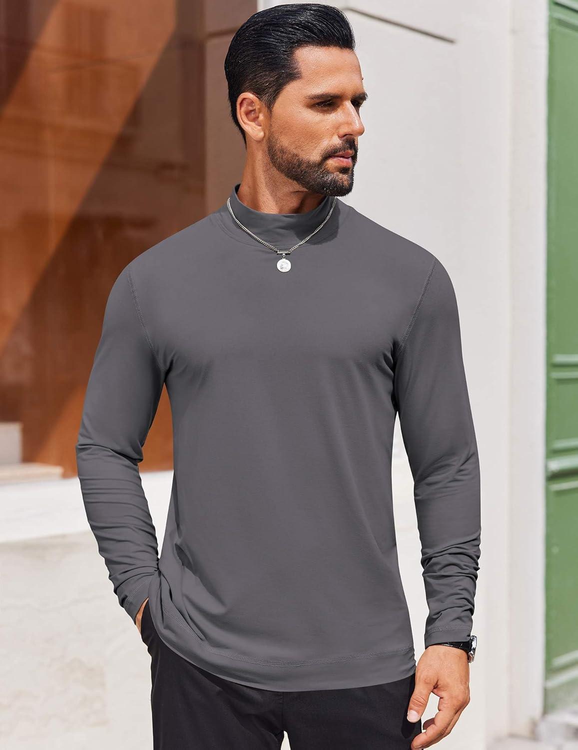 COOFANDY Mens Mock Turtleneck Long Sleeve Shirts Casual Basic T-Shirt Lightweight Mockneck Pullover Sweater for Men(Dark Grey)