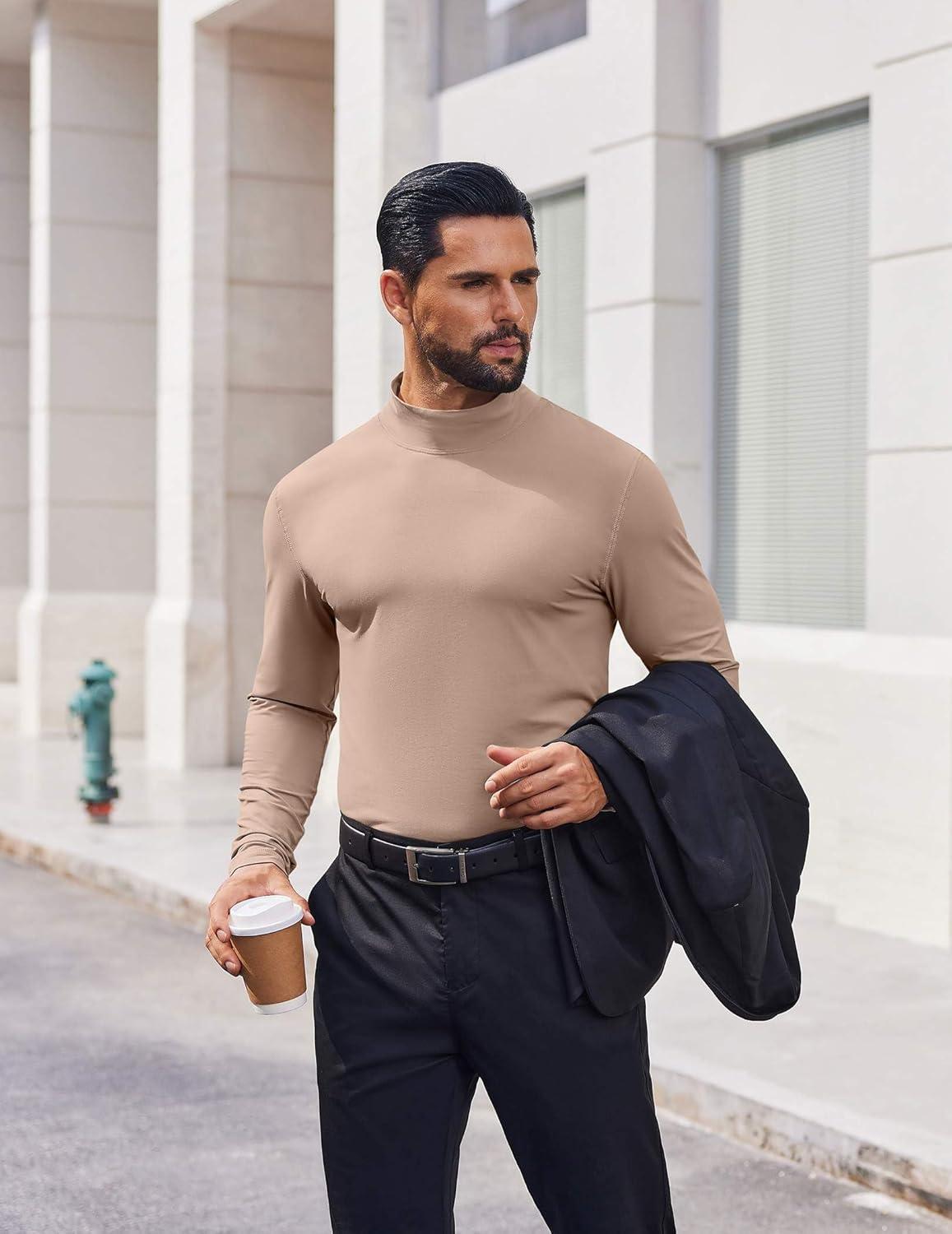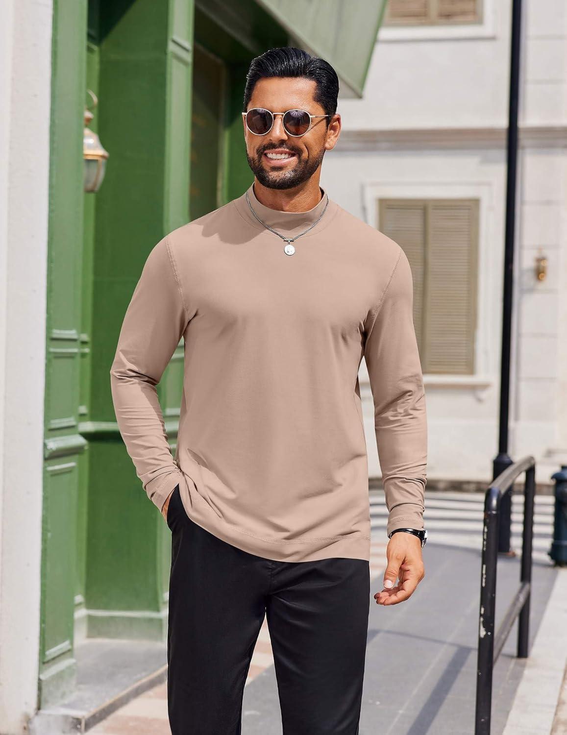 COOFANDY Mens Mock Turtleneck Long Sleeve Shirts Casual Basic T-Shirt Lightweight Mockneck Pullover Sweater for Men(Khaki)